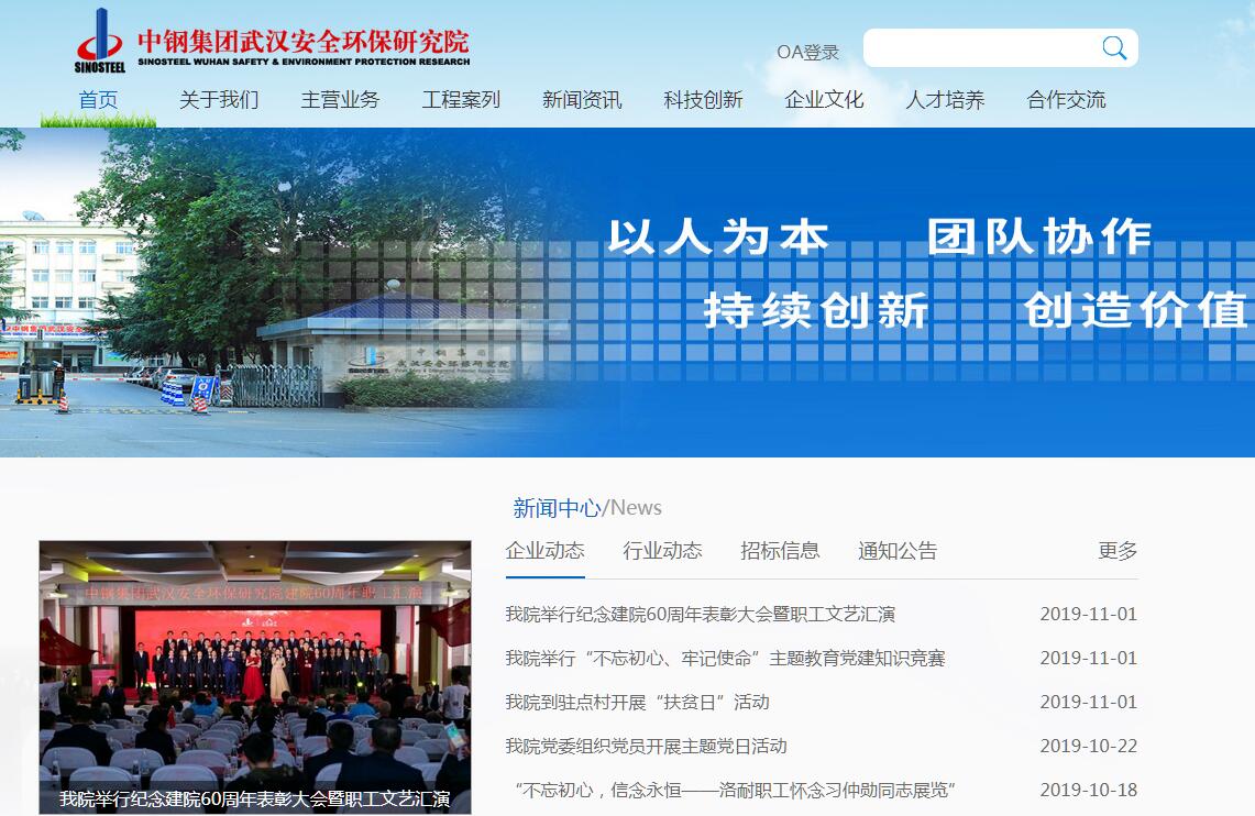 中鋼集團(tuán)武漢安全環(huán)保研究院(簡稱中鋼安環(huán)院)創(chuàng)建于1959年,原名冶金工業(yè)部安全環(huán)保研究院,是國內(nèi)最先從事職業(yè)安全健康和環(huán)境保護(hù)技術(shù)研發(fā)與應(yīng)用、規(guī)模最大、綜合實(shí)力最強(qiáng)的研究院。曾先后接受國家環(huán)境保護(hù)局和勞動(dòng)部的雙重領(lǐng)導(dǎo),分別命名為國家環(huán)保局武漢環(huán)境保護(hù)研究院、勞動(dòng)部武漢安全工程研究院。1999年正式轉(zhuǎn)制成為科技企業(yè),進(jìn)入中國中鋼集團(tuán)公司,命名為中鋼集團(tuán)武漢安全環(huán)保研究院。2008年11月,由武漢市政府主導(dǎo)的武漢循環(huán)經(jīng)濟(jì)研究院依托中鋼安環(huán)院成立。經(jīng)過50多年的建設(shè),中鋼安環(huán)院已發(fā)展成為集科研開發(fā)、工程設(shè)計(jì)與承包、科技產(chǎn)業(yè)、咨詢服務(wù)于一體,涵蓋安全、環(huán)保、循環(huán)經(jīng)濟(jì)三大領(lǐng)域的高科技企業(yè)。我院在職職工570余人,專業(yè)技術(shù)人員占75%以上。其中教授級高工25人,高級工程師76人,享受國家政府津貼專家5人。同時(shí),我院具有兩個(gè)碩士研究生的學(xué)位授予權(quán):安全工程學(xué)科、環(huán)境工程學(xué)科。建院以來形成的科研成果近600余項(xiàng)其中260余項(xiàng)分別獲得國家發(fā)明獎(jiǎng)、科技進(jìn)步獎(jiǎng)和部省級科技進(jìn)步獎(jiǎng);獲得專利授權(quán)50余項(xiàng),其中“無起爆藥雷 管”專利已轉(zhuǎn)讓世界著名爆破公司—瑞典諾貝爾公司,并在23個(gè)國家和地區(qū)獲得專利權(quán),1992年在瑞典建成年生產(chǎn)能力2500萬發(fā)無起爆藥雷 管的全自動(dòng)化生產(chǎn)線,被譽(yù)為“21世紀(jì)的高技術(shù)生產(chǎn)線”。我院面向國內(nèi)外從事職業(yè)安全、環(huán)境保護(hù)、循環(huán)經(jīng)濟(jì)科學(xué)技術(shù)的研究與開發(fā)和技術(shù)服務(wù)與咨詢。專業(yè)涉及:水污染治理及綜合利用技術(shù)開發(fā),垃圾滲濾液處理,固體廢棄物處理,污染修復(fù),城市污水管網(wǎng)工程設(shè)計(jì)與施工,大氣污染處理,噪聲控制,工業(yè)結(jié)構(gòu)安全,壓力容器檢測與評價(jià),礦山地壓監(jiān)測與防治,機(jī)電安全,爆破與防火防爆,粉塵防爆技術(shù)與裝備開發(fā),礦井通風(fēng)與防塵,安全系統(tǒng)工程,人機(jī)工程,個(gè)體防護(hù)與信息,職業(yè)安全與衛(wèi)生,循環(huán)經(jīng)濟(jì)。我院已與40多個(gè)包括美國、加拿大、瑞典、澳大利亞、日本、香港在內(nèi)的國家、地區(qū)以及一些世界性組織如:世界安全組織(WSO)、世界衛(wèi)生組織(WHO)、國際勞工組織(ILO)建立了業(yè)務(wù)合作關(guān)系,先后接待了600余名國外專家學(xué)者來院講學(xué)、商務(wù)談判、技術(shù)考察;選派了近400人次出訪瑞典、德國、澳大利亞、日本、荷蘭等國家與地區(qū)進(jìn)行學(xué)術(shù)交流、研修、培訓(xùn)等活動(dòng)。加入了亞太地區(qū)安全衛(wèi)生組織(APOSHO)、國際人類工效學(xué)會(huì)(IEA)等國際性組織。我院是海峽兩岸及香港、澳門地區(qū)職業(yè)安全健康學(xué)術(shù)研討會(huì)主辦單位之一??萍俭w制改革以來,我院集中技術(shù)優(yōu)勢,形成了安全、環(huán)保、爆破工程設(shè)計(jì)和工程承包能力,以工程設(shè)計(jì)、工程咨詢服務(wù)和工程承包以及產(chǎn)品供貨等多種方式全方位為社會(huì)和企業(yè)提供服務(wù),先后獲得國家重點(diǎn)新產(chǎn)品獎(jiǎng)10項(xiàng),獲得湖北省重點(diǎn)新產(chǎn)品獎(jiǎng)8項(xiàng),獲得國家環(huán)??偩汁h(huán)保最佳實(shí)用技術(shù)指令性或指導(dǎo)性推廣獎(jiǎng)20余項(xiàng)。承接了3000余項(xiàng)安全環(huán)保工程項(xiàng)目,涉及工程造價(jià)近100億元,創(chuàng)造了較大的經(jīng)濟(jì)效益和社會(huì)效益,年合同額達(dá)數(shù)億元。國家科委曾對全國5000家科研院所進(jìn)行綜合評估,我院作為唯一進(jìn)入全國300強(qiáng)的安全環(huán)保類科研院所,綜合實(shí)力列綜合科學(xué)研究與技術(shù)服務(wù)業(yè)第61名,被國家環(huán)境保護(hù)總局授予“環(huán)境保護(hù)先進(jìn)集體”,被湖北省科委授予“技術(shù)市場先進(jìn)集體”,多次被武漢市授予“文明單位”稱號(hào),歷年獲得“高新技術(shù)企業(yè)”稱號(hào)。