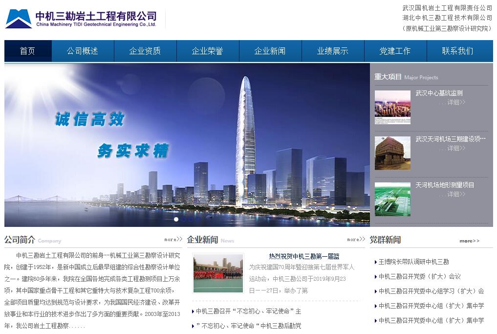 中機(jī)三勘巖土工程有限公司(原機(jī)械工業(yè)第三勘察設(shè)計研究院),創(chuàng)建于1952年,是新中國成立后最早組建的綜合性勘察設(shè)計單位之一,曾由機(jī)械工業(yè)部領(lǐng)導(dǎo),現(xiàn)隸屬于中國農(nóng)業(yè)機(jī)械化科學(xué)研究院(集團(tuán))、中國機(jī)械工業(yè)集團(tuán)有限公司。公司曾被建設(shè)部授予“全國工程勘察先進(jìn)單位”、被湖北省建設(shè)廳授予“勘察設(shè)計業(yè)百強(qiáng)單位”、被武漢市建委授予“巖土工程施工先進(jìn)企業(yè)”稱號。我公司現(xiàn)為中國巖土工程研究中心副主任單位、中國機(jī)械工業(yè)勘察設(shè)計協(xié)會常務(wù)理事單位、湖北省勘察設(shè)計協(xié)會甲級會員單位、武漢市勘察設(shè)計協(xié)會常務(wù)理事單位和湖北省測繪行業(yè)協(xié)會理事單位等,是國防機(jī)械工業(yè)科技情報網(wǎng)的創(chuàng)始成員和相關(guān)技術(shù)交流文獻(xiàn)與期刊的輪值主編單位之一。公司持有建設(shè)部核發(fā)的工程勘察綜合類甲級證書,國家測繪局核發(fā)的甲級測繪證書,中國機(jī)械工業(yè)聯(lián)合會核發(fā)的乙級工程監(jiān)理證書等。依托公司在勘察及巖土工程領(lǐng)域的技術(shù)優(yōu)勢,1996年成立了中機(jī)三勘巖土工程有限公司的全資子公司“武漢國機(jī)巖土工程有限責(zé)任公司”,并于當(dāng)年持有建設(shè)部核發(fā)的地基與基礎(chǔ)施工壹級企業(yè)資質(zhì)證書。中機(jī)三勘巖土工程有限公司全資子公司“湖北中機(jī)三勘工程技術(shù)有限公司”具有地基基礎(chǔ)檢測等相關(guān)項(xiàng)目的資質(zhì)證書。我公司通過質(zhì)量、職業(yè)健康安全、環(huán)境三合一管理體系的認(rèn)證和計量認(rèn)證。公司設(shè)有巖土工程勘察,巖土工程施工、深基坑支護(hù)設(shè)計施工、工程測量與大地測繪,建筑工程全壽命監(jiān)控與監(jiān)測,水文地質(zhì)勘察,應(yīng)用地球物理勘探,巖土(水)試驗(yàn),鑿井與降水設(shè)計與施工,工程咨詢,工程監(jiān)理,地質(zhì)鉆探及原位測試設(shè)備修造與技術(shù)研發(fā)等生產(chǎn)與研究部門?,F(xiàn)有高級工程師以上職稱40人,各類專業(yè)技術(shù)及注冊人員占全公司總?cè)藬?shù)的90%,享受政府特殊津貼的專家8人,被認(rèn)定為有突出貢獻(xiàn)的中青年專家5人;我國工程勘察界最高學(xué)術(shù)與榮譽(yù)稱號——勘察大師的獲得者中,有7人曾先后在我公司工作過或在我公司工作期間獲得此項(xiàng)殊榮。公司歷來重視人才培養(yǎng)和科技創(chuàng)新。近年來,每年均有計劃地從各高等院校擇優(yōu)錄用相應(yīng)專業(yè)的學(xué)士、碩士與博士,充實(shí)到各專業(yè)生產(chǎn)及技術(shù)研發(fā)部門,并陸續(xù)引進(jìn)了一些具有更高知識結(jié)構(gòu)層次與實(shí)踐經(jīng)驗(yàn)的工程技術(shù)及經(jīng)濟(jì)管理人才,擔(dān)任重要專業(yè)、部門和新興領(lǐng)域的帶頭人,從而進(jìn)一步提高了我公司的整體技術(shù)、管理水平與綜合競爭實(shí)力。公司創(chuàng)建60多年來,在全國完成各類工程勘測項(xiàng)目上萬余項(xiàng),其中國家重點(diǎn)骨干工程和其它重特大與技術(shù)復(fù)雜工程800余項(xiàng)、完成地基基礎(chǔ)施工、工程檢測等項(xiàng)目3000余項(xiàng),全部項(xiàng)目質(zhì)量均達(dá)到規(guī)范與設(shè)計要求,為我國國民經(jīng)濟(jì)建設(shè)、改革開放事業(yè)和本行業(yè)的技術(shù)進(jìn)步作出了多方面的重要貢獻(xiàn)。公司承擔(dān)并完成的第二汽車制造廠及武漢神龍汽車公司、南京汽車制造廠、上海閔行和哈爾濱動力設(shè)備制造基地、齊齊哈爾重型機(jī)床廠、南京煉油廠五萬噸級油罐區(qū)、上海機(jī)電大廈、上海彭浦新村、三江航天基地及其內(nèi)遷、上?;萜针娮赢a(chǎn)業(yè)園、中聯(lián)(博世)汽車電子工業(yè)公司、安徽安慶碧桂園、湖北隨州碧桂園、武漢體育中心、武漢輕軌地鐵勘察、天河機(jī)場勘察、東風(fēng)雷諾15萬輛一期建設(shè)項(xiàng)目地基處理工程以及伊拉克華事德(WASIT)4×330MW亞臨界燃油(氣)機(jī)組工程樁一期、二期項(xiàng)目、越南海防II期2×330MW火電項(xiàng)目工程3#標(biāo)段樁基工程、印尼巴厘島一期3×142MW燃煤電廠項(xiàng)目PC/PHC樁基施工工程項(xiàng)目、伊拉克蘇維拉污水處理廠及泵站管網(wǎng)工程巖土工程勘察項(xiàng)目、伊拉克希拉市污水處理廠巖土工程勘察項(xiàng)目、赤道幾內(nèi)亞馬拉博大學(xué)城巖土工程勘察項(xiàng)目、印尼宏發(fā)韋立氧化鋁公司印尼熱電廠樁基項(xiàng)目、新疆中泰化學(xué)阜康能源有限公司2x150MW自備熱電聯(lián)產(chǎn)項(xiàng)目鉆孔灌注樁工程以及健鼎(湖北)電子有限公司主廠房及生活設(shè)施整體樁基項(xiàng)目等工業(yè)與民用建筑項(xiàng)目的選址、實(shí)施和竣工階段的工程測繪、地質(zhì)勘察、工程監(jiān)測與竣工測量的工程活動或技術(shù)研究,相繼獲得了省、部級以上的優(yōu)秀勘察與測量成果獎或科技進(jìn)步獎。近年來,公司巖土工程勘察、設(shè)計、測量業(yè)務(wù)的總產(chǎn)值和市場占有率,一直居武漢市前列。現(xiàn)今武漢市最高的建筑物——民生銀行大廈(地上68層)、在建的武漢中心(地上88