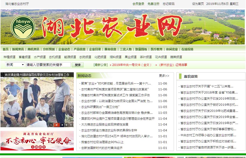 | 網(wǎng)站簡介: 湖北農(nóng)業(yè)網(wǎng)自創(chuàng)辦以來緊緊圍繞省農(nóng)業(yè)農(nóng)村廳工作中心,是湖北省農(nóng)業(yè)領(lǐng)域重點新聞權(quán)威網(wǎng)站,也是全省農(nóng)業(yè)系統(tǒng)部門對外宣傳的重要窗口,集科研成果、農(nóng)業(yè)品牌展示,農(nóng)產(chǎn)品供銷、農(nóng)業(yè)科技知識推廣的權(quán)威性農(nóng)業(yè)門戶網(wǎng)站和農(nóng)產(chǎn)品電子商務(wù)平臺。 |