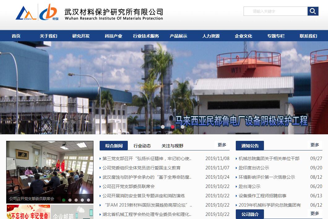 武漢材料保護研究所有限公司始建于1953年,原為機械工業(yè)部直屬大型骨干研究所,隨著我國科技體制改革的發(fā)展,轉(zhuǎn)制為科技型企業(yè),2017年11月,進行公司制改制為武漢材料保護研究所有限公司。現(xiàn)隸屬于國務(wù)院國有資產(chǎn)管理委員會管理的機械科學(xué)研究總院集團有限公司。經(jīng)過60余年的發(fā)展,武漢材料保護研究所有限公司已成為表面處理工藝、材料、設(shè)備的研發(fā)與生產(chǎn),表面覆蓋層性能測試、產(chǎn)品質(zhì)量檢測,表面保護工程設(shè)計與施工的高新技術(shù)企業(yè)。武漢材料保護研究所有限公司占地130畝,其中科技成果產(chǎn)業(yè)化基地80畝。擁有一批表面工程領(lǐng)域的精英人才,其中研究員40余人,高級工程師80余人,享受各級政府津貼專家15人。具有博士學(xué)位與碩士學(xué)位授予權(quán)。武漢材料保護研究所有限公司設(shè)有電沉積、化學(xué)沉積、等離子體表面技術(shù)、涂料涂裝、防銹封裝、表面化學(xué)轉(zhuǎn)化、化學(xué)熱處理、熱噴涂(焊)、激光表面改性、緩蝕技術(shù)、摩擦磨損、環(huán)境腐蝕及表面保護工程等專業(yè),從事表面工程領(lǐng)域的共性技術(shù)研究、產(chǎn)品開發(fā)與生產(chǎn)、性能與質(zhì)量檢測及防腐蝕工程設(shè)計與施工。先后承擔(dān)一大批國家、省、市重大科研項目,其中包括科技部“973”、“863”計劃及國防軍工科研項目等。建所以來,已取得科技成果600多項,大部分成果達到國際或國內(nèi)先進水平,得到市場推廣應(yīng)用,并獲得各級政府獎勵和國家專利。武漢材料保護研究所有限公司成立以來,一直是表面工程行業(yè)的骨干單位,目前掛靠(駐所)在本所的創(chuàng)新平臺和行業(yè)組織有:特種表面保護材料及應(yīng)用技術(shù)國家重點實驗室、工業(yè)產(chǎn)品(特種表面保護材料)質(zhì)量控制和技術(shù)評價實驗室、中國表面工程協(xié)會、國家電鍍技術(shù)生產(chǎn)力促進中心、機械工業(yè)表面工程技術(shù)研究中心、湖北省表面工程技術(shù)研究中心、機械工業(yè)表面覆蓋層產(chǎn)品質(zhì)量監(jiān)督檢測中心、中國機械工程學(xué)會表面工程分會、中國機械工程學(xué)會摩擦學(xué)分會、中國腐蝕與防護學(xué)會涂料涂裝及表面保護技術(shù)委員會、中國表面工程協(xié)會轉(zhuǎn)化膜專業(yè)委員會、全國金屬與非金屬覆蓋層標(biāo)準(zhǔn)化技術(shù)委員會及湖北省腐蝕與防護學(xué)會等。武漢材料保護研究所有限公司具有規(guī)范、高效的管理與運行機制,通過ISO9001質(zhì)量管理體系認證。