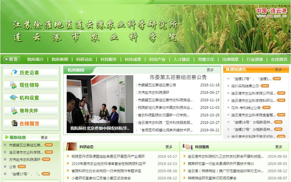 連云港市農業(yè)科學院又名江蘇徐淮地區(qū)連云港農科所,1981年成立,隸屬于江蘇省農業(yè)科學院和連云港市人民政府雙重領導。數十年來,經過幾代科技人員的共同努力,現已發(fā)展成為研究力量較強、學科優(yōu)勢突出、區(qū)域特色明顯的綜合性農業(yè)科研機構。全院現有在職職工80人,專業(yè)技術人員68人,其中,研究員4人,副研究員25人,中級職稱27人,初級職稱12人;具有博士學位5人,在讀博士1人,碩士學歷26人,本科35人。享受國務院特殊津貼1人,省“333”人才工程二層次培養(yǎng)對象1人、三層次培養(yǎng)對象6人,省有突出貢獻的中青年專家1人,獲市突出貢獻獎1人,享受市政府特殊津貼5人,市“521”工程培養(yǎng)對象16人,市優(yōu)秀科技人員一等獎3人,二等獎4人。我院為區(qū)域性、公益服務型農業(yè)科研機構,主要開展農業(yè)新品種選育、應用技術開發(fā)研究以及科技示范、科技服務工作,同時進行應用基礎和農業(yè)宏觀對策研究,為我市農業(yè)和農村經濟發(fā)展提供成果保證和技術支撐。目前設有3個管理部門:辦公室、科技處、財務處;9個研究部門:水稻研究室、小麥研究室、蔬菜研究室、雜糧研究室、花卉園藝研究中心、果林研究室、資環(huán)研究室、動物研究中心、生物技術研究室(籌建);1個科技型企業(yè):江蘇金萬禾農業(yè)科技有限公司。擁有設施完善的植物生理實驗室、組織培養(yǎng)實驗室、稻麥分子育種實驗室,已建設4個科研育種試驗基地1000余畝,一是東辛農場試驗基地,以稻麥、玉米、花生、切花、蔬菜等新品種選育、新技術試驗示范、科普教育為主;二是玉帶河試驗基地,以植物轉基因研究為主;三是以東海駝峰試驗基地;四是贛榆青口鹽場耐鹽植物選育研究與示范試驗基地,以耐鹽植物新品種選育為主。我院建有博士后科研工作站(創(chuàng)新基地),2007年12月成立國家水稻產業(yè)體系連云港綜合試驗站,2013年1月成立中國科學院離子束生物工程學重點實驗室連云港實驗室。我院針對省、市農村經濟與科技發(fā)展的目標和方向,確立十個重點研究領域:一是常規(guī)粳稻、雜交粳稻和雜交秈稻新品種(組合)選育;二是優(yōu)質專用中強筋小麥新品種選育;三是出口蔬菜新品種選育及產業(yè)化開發(fā)研究;四是鮮切花及高檔盆栽花卉新品種引選及配套栽培技術研究;五是云臺山區(qū)地方特色果樹資源搜集、整理與利用研究;六是特種動物新品種引選、繁育及利用研究;七是耐鹽植物新品種引選及產業(yè)化開發(fā)研究;八是地方藥用植物開發(fā)與利用研究;九是切花菊花出口周年供應技術研究;十是農業(yè)重大病蟲草害防治技術研究等。多年來,我院根據農業(yè)生產的需求,在農作物育種、生態(tài)農業(yè)技術研究等領域創(chuàng)立了自身的優(yōu)勢和特色,“十二五”以來,共承擔各種科研課題200余項,課題總經費5000余萬元,通過審(鑒)農作物新品種13個,獲植物新品種權授權3個,申請新品種權保護5項,制定省地方標準13項,獲專利授權10項,獲科技成果獎25項,其中國家科技進步一等獎1項,教育部科技進步獎1項,農業(yè)部中華農業(yè)獎二等獎1項,在省級以上專業(yè)刊物發(fā)表科技論文200余篇,科技成果轉化創(chuàng)社會經濟效益200多億元。經過多年的努力和積累,我院爭取的部省級以上項目數量和經費大幅度提高,不斷提升了我院科研項目品質及科技創(chuàng)新能力,并獲得“軟環(huán)境十佳單位”、“十五先進科技創(chuàng)新集體”、“建設連云港先進單位”、“市級文明單位”、“科技服務先進單位”等稱號,多次受到市委、市政府的嘉獎。我院積極配合各相關單位及部門,參加 “科技幫扶整村推進”、“科技進村入戶”、“掛縣強農富民工程”等多類項目,充分發(fā)揮我院技術和人才的雙重優(yōu)勢,開展形式多樣的科技服務、科技下鄉(xiāng)及科技扶貧活動,推進我市農村科普活動和科技信息服務,充分利用廣播、電視、報刊、網絡等各種媒體,廣泛宣傳農業(yè)政策法規(guī)、科技知識、技術成果等,全面提高我市廣大農民的科技素質,把農業(yè)科技真正送到農民手中。近年來,我院立足優(yōu)勢產業(yè),走產學研相結合的道路,加強新品種新技術的推廣應用,形成科研成果向現實生產力加速轉化的良好局面。加大連粳4號、連粳7號、連粳9號等連粳系列水稻新品種和連麥6號、連麥7號等連麥系列小麥品種推廣力度。加快了科研的成果轉化,增加了農民的經濟收入,社會效益極為顯著。同時依托科技人才優(yōu)勢、加強資源整合的同時,努力推進與科技型企業(yè)的合作,引進外部優(yōu)質資源,加快形成支柱產業(yè)。成功注冊成立1000萬元的金萬禾農業(yè)科技發(fā)展有限公司,從事農業(yè)科技成果轉化和新品種新技術的推廣應用,逐步建立科研開發(fā)支持科技產業(yè)、科技產業(yè)反哺科研開發(fā)的運行機制。同時,我院逐步加強與國內外高校及其它農業(yè)科研院所的聯(lián)系,建立產學研合作關系,加強學術交流及技術合作,引進國內外農業(yè)先進技術和科技創(chuàng)新機制,整合優(yōu)勢創(chuàng)新資源,增強自身創(chuàng)新能力。已與中國北方雜交稻研究中心、中國農科院作物中心、天津農科院、南京農業(yè)大學等10余家單位,建立技術合作關系,通過聯(lián)合申報、聯(li