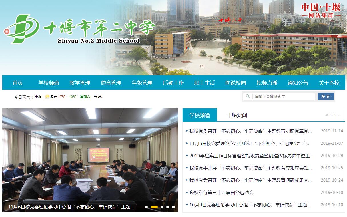 十堰市第二中學是十堰市最大的一所完全中學,現(xiàn)有88個教學班,學生近5000人,其中高中46個教學班,學生2600人;初中42個教學班,學生2300人。學校現(xiàn)占地面積100000平方米,校園環(huán)境優(yōu)美,綠樹成蔭,已建成的教學區(qū)、運動區(qū)、生活區(qū)布局合理,格調(diào)高雅。學校現(xiàn)代化教學設施日趨完備,活動場地充足,功能齊全,是讀書學習的理想場所。初中中考升學率連續(xù)多年城區(qū)第一;高中辦學水平綜合評定居全市同類高中第一;體育、美術特長生培養(yǎng)形成特色、規(guī)模,已成為學生向往、家長滿意、社會信任的現(xiàn)代化學校。學校遵循“育人為本,和諧發(fā)展”的辦學理念,立足學生終身發(fā)展,堅持“成才先成人”的教育思想,積極倡導教學方式和學習方式的轉(zhuǎn)變,狠抓教研教改質(zhì)量,扎實推進素質(zhì)教育,始終追求辦有理想的教育、有特色的學校。30多年來,學校教育教學成績斐然:高考連創(chuàng)佳績,中考一直保持領先地位,特長教育形成規(guī)模、特色。學校體育隊長期代表十堰市在國家、省市重大體育比賽中摘金奪銀。十堰二中先后榮膺“全國學校體育衛(wèi)生工作先進單位”、“湖北省文明單位”、“湖北省教改實驗學?!?、“湖北省安全文明校園”、“十堰市最佳文明單位”、“十堰市人民滿意學?!薄ⅰ笆呤衅胀ǜ咧惺痉秾W?!钡榷囗検鈽s。