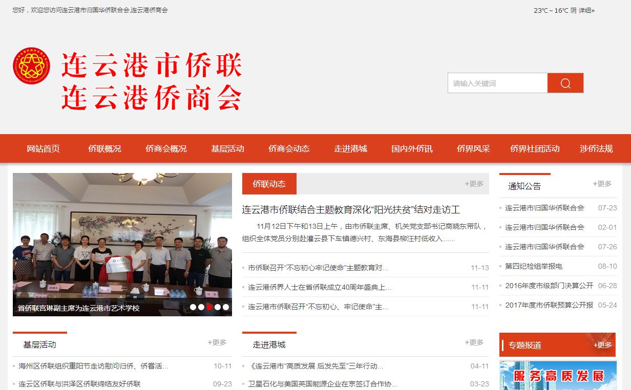 連云港市歸國華僑聯(lián)合會(簡稱連云港市僑聯(lián)),是中共連云港市委領導的由全市歸僑、僑眷組成的人民團體,是黨和政府聯(lián)系廣大歸僑、僑眷和海外華僑的橋梁和紐帶。連云港市僑聯(lián)是江蘇省僑聯(lián)的團體會員、中國人民政治協(xié)商會議連云港市委員會的組成單位。連云港市僑聯(lián)以《中華人民共和國憲法》為根本的活動準則,在維護全國人民總體利益的同時,依法維護歸僑、僑眷和海外僑胞在國內(nèi)的合法權(quán)利和利益,關心海外僑胞的正當權(quán)利和利益。連云港市僑聯(lián)高舉愛國主義旗幟,根據(jù)中國僑聯(lián)章程,積極主動、獨立自主地開展工作,廣泛團結(jié)歸僑、僑眷和海外僑胞,為加快連云港市社會主義物質(zhì)文明和精神文明建設,為維護世界和平、振興中華、統(tǒng)一祖國,把我國建設成富強、民主、文明的社會主義現(xiàn)代化國家而奮斗。連云港市僑聯(lián)的最高權(quán)力機關是連云港市歸僑僑眷代表大會。代表大會閉會期間,連云港市僑聯(lián)委員會貫徹執(zhí)行代表大會的決議并決定連云港市僑聯(lián)工作中的重大問題。連云港第一次歸僑僑眷代表大會,于1980年9月26日召開,...。第六次歸僑僑眷代表大會,于2004年2月4日召開,會議選舉產(chǎn)生連云港市僑聯(lián)第五屆委員會。第七次歸僑僑眷代表大會,于2009年2月26日召開,會議選舉產(chǎn)生連云港市僑聯(lián)第七屆委員會。連云港市僑聯(lián)1980年成立,經(jīng)過機構(gòu)改革,下設辦公室,定編6人;連云港市僑聯(lián)的主要任務:廣泛團結(jié)和動員歸僑、僑眷投身祖國改革開放和現(xiàn)代化建設,積極促進海外僑胞與祖國進行經(jīng)濟合作和科技交流;參與國家政治、經(jīng)濟、文化和社會事務活動,維護歸僑、僑眷的合法權(quán)益和海外僑胞的正當權(quán)益;開展海外聯(lián)誼工作,鼓勵海外僑胞同居住地人民和睦相處,為居住地的繁榮和發(fā)展作貢獻,為促進我國人民與各國人民的友好合作而努力;弘揚中華優(yōu)秀傳統(tǒng),促進中外交流和祖國和平統(tǒng)一事業(yè)。目前,我市共有僑港資企業(yè)540家,約占全市861戶外資企業(yè)的64%。海外僑胞和港澳同胞捐贈我市用于公益事業(yè)的款項已達2000多萬元人民幣。廣大海外僑胞已成為我市對外開放和和現(xiàn)代化建設的重要推動力量。