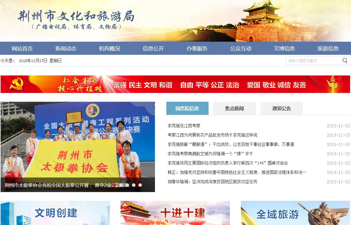 荊州市文化和旅游局主要職責(zé):(一)貫徹落實(shí)黨和國家文化、旅游、廣播電視、體育、文物工作的方針政策和法律法規(guī),研究擬訂全市文化和旅游政策措施。(二)統(tǒng)籌規(guī)劃全市文化事業(yè)、文化產(chǎn)業(yè)及旅游業(yè)發(fā)展,擬訂發(fā)展規(guī)劃并組織實(shí)施,推進(jìn)文化和旅游融合發(fā)展、體制機(jī)制改革。(三)管理全市性重大文化、旅游、體育活動,指導(dǎo)市文化和旅游重點(diǎn)設(shè)施、公共基礎(chǔ)設(shè)施建設(shè),組織全市旅游整體形象和重點(diǎn)品牌推廣,促進(jìn)文化、旅游、體育產(chǎn)業(yè)對外合作和市場推廣,制定全市旅游市場開發(fā)規(guī)劃并組織實(shí)施,指導(dǎo)推進(jìn)全域旅游。(四)指導(dǎo)管理全市文藝事業(yè),指導(dǎo)藝術(shù)創(chuàng)作生產(chǎn),扶持體現(xiàn)社會主義核心價值觀、具有導(dǎo)向性代表性示范性的文藝作品,推動各門類藝術(shù)、各藝術(shù)品種發(fā)展。(五)負(fù)責(zé)全市公共文化事業(yè)發(fā)展,推進(jìn)公共文化服務(wù)體系建設(shè)和旅游、體育公共服務(wù)建設(shè),深入實(shí)施文化惠民工程,組織實(shí)施重大公益工程和公益活動,推進(jìn)基本公共文化服務(wù)標(biāo)準(zhǔn)化、均等化。(六)指導(dǎo)全市文化、旅游科技創(chuàng)新發(fā)展,推進(jìn)信息化、標(biāo)準(zhǔn)化建設(shè)。(七)負(fù)責(zé)全市非物質(zhì)文化遺產(chǎn)保護(hù),擬訂非物質(zhì)文化遺產(chǎn)保護(hù)規(guī)劃,推動非物質(zhì)文化遺產(chǎn)的保護(hù)、傳承、普及、弘揚(yáng)和振興。(八)指導(dǎo)管理全市文物和博物館事業(yè),負(fù)責(zé)全市文物的保護(hù)、搶救、發(fā)掘、研究和展示利用工作,指導(dǎo)協(xié)調(diào)重大文物保護(hù)和考古項目的組織實(shí)施,指導(dǎo)文物、博物館管理機(jī)構(gòu)業(yè)務(wù)建設(shè),負(fù)責(zé)市級以上文物保護(hù)單位的申報、保護(hù)、維修、利用工作,指導(dǎo)監(jiān)督大遺址保護(hù)管理與建設(shè)工作。(九)統(tǒng)籌規(guī)劃全市文化、旅游和體育產(chǎn)業(yè),組織實(shí)施文化和旅游資源普查、挖掘、保護(hù)和利用工作,促進(jìn)文化、旅游和體育產(chǎn)業(yè)發(fā)展。(十)指導(dǎo)全市文化和旅游市場發(fā)展,對市場經(jīng)營進(jìn)行行業(yè)監(jiān)管。依法規(guī)范市場,實(shí)施依法設(shè)定的行政許可,推進(jìn)行業(yè)信用體系建設(shè)。負(fù)責(zé)全系統(tǒng)安全監(jiān)督管理工作,負(fù)責(zé)全市旅游安全的綜合協(xié)調(diào)和監(jiān)督管理,承擔(dān)全市旅游經(jīng)濟(jì)運(yùn)行監(jiān)測。(十一)組織指導(dǎo)全市文化市場綜合執(zhí)法,組織查處全市性、跨區(qū)域文化、文物、出版、廣播電視、電影、旅游等市場的違法行為,督查督辦重大案件,維護(hù)市場秩序。(十二)負(fù)責(zé)全市廣播電視行業(yè)管理,負(fù)責(zé)對廣播電視、網(wǎng)絡(luò)視聽節(jié)目服務(wù)機(jī)構(gòu)和業(yè)務(wù)的監(jiān)管。推進(jìn)廣播電視與新媒體新技術(shù)新業(yè)態(tài)融合發(fā)展。指導(dǎo)監(jiān)管廣播電視廣告播放。負(fù)責(zé)廣播電視節(jié)目傳輸覆蓋、監(jiān)測和安全播出監(jiān)管。指導(dǎo)推進(jìn)應(yīng)急廣播建設(shè)。(十三)指導(dǎo)管理全市群眾體育工作,推行全民健身計劃綱要,指導(dǎo)并開展群眾性體育活動,推動建立和完善全民健身服務(wù)體系。指導(dǎo)國家體育鍛煉標(biāo)準(zhǔn)實(shí)施,開展國民體質(zhì)監(jiān)測。負(fù)責(zé)對公共體育設(shè)施的監(jiān)督管理。(十四)統(tǒng)籌規(guī)劃全市競技體育發(fā)展,指導(dǎo)全市體育運(yùn)動項目的設(shè)置與布局。指導(dǎo)和推進(jìn)青少年體育工作,指導(dǎo)全市體育訓(xùn)練、競賽、青少年業(yè)余訓(xùn)練隊伍建設(shè)。組織協(xié)調(diào)、監(jiān)督全市體育運(yùn)動中的反興奮劑工作。負(fù)責(zé)市級以上綜合性體育競賽,組織參加國內(nèi)和省內(nèi)重大體育競賽。(十五)指導(dǎo)管理全市文化和旅游宣傳推廣和對外交流合作,組織開展大型交流推廣活動,推動荊楚文化走出去。(十六)完成市委、市政府交辦的其他任務(wù)。