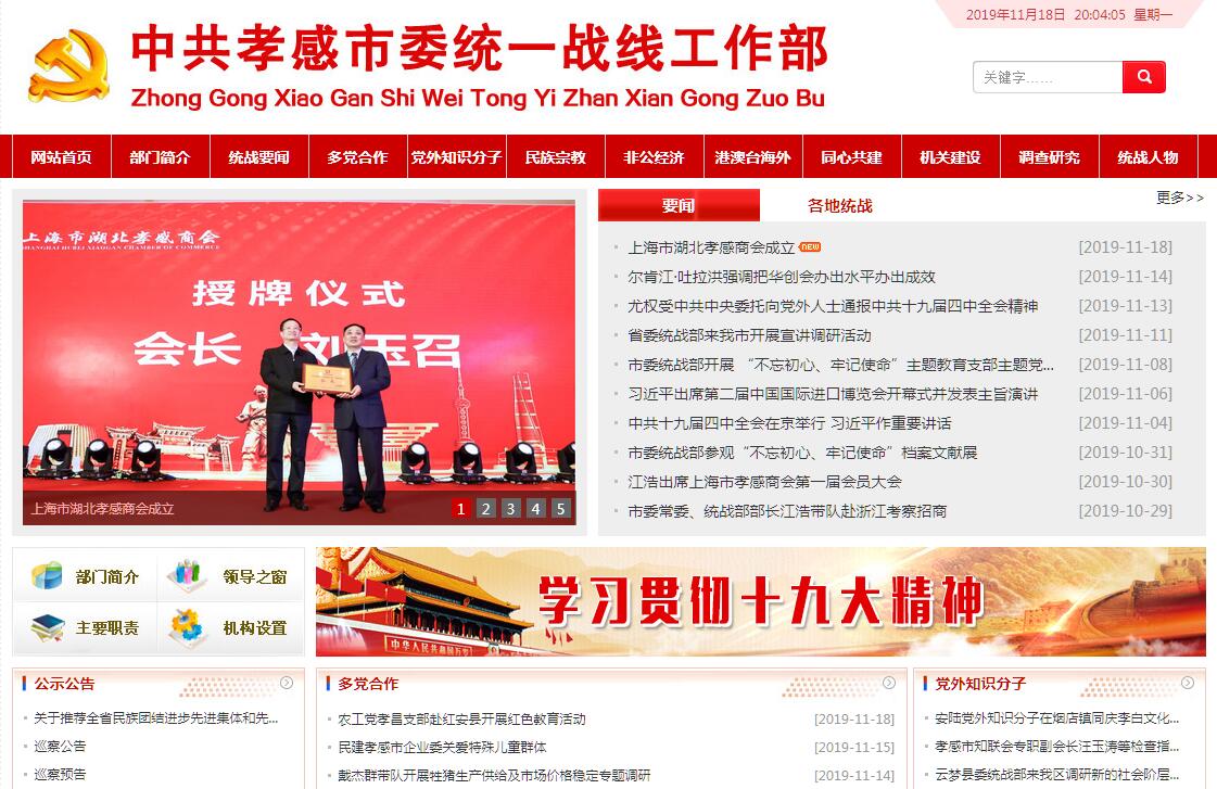 中共孝感市委統(tǒng)戰(zhàn)部是中共孝感市委主管統(tǒng)一戰(zhàn)線的職能部門,承擔(dān)了解情況、掌握政策、協(xié)調(diào)關(guān)系、安排人事、增進(jìn)共識(shí)、加強(qiáng)團(tuán)結(jié)等職責(zé),主要是:1、調(diào)查研究統(tǒng)一戰(zhàn)線的理論、方針、政策和法律法規(guī),向市委全面反映統(tǒng)一戰(zhàn)線情況,提出開展統(tǒng)戰(zhàn)工作的意見和建議,組織協(xié)調(diào)統(tǒng)一戰(zhàn)線政策和法律法規(guī)的貫徹落實(shí),檢查執(zhí)行情況,協(xié)調(diào)統(tǒng)一戰(zhàn)線各方面的關(guān)系。2、負(fù)責(zé)聯(lián)系民主黨派,牽頭協(xié)調(diào)無黨派人士工作,研究貫徹做好民主黨派和無黨派人士工作的方針政策,支持民主黨派和無黨派人士履行職責(zé)、發(fā)揮作用,支持、幫助民主黨派和無黨派人士加強(qiáng)自身建設(shè)。3、調(diào)查研究黨外知識(shí)分子工作,反映情況,協(xié)調(diào)關(guān)系,提出政策建議,聯(lián)系黨外知識(shí)分子代表人士。4、調(diào)查研究民族、宗教工作的理論、方針、政策和法律法規(guī),牽頭協(xié)調(diào)檢查落實(shí)情況,做好重要工作和重大問題的處理,協(xié)調(diào)開展馬克思主義民族觀、宗教觀和相關(guān)理論、政策的宣傳教育,聯(lián)系少數(shù)民族和宗教界的代表人士,會(huì)同有關(guān)部門做好少數(shù)民族干部培養(yǎng)和舉薦工作。5、調(diào)查研究非公有制經(jīng)濟(jì)代表人士的情況,協(xié)調(diào)關(guān)系,提出政策建議,團(tuán)結(jié)、幫助、引導(dǎo)、教育非公有制經(jīng)濟(jì)代表人士,開展思想政治工作。6、開展港澳臺(tái)海外統(tǒng)一戰(zhàn)線工作,聯(lián)系香港、澳門、臺(tái)灣和海外有關(guān)黨派、團(tuán)體及代表人士,會(huì)同有關(guān)部門對(duì)香港、澳門地區(qū)統(tǒng)一戰(zhàn)線工作方針政策和法律法規(guī)進(jìn)行調(diào)查研究,做好臺(tái)胞、臺(tái)屬的有關(guān)工作,負(fù)責(zé)市委交辦的其他港澳、對(duì)臺(tái)和海外統(tǒng)戰(zhàn)工作。7、負(fù)責(zé)黨外代表人士在市人大、政協(xié)安排的有關(guān)工作,會(huì)同有關(guān)部門做好安排黨外人士擔(dān)任政府和司法機(jī)關(guān)等領(lǐng)導(dǎo)職務(wù)的工作,做好黨外代表人士和后備干部隊(duì)伍建設(shè)工作,協(xié)助民主黨派做好干部管理工作,反映和解決黨外代表人士工作生活中的實(shí)際困難。8、指導(dǎo)縣(市、區(qū))黨委統(tǒng)一戰(zhàn)線工作,協(xié)助管理縣(市、區(qū))委統(tǒng)戰(zhàn)部部長(zhǎng),負(fù)責(zé)縣(市、區(qū))統(tǒng)戰(zhàn)部負(fù)責(zé)人培訓(xùn)工作;協(xié)調(diào)政府有關(guān)部門統(tǒng)一戰(zhàn)線工作,協(xié)助做好民族、宗教等工作部門領(lǐng)導(dǎo)班子成員推薦工作;領(lǐng)導(dǎo)市工商聯(lián)黨組,指導(dǎo)工商聯(lián)工作;做好有關(guān)統(tǒng)戰(zhàn)團(tuán)體管理工作。9、負(fù)責(zé)開展統(tǒng)一戰(zhàn)線宣傳工作。10、承擔(dān)市加快推進(jìn)“回歸創(chuàng)業(yè)工程”協(xié)調(diào)領(lǐng)導(dǎo)小組辦公室日常工作。11、完成市委和省委統(tǒng)戰(zhàn)部交辦的其他工作。
