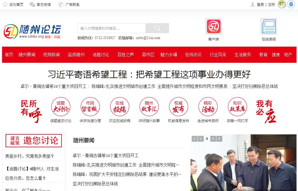 | 網(wǎng)站簡(jiǎn)介: 隨州論壇(szbbs.org)是由中共隨州市委宣傳部主管,隨州日?qǐng)?bào)社主辦的官方網(wǎng)站。隨州論壇創(chuàng)辦于2006年3月,以關(guān)注民生、方便市民為辦壇宗旨,以其開放的姿態(tài)、充滿人文關(guān)懷的特色受到了廣大網(wǎng)民的認(rèn)可。經(jīng)過7年的發(fā)展,已經(jīng)成為以隨州資訊、百姓之聲、隨州(房產(chǎn)、家居、美食、親子、汽車、教育、健康)、隨州義工、文學(xué)沙龍、風(fēng)行車隊(duì)等特色版塊為基礎(chǔ)的網(wǎng)絡(luò)交流平臺(tái),其中隨州義工版塊成為湖北省知名的義工組織,多次獲得各級(jí)政府的表彰,百姓之聲版塊為市民與政府之間搭建了一個(gè)良好的交流平臺(tái),幫助涉事部門利用這個(gè)平臺(tái)解決涉及民生有關(guān)問題,獲得政府和網(wǎng)民的一致好評(píng),論壇以最好的服務(wù)質(zhì)量如今成為隨州人氣超旺的門戶論壇。 |
