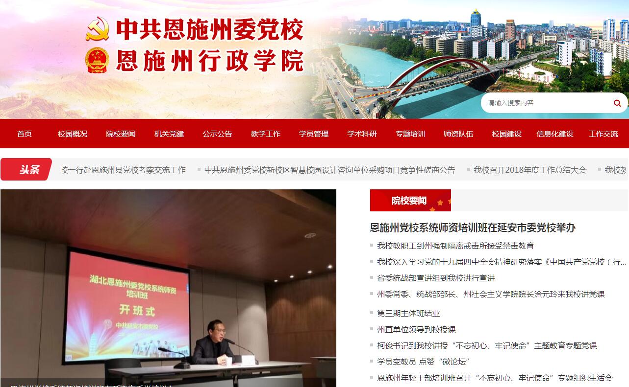 中共恩施州委黨校、恩施州行政學(xué)院是中共恩施州委、恩施州人民政府領(lǐng)導(dǎo)下的培訓(xùn)輪訓(xùn)全州科級以上黨員干部和國家公務(wù)員的學(xué)校。州委黨校創(chuàng)建于1952年,1989年開始兼辦恩施州民族干部學(xué)校,1994年開始兼辦恩施州行政學(xué)院,2000年開始兼辦恩施州社會主義學(xué)院。州委書記兼任第一校長,黨校校長由州委常委、州委組織部長兼任,行政學(xué)院院長由州委常委、常務(wù)副州長兼任,社會主義學(xué)院院長由州委常委、州委統(tǒng)戰(zhàn)部部長兼任。黨校實(shí)行校務(wù)委員會領(lǐng)導(dǎo)體制,常務(wù)副校長處理黨校日常工作,黨校校委會同時領(lǐng)導(dǎo)行政學(xué)院和社會主義學(xué)院、民族干部學(xué)校的日常工作。目前,州委黨校是“兩校兩院”體制,即州委黨校、州行政學(xué)院、州社會主義學(xué)院、州民族干部學(xué)校,四塊牌子一套班子。學(xué)校(院)內(nèi)設(shè)辦公室、教務(wù)處、學(xué)員管理處、科研處、培訓(xùn)處、黨建與人事工作處、后勤保衛(wèi)處、財務(wù)與資產(chǎn)管理處、州黨建研究所(加掛黨史黨建教研室牌子)、經(jīng)濟(jì)教研室、文化教研室、政法教研室、州情研究室、網(wǎng)絡(luò)信息中心、圖書綰、基層黨校工作指導(dǎo)處16個工作機(jī)構(gòu)?,F(xiàn)有在崗教職工57人,其中教師28人,行政后勤人員29人。擁有教授7人、副教授6人、碩士17人、博士2人,形成了一支堅(jiān)定不移地宣講馬克思主義理論的教師隊(duì)伍和哲學(xué)、科學(xué)社會主義、中共黨史、黨的建設(shè)、法學(xué)、經(jīng)濟(jì)學(xué)與行政管理等骨干學(xué)科。學(xué)校(院)位于恩施市土橋壩五峰山路12號,校園占地58.2畝,森林繁茂,環(huán)境優(yōu)美,交通便利,現(xiàn)代教學(xué)設(shè)施配套比較齊全。有大型學(xué)術(shù)報告廳、多功能會議廳、電子閱覽室、信息化多媒體教室等共15間,能同時容納1000人上課學(xué)習(xí)。校辦刊物有《清江論壇》;學(xué)員公寓樓有標(biāo)準(zhǔn)房間200個,可供住宿床位400個,學(xué)員食堂能容納300多人同時就餐。學(xué)校主要職責(zé)職能為,培訓(xùn)輪訓(xùn)包括黨組織關(guān)系在我州的垂直單位和部門的黨員領(lǐng)導(dǎo)干部、后備干部和理論干部,承辦州委、州政府舉辦的專題研討班;承擔(dān)公務(wù)員初任培訓(xùn)、輪崗培訓(xùn)、晉升培訓(xùn)及更新知識培訓(xùn);承擔(dān)民族干部、黨外干部的素質(zhì)教育、業(yè)務(wù)培訓(xùn)及更新知識培訓(xùn)。學(xué)校的主體班次有縣處級干部進(jìn)修班、州直科級干部進(jìn)修班、縣市局長進(jìn)修班,鄉(xiāng)鎮(zhèn)領(lǐng)導(dǎo)干部進(jìn)修班、中青年干部培訓(xùn)班、往屆選調(diào)生培訓(xùn)班、新錄用公務(wù)員初任培訓(xùn)班等。已基本形成了以鄧小平理論、“三個代表”重要思想和科學(xué)發(fā)展觀為中心,以習(xí)近平總書記系列重要講話精神為重點(diǎn),以黨的理論和黨性教育為主業(yè)主課的的黨校教學(xué)布局,以及以提高公務(wù)員素質(zhì)和行政能力為核心,以公仆意識、政府治理、依法行政為重點(diǎn)的行政學(xué)院培訓(xùn)模式。學(xué)校還根據(jù)干部教育培訓(xùn)需求,接受黨政機(jī)關(guān)、企事業(yè)單位的委托的專題培訓(xùn),以及為黨政機(jī)關(guān)、企事業(yè)單位提供各項(xiàng)培訓(xùn)服務(wù)。