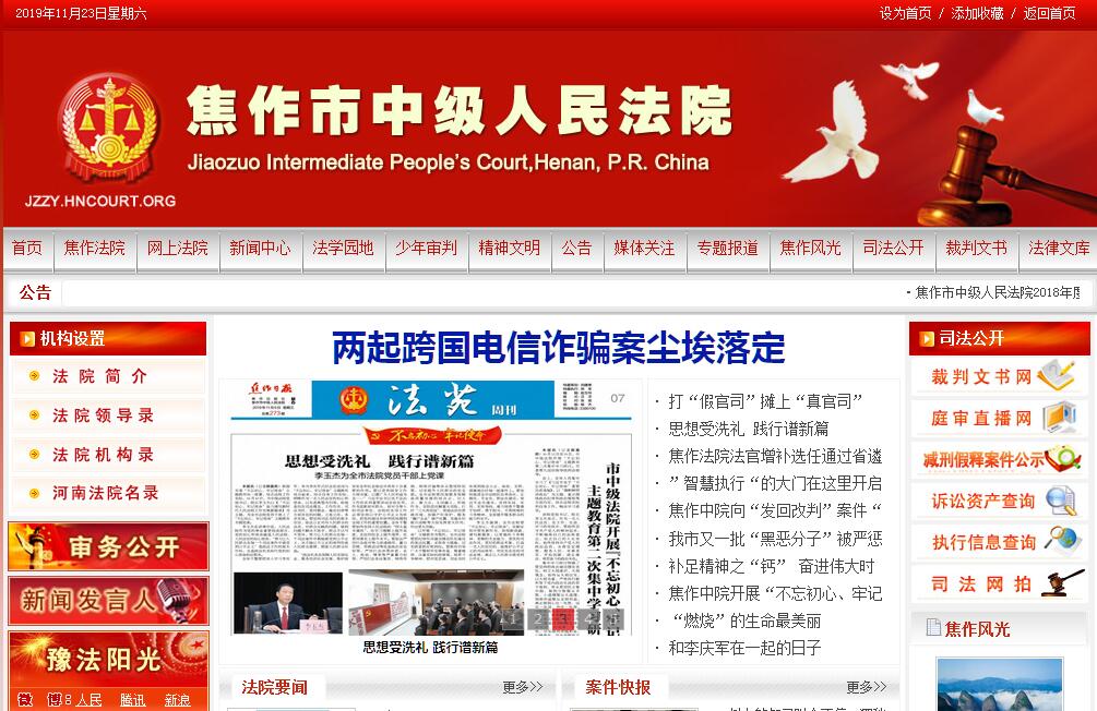 2009年以來,焦作市兩級法院在黨委的堅強領(lǐng)導下,在人大及其常委會的有力監(jiān)督下,在社會各界的關(guān)心支持下,以鄧小平理論和“三個代表”重要思想為指導,深入踐行科學發(fā)展觀,堅持“黨的事業(yè)至上、人民利益至上、憲法法律至上”工作指導思想,堅持“為大局服務,為人民司法”工作主題,按照“嚴管理、強素質(zhì)、創(chuàng)一流”的總體工作思路,團結(jié)拼搏,開拓進取,能動司法,在司法審判、隊伍建設(shè)和法院管理等方面均取得了明顯成效,為維護國家安全,維護社會穩(wěn)定,保障民生,促進經(jīng)濟社會的和諧發(fā)展作出了積極貢獻。以狠抓執(zhí)法辦案第一要務,在服務工作大局上不斷取得新進展。執(zhí)法辦案是人民法院發(fā)揮職能作用、服務黨和國家中心工作的根本。近年來,全市法院緊緊圍繞“保增長、保民生、保穩(wěn)定”和建設(shè)經(jīng)濟轉(zhuǎn)型示范市,充分發(fā)揮能動司法的作用,立足審判,找準定位,主動融入黨委中心工作,認真履行審判職責,為服務經(jīng)濟發(fā)展做出了積極貢獻。貫徹寬嚴相濟刑事政策,加大對刑事犯罪的懲治力度,全力維護社會穩(wěn)定,依法調(diào)節(jié)民事和行政法律關(guān)系,促進社會主義市場經(jīng)濟體制的完善和社會的和諧發(fā)展。積極參與社會管理創(chuàng)新,推進平安焦作建設(shè)。以堅持群眾滿意為根本追求,在服務和保障民生上不斷推出新舉措。人民群眾滿意是人民法院一切工作的根本出發(fā)點和落腳點。近年來,全市法院始終把解決人民群眾關(guān)注的熱點、難點問題作為法院工作的出發(fā)點和落腳點,不斷強化便民利民措施,著力維護和保障民生。建立大立案工作機制。建立一站式立案大廳、訴訟指導咨詢、假日法庭、“便民小黑板”等機制,方便群眾來訪來訴,優(yōu)化了群眾與法官溝通的效果。建立大信訪工作機制。建立法官下訪、領(lǐng)導包案、上門談心、逐案分析、一案一策、院領(lǐng)導接待和集中大接訪的大信訪工作機制,解決了一大批疑難復雜案件,有效預防了涉訴信訪案件的發(fā)生。建立大走訪工作機制。開展了 “訪民意、聽民生、解民憂、辦實事、促和諧”愛民進萬家大走訪活動,進一步加強了法官與人民群眾的聯(lián)系,樹立起司法為民、文明高效的良好形象。以加強司法公信建設(shè)為核心內(nèi)容,在改革創(chuàng)新上不斷取得新突破。近年來,全市法院始終以持續(xù)求進、勇爭一流為目標,緊緊抓住法院工作中的熱點、難點問題,理清工作思路,在審判執(zhí)行、審判管理、隊伍建設(shè)等方面推出了一系列改革創(chuàng)新舉措。2009年,在全市法院開展了制度落實年活動,切實提高制度的執(zhí)行力;2010年,在全市法院開展了審判管理年活動,探索建立了“四化一創(chuàng)”管理機制;2011年,在全市法院開展了廉政建設(shè)年活動,進一步完善了反腐倡廉的工作機制;2012年,在全市法院開展了基層基礎(chǔ)建設(shè)年活動,夯實了基層工作基礎(chǔ),提升了全市法院整體工作水平;2013年,在全市法院開展了作風建設(shè)年活動,全面轉(zhuǎn)變思想作風、工作作風和領(lǐng)導作風,提升隊伍整體形象。以強化隊伍建設(shè)為基礎(chǔ)保障,在提升干警司法能力和水平上不斷取得新成效。近年來,全市法院一直把隊伍建設(shè)作為法院工作的重中之重,通過狠抓思想政治建設(shè)、司法能力建設(shè)、基層黨組織建設(shè)、選人用人機制建設(shè)和黨風廉政建設(shè),取得了顯著的成績。廣大法官忠于職守,愛崗敬業(yè),廉潔奉公,嚴肅執(zhí)法,秉公辦案,為維護社會穩(wěn)定、保障群眾權(quán)益作出了重要貢獻。焦作中院連續(xù)四年被評為全省先進中級法院,先后被河南省高院、最高人民法院榮記集體二等功和集體一等功。全市法院涌現(xiàn)出了以全國優(yōu)秀法院溫縣人民法院,全國模范法官王衛(wèi)東,全國政法系統(tǒng)優(yōu)秀黨員干警、全國優(yōu)秀法官、黨的十八大代表李玉香等在全國、全省有影響的先進集體和個人。