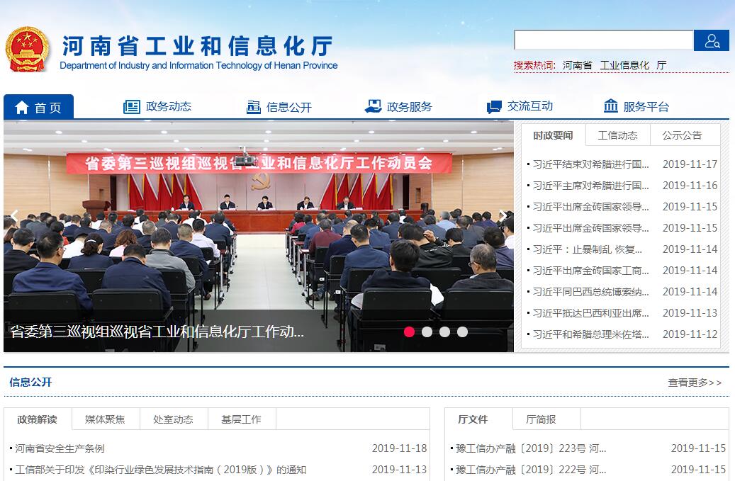 根據(jù)《中共中央辦公廳、國務院辦公廳關于印發(fā)〈河南省機構改革實施方案〉的通知》(廳字〔2018〕111號),河南省工業(yè)和信息化廳是省政府組成部門,為正廳級。河南省工業(yè)和信息化廳貫徹落實黨中央關于工業(yè)和信息化工作的方針政策和決策部署,在履行職責過程中堅持和加強黨對工業(yè)和信息化工作集中統(tǒng)一領導。其主要職責是:(一)貫徹執(zhí)行國家和省有關工業(yè)和信息化的法律、法規(guī)和方針政策,協(xié)調解決新型工業(yè)化進程中的重大問題,擬訂并組織實施全省工業(yè)和信息化的發(fā)展規(guī)劃以及推動傳統(tǒng)產業(yè)技術改造相關政策,推進產業(yè)結構戰(zhàn)略性調整和優(yōu)化升級,推進信息化和工業(yè)化融合。(二)擬訂并組織實施全省工業(yè)行業(yè)規(guī)劃、計劃和產業(yè)政策,提出優(yōu)化產業(yè)布局和結構政策建議;引導和扶持工業(yè)和信息產業(yè)發(fā)展,起草相關地方性法規(guī)、規(guī)章草案,擬訂并組織實施行業(yè)技術規(guī)范和標準,指導行業(yè)質量管理工作。(三)監(jiān)測分析全省工業(yè)運行態(tài)勢,統(tǒng)計并發(fā)布相關信息,進行預測預警和信息引導,協(xié)調解決行業(yè)運行發(fā)展中的有關問題并提出政策建議;指導相關行業(yè)加強安全生產管理,負責工業(yè)行業(yè)領域安全生產應急管理、產業(yè)安全等相關工作。(四)擬訂并組織實施全省制造業(yè)服務化、平臺化發(fā)展中長期規(guī)劃和年度計劃,促進制造業(yè)和生產性服務業(yè)融合發(fā)展,推進產業(yè)融合、生產性服務業(yè)功能區(qū)和公共服務平臺建設;促進供應鏈管理技術推廣應用,協(xié)同推進現(xiàn)代物流業(yè)發(fā)展。(五)負責提出全省工業(yè)和信息化固定資產投資規(guī)模和方向(含利用外資和境外投資),國家對口部門和本省用于工業(yè)和產業(yè)信息化財政性建設資金安排的意見,按照國務院和省政府規(guī)定權限審批、核準國家和省規(guī)劃內以及年度計劃規(guī)模內固定資產投資項目。 (六)組織實施國家高技術產業(yè)中涉及生物醫(yī)藥、新材料、航空航天、信息產業(yè)等的規(guī)劃、政策和標準,指導行業(yè)技術創(chuàng)新和技術進步,以先進適用技術改造提升傳統(tǒng)產業(yè),組織實施國家和省有關科技重大專項,推進相關科研成果產業(yè)化,推動全省軟件業(yè)、信息服務業(yè)和新興產業(yè)發(fā)展。(七)擬訂并組織實施全省工業(yè)和信息化的能源節(jié)約和資源綜合利用、循環(huán)經濟、綠色化改造促進政策,參與擬訂能源節(jié)約和資源綜合利用、循環(huán)經濟、綠色化改造促進規(guī)劃、政策,組織協(xié)調相關重大示范工程建設和新產品、新技術、新設備、新材料推廣應用。(八)負責全省振興裝備制造業(yè)的組織協(xié)調工作,組織擬訂重大技術裝備發(fā)展和自主創(chuàng)新的規(guī)劃、政策,依托國家和省重點工程建設協(xié)調有關重大專項的實施,推進重大技術裝備國產化,指導引進重大技術裝備的消化創(chuàng)新。(九)負責全省中小企業(yè)、民營經濟發(fā)展的宏觀指導,擬訂并組織實施中小企業(yè)發(fā)展中長期規(guī)劃;負責推動建立完善中小企業(yè)服務體系,協(xié)調解決重大問題;會同有關部門擬訂促進中小企業(yè)發(fā)展和非公有經濟發(fā)展的相關政策、措施并監(jiān)督檢查執(zhí)行情況。(十)統(tǒng)籌推進全省信息化工作,組織制定相關政策并協(xié)調信息化建設中的重大問題;促進電信、廣播電視和計算機網絡融合,指導協(xié)調工業(yè)電子商務平臺建設,推動跨行業(yè)等互聯(lián)互通和重要信息資源的開發(fā)利用共享;推進物聯(lián)網、云計算、大數(shù)據(jù)等基于信息技術的新興業(yè)態(tài)發(fā)展。(十一)承擔相關信息安全管理責任;負責協(xié)調維護全省網絡安全和網絡安全保障體系建設,指導監(jiān)督重點行業(yè)的關鍵信息基礎設施和基礎網絡的相關安全保障工作;承擔信息安全應急協(xié)調工作,協(xié)調處理重大事件。(十二)統(tǒng)一規(guī)劃、配置和管理全省無線電頻譜資源,依法監(jiān)督管理無線電臺(站),協(xié)調處理軍地間無線電管理相關事宜,負責無線電監(jiān)測、檢測、干擾查處工作,協(xié)調處理電磁干擾事宜,維護空中電波秩序,依法組織實施無線電管制,統(tǒng)一管理全省無線電監(jiān)督管理機構。(十三)負責全省工業(yè)和信息化領域對外交流合作事務,研究擬訂支持政策措施;指導各地開展相關產業(yè)交流合作工作,督促交流合作簽約項目落實情況;擬訂并組織實施全省制造業(yè)對外合作年度行動計劃,編制發(fā)布我省工業(yè)和信息化領域產業(yè)合作指南;研究協(xié)調產業(yè)轉移示范區(qū)發(fā)展中的重大問題,提出政策建議。(十四)貫徹落實國家煤炭行業(yè)法律、法規(guī)和有關政策,研究擬訂全省煤炭及煤層氣發(fā)展政策;負責全省煤礦安全生產監(jiān)督管理,安全生產許可、生產能力監(jiān)管、安全評價機構資質認定、安全設施設計審查和標準化建設;對煤礦建設項目提出行業(yè)審核意見;負責全省煤炭經營監(jiān)督管理;承擔大型煤礦機電設施檢驗檢測工作的監(jiān)督管理職責;指導全省煤炭建設工程質量監(jiān)督工作;參與