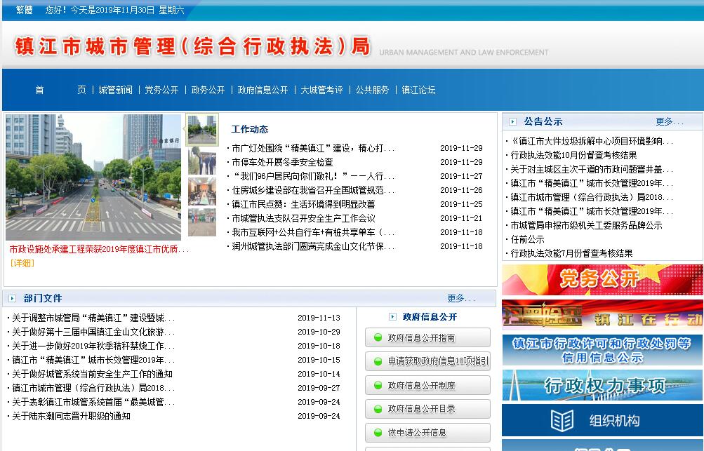 鎮(zhèn)江市城市管理局,為市政府工作部門。其主要職責(zé)是:(一)起草城市管理地方性法規(guī)、規(guī)章草案,制定規(guī)范性文件,指導(dǎo)并監(jiān)督實(shí)施。(二)參與編制城市總體規(guī)劃,組織編制市容、環(huán)衛(wèi)、公共停車場(chǎng)、城市戶外廣告設(shè)置和城市夜景燈飾設(shè)置等專業(yè)規(guī)劃;參與市區(qū)市政和公共環(huán)衛(wèi)配套設(shè)施的規(guī)劃論證和竣工驗(yàn)收工作。(三)指導(dǎo)、監(jiān)管市區(qū)市容、環(huán)境衛(wèi)生、公共停車場(chǎng)管理工作,指導(dǎo)城市道路、橋梁、照明設(shè)施的養(yǎng)護(hù)維修。(四)承擔(dān)市級(jí)市容、市政、環(huán)衛(wèi)等城市管理領(lǐng)域的行政許可。(五)承擔(dān)市區(qū)城市管理行政執(zhí)法監(jiān)督和行政復(fù)議、行政應(yīng)訴責(zé)任。(六)負(fù)責(zé)市智慧城管平臺(tái)的管理;負(fù)責(zé)城市長(zhǎng)效管理的信息采集、綜合協(xié)調(diào)和監(jiān)督考核工作。(七)指導(dǎo)、監(jiān)督城市生活垃圾的分類投放、收集、運(yùn)輸、處置工作,指導(dǎo)農(nóng)村生活垃圾分類和無害化處理。(八)依法行使國家、省、市規(guī)定的城市管理領(lǐng)域的行政處罰權(quán)。(九)會(huì)同財(cái)政部門編制年度經(jīng)費(fèi)計(jì)劃;參與編制并組織實(shí)施市容、市政、環(huán)衛(wèi)有關(guān)建設(shè)項(xiàng)目的年度投資計(jì)劃。(十)完成市委、市政府交辦的其他任務(wù)。