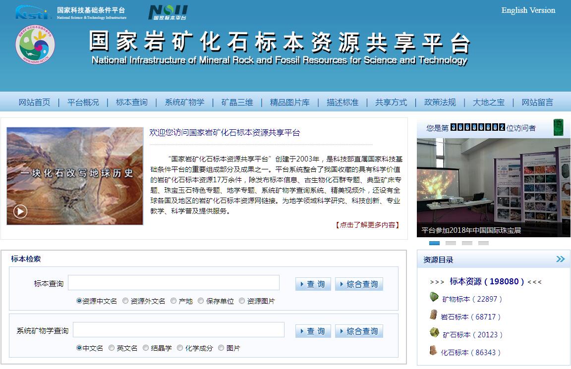 國家科技基礎(chǔ)條件平臺建設(shè)是我國科技創(chuàng)新體系建設(shè)的重要內(nèi)容,是社會科技進(jìn)步的重要標(biāo)志,是增強(qiáng)國家競爭能力的基礎(chǔ)性支撐,是國家安全的重要保障。通過國家科技基礎(chǔ)條件平臺建設(shè),既要有效地促進(jìn)科技資源的合理保護(hù)、科學(xué)管理和高效共享,為科技活動提供大量的、高質(zhì)量的原始性創(chuàng)新資源,又要有效確保我國的生態(tài)安全、衛(wèi)生安全、資源安全、社會安全及國家安全。巖礦和化石標(biāo)本資源是地質(zhì)工作者長期采集、整理、鑒定、研究和收藏的礦物、巖石、礦石和化石標(biāo)本以及一切相關(guān)的數(shù)據(jù)和研究資料。我國各地質(zhì)博物館、自然博物館、院校、科研所和生產(chǎn)單位雖然收集、保存大量的巖礦和化石標(biāo)本,擁有豐富的巖礦化石標(biāo)本資源,但缺乏系統(tǒng)性和科學(xué)的管理,各單位之間沒有統(tǒng)一的標(biāo)本描述標(biāo)準(zhǔn)、規(guī)范,沒有建立統(tǒng)一的資源網(wǎng)絡(luò)平臺,巖礦化石標(biāo)本資源的有效共享程度極低,因此對巖礦化石標(biāo)本資源的收集、整理、保存、利用與共享工作是我國地質(zhì)科技事業(yè)中一項重要而急迫、長期而又基礎(chǔ)性的戰(zhàn)略任務(wù)。“國家?guī)r礦化石標(biāo)本資源共享平臺”(http://www.nimrf.net.cn)創(chuàng)建于2003年,是科技部國家科技基礎(chǔ)條件平臺的重要組成部分及成果之一,由中國地質(zhì)大學(xué)(北京)牽頭,中國地質(zhì)博物館、中國科學(xué)院古脊椎動物與古人類研究所、中國科學(xué)院南京地質(zhì)古生物研究所、中國地質(zhì)科學(xué)院礦產(chǎn)資源研究所、中國地質(zhì)大學(xué)(武漢)、吉林大學(xué)等七家以上國家級巖礦化石標(biāo)本資源保存單位共同完成,按照標(biāo)本資源產(chǎn)權(quán)歸屬不變的原則,采用標(biāo)本實物資源由各單位保存,標(biāo)本信息資源統(tǒng)一發(fā)布的管理方式。平臺系統(tǒng)整合了我國收藏的具有科學(xué)價值的巖礦化石標(biāo)本資源12.6萬余件,除發(fā)布標(biāo)本信息、古生物化石群專題、典型礦床專題、珠寶玉石專題、特色地學(xué)專題、系統(tǒng)礦物學(xué)查詢系統(tǒng)檢索外,還設(shè)有全球各國及地區(qū)的巖礦化石標(biāo)本資源網(wǎng)鏈接。為地學(xué)領(lǐng)域科學(xué)研究、科技創(chuàng)新、專業(yè)教學(xué)、科學(xué)普及提供服務(wù)?!皣?guī)r礦化石標(biāo)本資源共享平臺”的最終目標(biāo)是:建成一個現(xiàn)代化、國際化、開放型的地學(xué)領(lǐng)域巖礦化石數(shù)據(jù)中心,屆時,信息網(wǎng)將擁有巖礦標(biāo)本實物庫、數(shù)據(jù)圖形庫、圖像庫、相應(yīng)的文獻(xiàn)庫等,并與國內(nèi)外相關(guān)數(shù)據(jù)中心、標(biāo)本庫、博物館聯(lián)網(wǎng),使本共享平臺具有收集貯存、檢索查詢、上網(wǎng)服務(wù)、數(shù)據(jù)發(fā)布等功能,同時為國內(nèi)外同行專家對比研究和數(shù)據(jù)深入挖掘提供服務(wù)。衷心希望國內(nèi)外地質(zhì)科技工作者和社會公眾提出寶貴意見,也歡迎資源保藏單位和個人提供標(biāo)本資源,支持本平臺的建設(shè)。