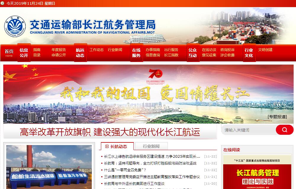 交通運輸部長江航務管理局(以下簡稱長航局)是遵照國務院國發(fā)[1983]50號文件精神,根據(jù)政企分開、港航分管的原則,在原長江航運管理局的基礎上于1984年組建的。2002年,中編辦《關于交通部長江航務管理局主要職責和人員編制的批復》(中編辦復字[2002]7號)明確長航局為交通部派出機構,受交通部委托或法規(guī)授權行使長江干線(四川宜賓——上海長江口,干線航道里程2808公里)航運發(fā)展規(guī)劃、運輸市場監(jiān)管、水上安全監(jiān)督、航道整治維護、三峽樞紐通航、水上治安消防等政府行業(yè)管理職能。2009年,隨國家大部制改革,經國務院批準定名為交通運輸部長江航務管理局。2016年,交通運輸部領導實施深化長江航運管理體制改革,長江干線海事、航道實現(xiàn)了集中統(tǒng)一管理。目前,長航局下轄長江海事局(含江蘇海事局)、長江航道局(含長江口航道管理局)、長江三峽通航管理局、中國水運報刊社和長航總醫(yī)院等11個單位,還有66個基層局,遍布長江沿線大中城市,全系統(tǒng)現(xiàn)有職工3.5萬余人。長航局主要職責:(一)貫徹國家水路交通行業(yè)發(fā)展戰(zhàn)略、方針政策和法規(guī),組織或參與長江干線航運有關規(guī)章草案的擬定工作,按法定程序批準后負責監(jiān)督實施;擬定長江干線航運發(fā)展戰(zhàn)略,組織編制長江干線航運中長期規(guī)劃和五年規(guī)劃,報交通運輸部批準后監(jiān)督實施。(二)負責長江干線航運行政管理。負責長江干線航運市場宏觀調控和秩序監(jiān)督管理;規(guī)范長江干線水運建設市場,維護平等競爭秩序;負責長江干線港航設施建設和使用岸線布局的行業(yè)管理;組織長江干線國家重點物資和緊急物資運輸;協(xié)助軍事物資運輸;負責長江干線水運規(guī)費稽征。(三)負責長江干線客貨運輸質量、航運基礎設施工程項目和水運工程質量的監(jiān)督管理。(四)負責長江干線航道、樞紐通航、通信、引航等管理工作。(五)按規(guī)定管理長江干線水上安全監(jiān)督和航運公安工作。(六)協(xié)調長江水系各?。ㄊ校┙煌ㄟ\輸廳(局、委)及其航務管理機構、港口管理機構的相關業(yè)務工作;協(xié)調長江水系水資源綜合開發(fā)中的有關航運工作。(七)指導長江干線水運行業(yè)體制改革、法制建設和結構調整;組織航運重大科技開發(fā)、推動行業(yè)技術進步;負責長江干線水運行業(yè)相關的統(tǒng)計和信息引導;負責政府間長江干線航運涉外工作,指導利用外資工作;開展國際間內河運輸經濟技術合作與交流;指導長江干線航運信息化和職工教育工作。(八)負責局機關和系統(tǒng)單位的年度固定資產投資計劃、財務管理和審計監(jiān)督工作。(九)負責局機關和系統(tǒng)單位人事、勞動工資、機構編制管理工作;按規(guī)定管理系統(tǒng)單位領導干部;負責系統(tǒng)單位黨的建設、廉政建設和思想政治工作,指導長江干線水運行業(yè)精神文明建設和職工隊伍建設工作。(十)承辦交通運輸部交辦的其他事項。