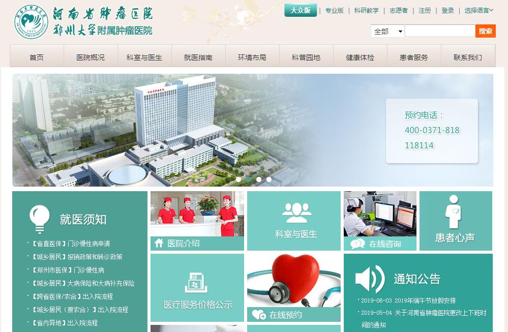 河南省腫瘤醫(yī)院(鄭州大學(xué)附屬腫瘤醫(yī)院)是河南唯一一所集醫(yī)療、預(yù)防、科研、教學(xué)、康復(fù)為一體的三級甲等腫瘤??漆t(yī)院,籌建于1977年,1984年正式開診,2010年掛牌成為鄭州大學(xué)附屬腫瘤醫(yī)院。經(jīng)過近40年的建設(shè),醫(yī)院已發(fā)展為腫瘤防治能力國內(nèi)知名、全省領(lǐng)先的大型現(xiàn)代化醫(yī)院。醫(yī)院現(xiàn)有2991張床位、36個臨床醫(yī)技科室,職工3150余人,其中高級職稱535人,博士、碩士855人,鄭大博士生、碩士生導(dǎo)師80人,享受國務(wù)院特殊津貼專家、省管優(yōu)秀專家、省學(xué)術(shù)技術(shù)帶頭人34人。醫(yī)院學(xué)科實力雄厚。40年來,我們建成了4個國家臨床重點專科、21個省級臨床醫(yī)學(xué)重點(培育)學(xué)科。河南省癌癥中心、省腫瘤研究院、省抗癌協(xié)會、省腫瘤防治辦公室、省血液病研究所等省級腫瘤防治、研究機(jī)構(gòu)均設(shè)在這里;省腫瘤診治質(zhì)控中心、省腫瘤疾病會診中心等18個省級研究、診療和質(zhì)控中心,成為醫(yī)院建設(shè)腫瘤診療優(yōu)勢學(xué)科群的有力支撐。醫(yī)院診療實力突出。胸部腫瘤微創(chuàng)技術(shù)、食管癌加速康復(fù)技術(shù),精確放射治療技術(shù)、造血干細(xì)胞移植手術(shù)、腫瘤多學(xué)科綜合規(guī)范化治療、乳腺癌規(guī)范化治療均居國內(nèi)領(lǐng)先水平。醫(yī)院診療設(shè)備先進(jìn)。目前擁有價值百萬元以上診療設(shè)備150臺件,價值數(shù)億元。近年來,醫(yī)院先后購置的荷蘭飛利浦iCT(256層)、西門子3.0核磁共振、三維斷層攝影乳腺機(jī),為臨床診斷提供了有力支撐;圖像引導(dǎo)西門子ONCOR加速器、瓦里安Truebeam加速器、醫(yī)科達(dá)Infinity加速器和術(shù)中放射治療系統(tǒng),有力保證了醫(yī)院腫瘤放射治療的領(lǐng)先地位;全高清胸腔鏡、3D高清腹腔鏡、綠激光手術(shù)系統(tǒng)等引進(jìn),為腫瘤外科手術(shù)創(chuàng)新提供堅實保障。醫(yī)院堅持“引育結(jié)合、以育為主”的原則,不斷加快創(chuàng)新型人才體系建設(shè),推動臨床科研取得突破性進(jìn)展。共承擔(dān)46項國家自然科學(xué)基金項目,建成6個省級重點實驗室、4個院士工作站、中美腫瘤生物樣本中心、中美(河南)荷美爾腫瘤研究院。作為鄭州大學(xué)教學(xué)醫(yī)院,現(xiàn)有臨床專業(yè)學(xué)位博士點3個,碩士點9個。血液科副主任房佰俊入選“新世紀(jì)百千萬人才工程”國家級人選。宋永平教授領(lǐng)銜的“干細(xì)胞移植與生物治療研究”團(tuán)隊、羅素霞教授領(lǐng)銜的“結(jié)直腸個體化治療基礎(chǔ)與臨床研究”團(tuán)隊,省醫(yī)學(xué)科學(xué)院副院長、我院特聘教授郭永軍領(lǐng)銜的“腫瘤精準(zhǔn)醫(yī)療研究與轉(zhuǎn)化”團(tuán)隊,房佰俊教授領(lǐng)銜的“骨髓瘤基礎(chǔ)與臨床研究”團(tuán)隊、黎海亮主任醫(yī)師領(lǐng)銜的“中晚期肝癌基礎(chǔ)研究及臨床診療”團(tuán)隊相繼入選河南省“創(chuàng)新型科技團(tuán)隊”。十二五期間,醫(yī)院投入13.5億元建設(shè)的病房綜合大樓投入使用,實現(xiàn)醫(yī)院診療環(huán)境的升級換擋;投入9500多萬元建設(shè)啟用的中美(河南)荷美爾腫瘤研究院,正在成為河南重要的腫瘤基礎(chǔ)研究和臨床轉(zhuǎn)化研究基地。醫(yī)院開設(shè)全省首家腫瘤患者“心理疏導(dǎo)室”,組建了“全國疼痛示范病房”和“安寧護(hù)理”病房,設(shè)有心理疏導(dǎo)門診,傷口造口門診,靜脈治療門診等護(hù)理??铺厣T診,擁有河南省腫瘤??谱o(hù)士培訓(xùn)基地、老年??谱o(hù)士培訓(xùn)基地、傷口造口??谱o(hù)士培訓(xùn)基地、靜脈治療??谱o(hù)士培訓(xùn)基地等省級??谱o(hù)士培訓(xùn)基地,成立了腫瘤康復(fù)、放療護(hù)理、化療護(hù)理、營養(yǎng)護(hù)理等??茖W(xué)組,及時服務(wù)患者。醫(yī)院大力開展親情服務(wù)、感動服務(wù)、延伸服務(wù),實現(xiàn)了“優(yōu)質(zhì)護(hù)理示范病區(qū)”全覆蓋。醫(yī)院整合醫(yī)后服務(wù)中心、病房管理中心和臨床服務(wù)中心資源,成立河南省首家客戶服務(wù)中心,為患者提供涵蓋院前、院中、院后全過程的服務(wù)。醫(yī)院致力于文化體系建設(shè),逐步提煉出包括醫(yī)院使命、辦院理念醫(yī)院精神和院訓(xùn)、愿景及核心價值觀,確立了院歌、院徽、院旗和醫(yī)院誓言等文化元素。建設(shè)濃縮醫(yī)院發(fā)展歷程的院史館和院志,彰顯人文情懷的文化墻,每年一度的“6·1建院紀(jì)念日”和醫(yī)院文化節(jié),已成為全院職工的文化盛宴。近年來,醫(yī)院先后榮獲全國五一勞動獎狀、全國文明單位、全國醫(yī)藥衛(wèi)生系統(tǒng)先進(jìn)集體、全國改革創(chuàng)新醫(yī)院和國家衛(wèi)健委“進(jìn)一步改善醫(yī)療服務(wù)示范醫(yī)院”,醫(yī)院影響力不斷提升?!督】抵性?030”規(guī)劃》提出,以省腫瘤醫(yī)院為主體,打造國家腫瘤區(qū)域醫(yī)療中心。面臨重大機(jī)遇,醫(yī)院將瞄準(zhǔn)建設(shè)國家腫瘤區(qū)域醫(yī)療中心目標(biāo),以臨床研究和臨床轉(zhuǎn)化為發(fā)展方向,以食管癌研究為發(fā)展高峰,通過向標(biāo)桿學(xué)習(xí)的“伴飛計劃”,做實多學(xué)科診療(MDT)、加速康復(fù)外科(ERAS)、精準(z