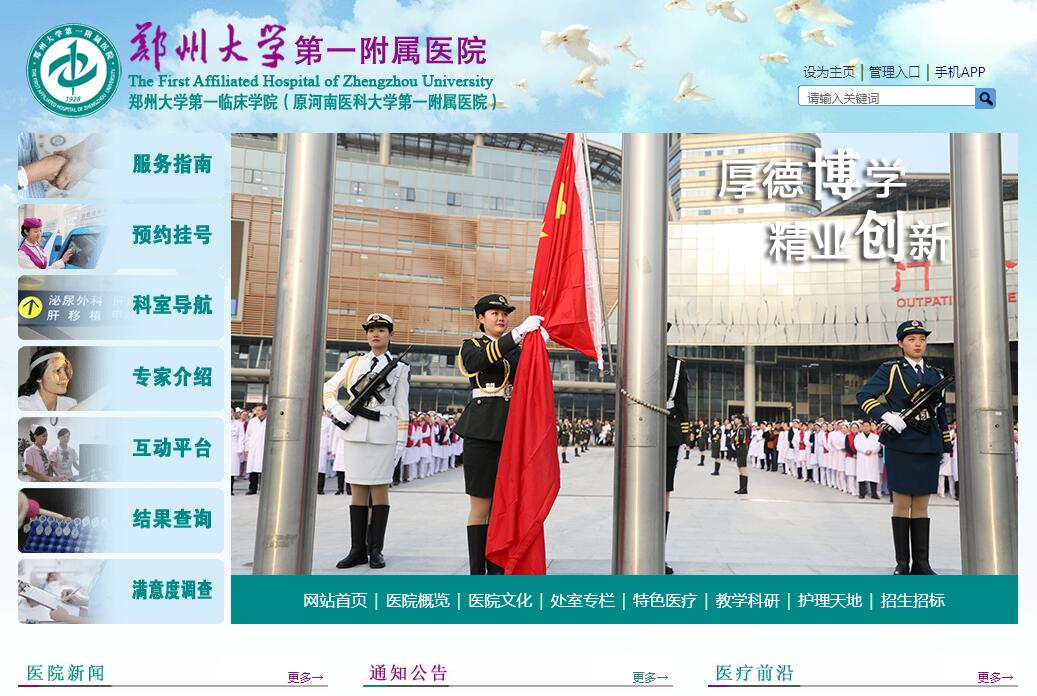 鄭州大學第一附屬醫(yī)院始建于1928年9月,其前身為原河南中山大學醫(yī)科。1930年醫(yī)科改為醫(yī)學院。1931建立省立河南大學附設醫(yī)院。1942年更名為國立河南大學附附屬醫(yī)院。1952年更名為河南醫(yī)學院附屬醫(yī)院。1958年從開封遷址鄭州,更名為河南醫(yī)學院第一附屬醫(yī)院。1985年更名為河南醫(yī)科大學第一附屬醫(yī)院。2000年原鄭州大學、鄭州工業(yè)大學、河南醫(yī)科大學三校合并,醫(yī)院正式命名為鄭州大學第一附屬醫(yī)院。2012年成為省部共建醫(yī)院。2017年臨床醫(yī)學成為國家“雙一流”建設學科。醫(yī)院是集醫(yī)療、教學、科研、預防、保健、康復為一體,具有較強救治能力、較高科研水平和國際交流能力的三級甲等醫(yī)院,先后被評為全國文明單位、全國“百佳醫(yī)院”、全國衛(wèi)生計生系統(tǒng)先進集體、全國醫(yī)院信息化建設先進單位、全國縣級醫(yī)院幫扶示范基地、中國PTC突出貢獻團隊獎、全國優(yōu)質護理服務優(yōu)秀醫(yī)院、全國醫(yī)院后勤管理先進集體、全國醫(yī)院文化建設先進單位等榮譽稱號。目前,醫(yī)院有河醫(yī)、鄭東和惠濟3個院區(qū),實行三個院區(qū)差異化發(fā)展、同質化管理、標準化建設和規(guī)范化運行。醫(yī)院有河南省口腔醫(yī)院、河南省眼科醫(yī)院、河南省基因醫(yī)院,鄭大一附院兒童醫(yī)院、腫瘤醫(yī)院、心血管病醫(yī)院、腦血管病醫(yī)院、生殖與遺傳??漆t(yī)院、耳鼻喉醫(yī)院、器官移植中心、消化病醫(yī)院、腎臟病醫(yī)院12個院中院,總占地面積682畝,臨床醫(yī)技科室95個,病區(qū)239個。 醫(yī)院著承擔腦血管病、器官移植和呼吸與危重癥三個國家區(qū)域醫(yī)療中心建設。近年來,醫(yī)院制定了“做細做優(yōu)、高質量可持續(xù)發(fā)展”發(fā)展戰(zhàn)略,全力建設“一流醫(yī)院、一流學科”,臨床醫(yī)學目前ESI全球排名達到1.87‰。醫(yī)院運營通過全面實施“五升五降”管理,實現(xiàn)了高質量良性發(fā)展。全院有在職職工12,409人,醫(yī)療衛(wèi)生技術人員11,168人,其中正高級職稱523人,副高級職稱899人,中級職稱4733人,具有博士學位的人員1647人、碩士2727人;有院士1人、特聘院士22人、長江學者2人、國家杰青2人、千人計劃2人、百人計劃2人、中原學者3人,享受國務院政府特殊津貼專家22人,省管優(yōu)秀專家20人,省級廳級學術帶頭人39人,創(chuàng)新人才2人。目前,醫(yī)院有在省級以上學術團體擔任常委以上職務300余人。其中,中華醫(yī)學會專業(yè)分會前任主委2人,主任委員1人,候任主委1人,副主任委員7人,常委22人。中國研究型醫(yī)院學會專業(yè)分會主委2人。其他國家級學術團體主委6人(含會長),副主委(含副會長、副理事長)24人;國際學會專業(yè)分會委員3人。河南醫(yī)學會各專業(yè)分會主委58人(含名譽主委10人),候任主委4人,副主委118人;其他省級學術團體主委(會長)48人(含名譽主委6人),候任主委3人,副主委(含副會長)47人。在國內外雜志擔任編委以上職務的有300多人。醫(yī)院臨床醫(yī)學是國家“雙一流”建設學科,是河南省優(yōu)勢學科,食管癌防治是河南省特色學科,是國家腎臟臨床醫(yī)學研究中心核心單位。醫(yī)院有國家臨床重點專科建設項目20個,有河南省重點學科27個,重點培育學科2個。醫(yī)院堅持瞄準國內外醫(yī)學科技前沿,砥礪進取,開拓創(chuàng)新,以心、腦、肺、肝、腎、耳鼻喉、眼、婦產科等優(yōu)勢學科為支撐的大器官疾病綜合診治技術始終處于全省領先地位,達到國內一流水平。近年來,一大批具有國內國際領先水平的新技術在我院得到應用,其中應用“等位基因映射識別MaReCS技術”精準阻斷染色體平衡易位向子代傳遞健康嬰兒在我院成功誕生,“基于配型的人胚胎干細胞來源的神經前體細胞腦內移植手術”成功實施,填補國際空白。應用單細胞SNP微陣列技術進行胚胎植入前遺傳學診斷試管嬰兒誕生,應用體外激活休眠卵泡及卵巢組織自體移植技術治療卵巢早衰試管嬰兒誕生,亨廷頓舞蹈癥應用“核映射及SNP芯片”聯(lián)合診斷技術進行胚胎植入前遺傳學診斷“雙芯試管寶寶”誕生,“韓新巍式血管可回收支架”的臨床應用,同卵雙生活體供肝肝移植手術等,填補國內空白。腎臟活檢與腎臟病理6000余例,居國內醫(yī)院第一位。肝腎移植數量居國內醫(yī)院前列,其中小兒腎移植例數連續(xù)四年居國內醫(yī)院第一位。3D打印技術已在多個臨床學科中成功實施。我院達芬奇手術機器人已成功開展泌尿、婦科、肝膽、胃腸、胸外等各類手術,標志著河南外科手術進入“機器人”時代。醫(yī)院是河南省培養(yǎng)高級醫(yī)療衛(wèi)生人才的臨床基地,實行三個“院系合一”管理,臨床醫(yī)學系、醫(yī)學檢驗系和口腔醫(yī)學院與醫(yī)院合一管理,承擔著鄭州大學臨床醫(yī)學系、醫(yī)學檢驗系、預防醫(yī)學系、口腔醫(yī)學系及醫(yī)學影像系的本科,碩、博研究生和留學生的教學任務。醫(yī)院是全國住院醫(yī)師規(guī)范化培訓基地,是河南省住院醫(yī)師規(guī)范化培訓示范基地,是河南省專科醫(yī)師培訓中心,在院規(guī)培人員2000余人。臨床醫(yī)學和護理學是一級學科博士、碩士學位授權點,涵蓋所有二級學科,有博士生導師113名,碩士生導師69