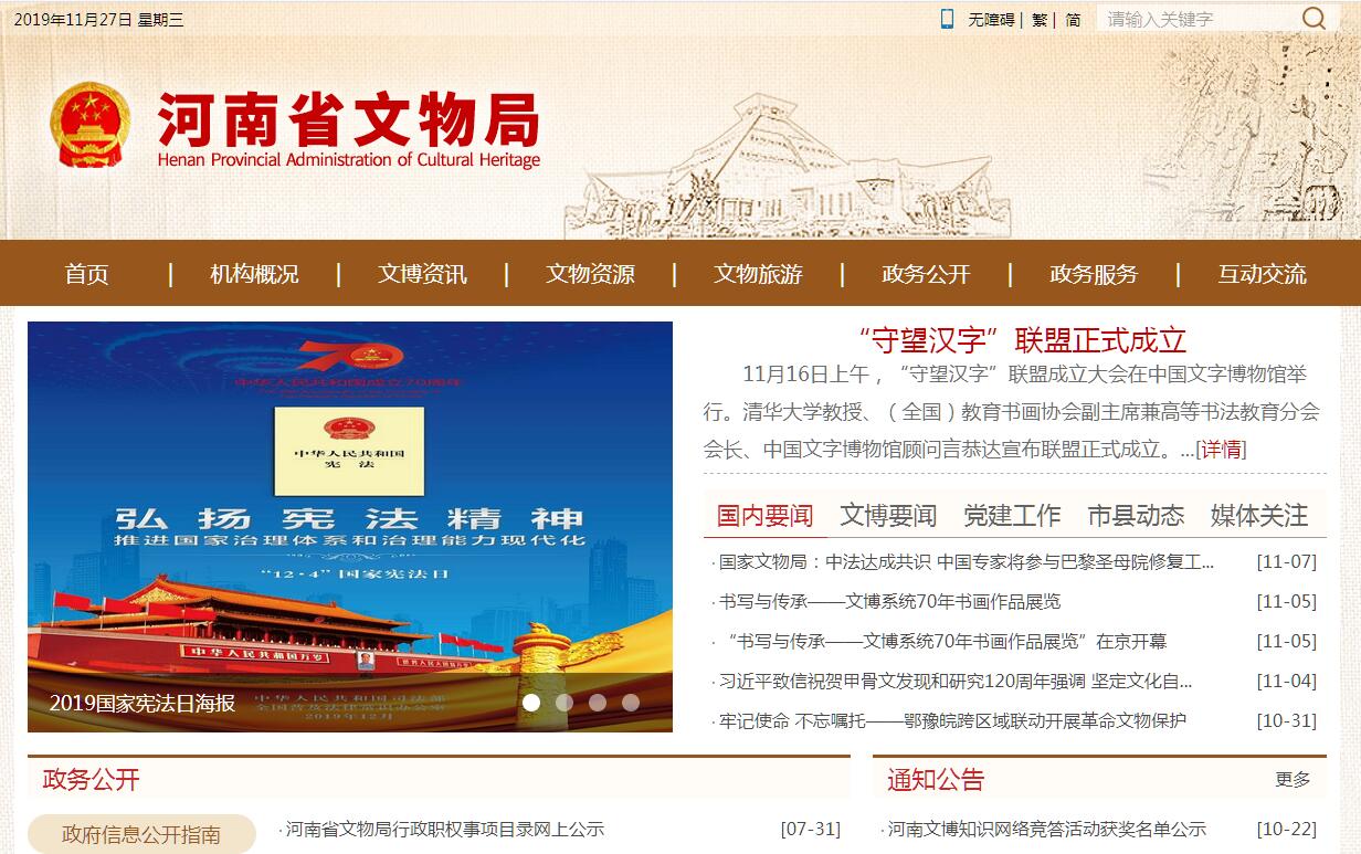 河南省文物局是河南省文化和旅游廳管理的部門管理機構(gòu),為副廳級。其主要職責(zé)是:(一)貫徹執(zhí)行國家文物保護法律、法規(guī)和文物工作方針、政策,起草全省文物保護地方性法規(guī)、規(guī)章草案和管理制度并負責(zé)監(jiān)督實施,擬訂并監(jiān)督實施全省文物和博物館事業(yè)發(fā)展規(guī)劃。(二)負責(zé)文物行政執(zhí)法督察,依法組織查處文物違法案件,協(xié)同有關(guān)部門查處文物犯罪重大案件,會同有關(guān)部門處理文物安全保衛(wèi)工作中的重大問題。(三)負責(zé)全省世界文化遺產(chǎn)保護和管理的監(jiān)督工作,組織審核世界文化遺產(chǎn)申報項目,協(xié)同有關(guān)部門審核世界文化和自然雙重遺產(chǎn)申報項目;協(xié)同有關(guān)部門負責(zé)國家級和省級歷史文化名城、歷史文化街區(qū)、名鎮(zhèn)、名村、傳統(tǒng)村落的推薦申報和規(guī)劃、管理、保護、監(jiān)督工作。(四)組織全省文物資源調(diào)查,申報全國、省級重點文物保護單位,指導(dǎo)全省大遺址保護、古建筑保護維修、近現(xiàn)代重要史跡和代表性建筑保護工作,組織實施文物保護和考古發(fā)掘項目,負責(zé)全省文物調(diào)查、勘探、考古發(fā)掘工作。(五)負責(zé)推動完善文物、博物館公共服務(wù)體系建設(shè),指導(dǎo)全省文物和博物館、紀念館的業(yè)務(wù)工作;負責(zé)文物和博物館有關(guān)審核、報批工作,指導(dǎo)社會文物管理、搶救、征集等工作,協(xié)調(diào)博物館間的交流與協(xié)作。(六)編制文物事業(yè)經(jīng)費預(yù)算,審核并監(jiān)督文物保護專項經(jīng)費使用情況,規(guī)劃、指導(dǎo)全省博物館、紀念館和文物重點基礎(chǔ)設(shè)施建設(shè),負責(zé)全省文物事業(yè)統(tǒng)計工作,負責(zé)機關(guān)和直屬單位國有資產(chǎn)管理。(七)指導(dǎo)全省文物保護宣傳工作,制定全省文物和博物館人才隊伍建設(shè)規(guī)劃,組織文物和博物館人才培訓(xùn)。(八)負責(zé)組織全省區(qū)域內(nèi)國家和省重點項目建設(shè)中的文物搶救保護工作。(九)擬訂全省文物和博物館科技、信息化工作規(guī)劃,組織實施重大文物保護科技項目,促進文物保護科技成果轉(zhuǎn)化和推廣。(十)擬訂全省文物資源管理利用規(guī)劃,指導(dǎo)全省文物和博物館單位開放利用及文創(chuàng)產(chǎn)品的研發(fā)推廣,會同有關(guān)部門做好全省文物單位的開放管理、保護利用工作,促進文旅融合。(十一)管理、指導(dǎo)全省文物和博物館外事工作,開展對外及對港、澳、臺地區(qū)的文物交流與合作,負責(zé)國家駐我省文物進出境審核機構(gòu)和文物進出境管理工作。負責(zé)全省文物經(jīng)營機構(gòu)審批;監(jiān)督管理涉案文物鑒定評估工作。(十二)完成省委、省政府及省文化和旅游廳交辦的其他任務(wù)。