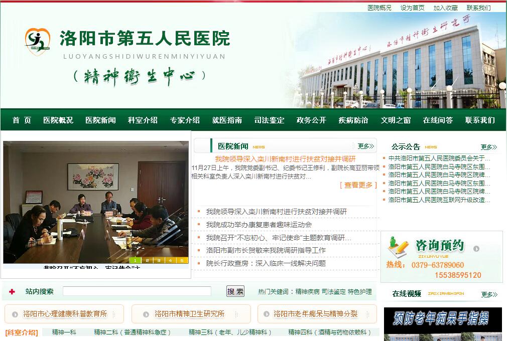 洛陽市第五人民醫(yī)院(洛陽市精神衛(wèi)生中心、河南科技大學第五附屬醫(yī)院)是一所集醫(yī)療、康復、教學、科研、預防為一體的國家三級精神病??漆t(yī)院;是省精神疾病診療網絡分中心,市精神病康復技術指導中心,市心理咨詢中心,市精(智)殘鑒定指定醫(yī)院,市涉案精神病人委托管理機構、市心理危機干預中心;是華中科技大學同濟醫(yī)學院教學醫(yī)院,新鄉(xiāng)醫(yī)學院教學醫(yī)院,中美精神科住院醫(yī)師規(guī)范化培訓基地;是市級醫(yī)保定點醫(yī)院、新農合定點醫(yī)院、城鄉(xiāng)困難群眾補充醫(yī)療救助定點醫(yī)院、鄭鐵職工定點醫(yī)院、醫(yī)院由太康路院區(qū)和白馬寺院區(qū)組成。太康路院區(qū)為原洛陽市第五人民醫(yī)院,成立于1958年,地處洛龍區(qū)太康東路,占地103畝;白馬寺院區(qū)為原洛陽市精神衛(wèi)生中心,成立于1972年,地處洛陽白馬寺西500米,占地73畝。醫(yī)院設有精神科、心理科、老年科、睡眠障礙科、物質依賴病區(qū)、兒童青少年精神病區(qū)、抑郁癥病區(qū),以及內科、外科、婦產科、兒科等。擁有編制床位2000張。擁有1.5T核磁共振、16排螺旋CT、四維彩超、全自動生化分析儀、心理CT、MECT、DEM-2000眼動檢測系統(tǒng)、多參數生物反饋儀、重復經顱磁刺激治療儀等先進醫(yī)療設備。醫(yī)院圍繞打造“全國知名,省內一流”精神??浦放频脑妇?,積極推動“大???、精綜合”建設,以精神科、心理科為拳頭,積極探索對同時患有軀體疾病和精神疾病患者進行身心雙重調節(jié)與治療的新手段,著力發(fā)展重癥精神疾病管理、睡眠障礙、成癮、兒童青少年心理、老年精神疾病防治、精神病學前沿學科和精神司法鑒定等,促進醫(yī)療服務從以治病為中心轉到為以人民健康為中心,進一步落實大衛(wèi)生、大健康理念和預防為主方針,為廣大人民群眾提供全生命周期的醫(yī)療衛(wèi)生服務,在打造中原城市群副中心城市、譜寫濃墨重彩的洛陽新篇章中努力開創(chuàng)精神衛(wèi)生工作新局面。醫(yī)院先后榮獲“全國衛(wèi)生系統(tǒng)思想政治工作先進集體”,“省級文明單位”、“省廉醫(yī)、誠信、為民醫(yī)院”,“省行風建設先進醫(yī)院”,“省醫(yī)療質量萬里行活動先進單位”,“2015-2016年河南省滿意醫(yī)院”等榮譽稱號。