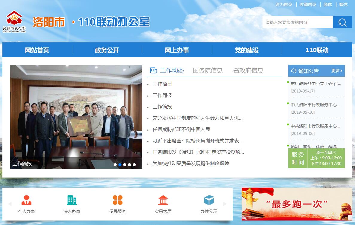洛陽市行政服務(wù)中心(市行政事業(yè)單位效能促進(jìn)局、市110聯(lián)動(dòng)辦公室)成立于2002年6月25日,2007年11月加掛市行政事業(yè)單位效能促進(jìn)局牌子、2011年5月與市110聯(lián)動(dòng)辦公室合署辦公(以下簡稱中心)。中心內(nèi)設(shè)9個(gè)科室,分別為辦公室、業(yè)務(wù)協(xié)調(diào)科、督查科、效能促進(jìn)科、110聯(lián)動(dòng)督辦科、110聯(lián)動(dòng)網(wǎng)民訴求辦理科、110聯(lián)動(dòng)技術(shù)保障科、機(jī)關(guān)黨委、監(jiān)察室。市行政服務(wù)中心(市行政事業(yè)單位效能促進(jìn)局、市110聯(lián)動(dòng)辦公室)主要有五項(xiàng)職能,一是對(duì)窗口工作人員的工作情況進(jìn)行監(jiān)督管理,并負(fù)責(zé)窗口人員的年度考核工作;二是督查、規(guī)范進(jìn)廳項(xiàng)目,確保行政審批項(xiàng)目按要求在中心集中公開辦理;三是對(duì)各縣(市、區(qū))、市直各部門、各相關(guān)行業(yè)的效能工作進(jìn)行監(jiān)察督導(dǎo),負(fù)責(zé)全市行政審批電子監(jiān)察工作;四是負(fù)責(zé)全市110聯(lián)動(dòng)和網(wǎng)民訴求事項(xiàng)的受理、交辦、協(xié)調(diào)、督辦、檢查、回訪、考核、公示等工作;五是負(fù)責(zé)全市行風(fēng)建設(shè),組織協(xié)調(diào)全市有關(guān)部門、行業(yè)參加行風(fēng)熱線節(jié)目,并做好回訪、督辦、考核、公示等相關(guān)工作。目前,共有48個(gè)單位的256項(xiàng)行政審批項(xiàng)目在中心集中公開辦理。110聯(lián)動(dòng)終端單位有109家,實(shí)現(xiàn)了各縣(市、區(qū))全覆蓋。中心始終遵循文明、規(guī)范、廉潔、高效的服務(wù)宗旨,實(shí)行一個(gè)窗口受理、一站式審批、一條龍服務(wù)、一個(gè)窗口收費(fèi)的運(yùn)行模式;制定并推行每周7天工作制、預(yù)約服務(wù)、延時(shí)服務(wù)、上門服務(wù)、并聯(lián)審批等一系列便民、高效的工作制度。110聯(lián)動(dòng)工作整合全市范圍內(nèi)各部門便民電話,建立全市統(tǒng)一的聯(lián)動(dòng)服務(wù)系統(tǒng),實(shí)現(xiàn)全市統(tǒng)一受理和處置群眾及網(wǎng)民訴求事項(xiàng)。辦理模式得到中央領(lǐng)導(dǎo)的充分肯定,先后被多家中央媒體集中報(bào)道,已成為洛陽為民服務(wù)的新品牌、新名片,110聯(lián)動(dòng)惠民生,一枝一葉總關(guān)情的理念逐步深入人心。我們將以全力打造全省最優(yōu),全國一流的服務(wù)平臺(tái)為目標(biāo),進(jìn)一步創(chuàng)新審批方式,優(yōu)化審批服務(wù),不斷加強(qiáng)110聯(lián)動(dòng),提高服務(wù)效率,提升群眾滿意度,為洛陽中原經(jīng)濟(jì)區(qū)副中心城市建設(shè)創(chuàng)造一流環(huán)境。熱忱歡迎社會(huì)各界對(duì)中心的工作進(jìn)行監(jiān)督指導(dǎo)!