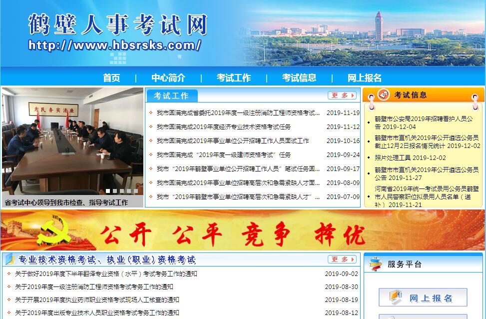 | 網(wǎng)站簡介: 鶴壁市人事考試網(wǎng)由鶴壁市人事考試中心主辦。鶴壁市人事考試中心成立于2000年,隸屬于鶴壁市人力資源和社會保障局參照公務(wù)員法管理的全供事業(yè)單位。其主要職責(zé)是:負(fù)責(zé)承接國家、省和市委市政府安排的各類專業(yè)技術(shù)資格考試、職(執(zhí))業(yè)資格考試、專業(yè)技術(shù)人員職稱外語等級考試、公務(wù)員錄用考試、事業(yè)單位招聘工作人員考試的組織、實施和管理工作;承接其他用人單位委托的臨時性考試。 |