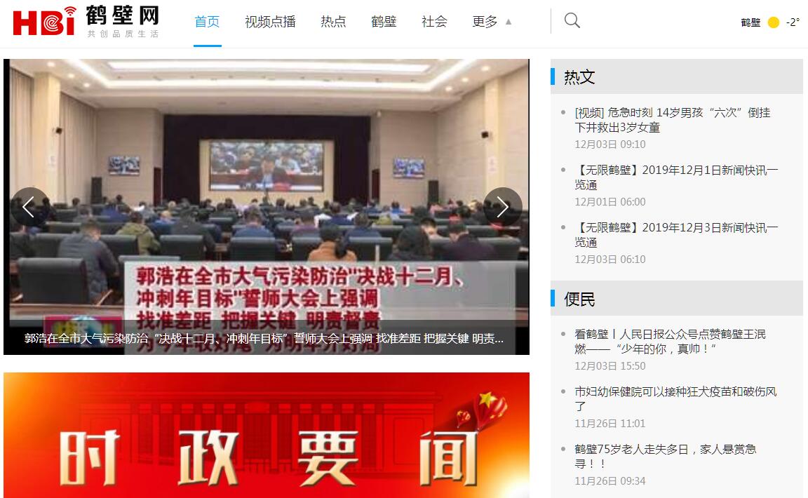 鶴壁網(wǎng)是鶴壁市廣播電視臺(tái)主辦的市重點(diǎn)新聞網(wǎng)站,網(wǎng)站原名鶴視新聞網(wǎng),于2002年5月上線開通,2011年6月經(jīng)河南省新聞辦批復(fù)后更名為鶴壁網(wǎng)(豫新網(wǎng)文[2011]3號(hào)),網(wǎng)站的英文域名:“hebitv.com ”“hebitv.net ”,中文域名:“鶴壁網(wǎng).cn”“鶴壁網(wǎng).com”。2017年12月,為順應(yīng)移動(dòng)互聯(lián)網(wǎng)時(shí)代的發(fā)展潮流,鶴壁網(wǎng)改版升級(jí),著力體現(xiàn)三個(gè)“更加突出”-----更加突出原創(chuàng)內(nèi)容、更加突出移動(dòng)互聯(lián)網(wǎng)體驗(yàn)、更加突出融媒體三屏合一,是集在線直播、資訊信息、便民服務(wù)、生活應(yīng)用為一體的全資訊、綜合性服務(wù)網(wǎng)站。2012年1月入選第三批全省百家網(wǎng)站建設(shè)推進(jìn)工程(豫宣通[2012]7號(hào)),2015年6月獲得河南省網(wǎng)信辦頒發(fā)的《河南省互聯(lián)網(wǎng)新聞信息服務(wù)許可證》,許可證編號(hào):01201512001。
