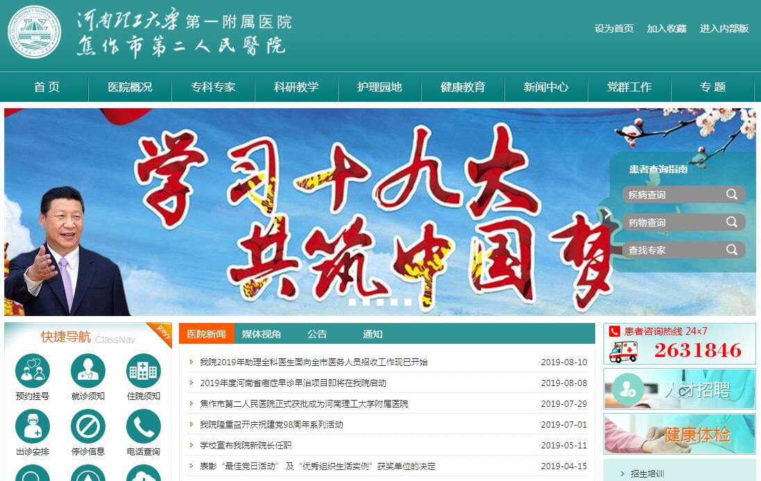 焦作市第二人民醫(yī)院是一所以腫瘤防治為重點,集醫(yī)療、教學、科研、保健、康復于一體的國家綜合性三級甲等醫(yī)院,醫(yī)療質(zhì)量和水平過硬,學科體系完備,人才梯隊完善,軟硬件設備齊全。2013年1月增掛“焦作市腫瘤醫(yī)院”,2014年5月作為河南理工大學附屬醫(yī)院,歸河南理工大學管理。院本部位于焦作市民主南路,占地49畝,開放床位1413張;年門急診量351194人次,年出院31279人次,年手術例數(shù)11040例。在建的焦作市第二人民醫(yī)院示范區(qū)醫(yī)院占地面積240畝,規(guī)劃床位1500張。醫(yī)院共設有61個臨床、醫(yī)技科室,擁有河南省重點培育學科1個,焦作市醫(yī)學重點學科17個,市級研究所和專業(yè)委員會18個,市級醫(yī)學中心10個?,F(xiàn)有職工1488人,其中博士碩士143人,高級職稱179人,焦作市醫(yī)學會專業(yè)委員會主委、副主委47人,先后發(fā)表學術論文3532篇。醫(yī)院秉承“服務患者、服務職工、服務社會”的核心理念,堅持“健康所系,性命相依”的宗旨,始終服務在人民群眾生命健康的前線。近年來,醫(yī)院著重打造學習型組織,加強精細化管理,提升內(nèi)涵質(zhì)量,所開展的信息化建設、目標管理、績效改革和預算管理均走在焦作市衛(wèi)生行業(yè)的前列。先后榮獲省、市級科技成果獎100余項,榮獲“全國百姓放心示范醫(yī)院”、“全國改善服務創(chuàng)新醫(yī)院”、“全國優(yōu)質(zhì)高效百強醫(yī)院”、“全國最具公信力醫(yī)療機構”、“省衛(wèi)生系統(tǒng)先進集體”、“全省衛(wèi)生信息化建設工作先進單位”等諸多榮譽,連續(xù)三屆蟬聯(lián)“省級文明”單位。醫(yī)院將緊緊圍繞“以患者為中心”的核心價值觀,全心全意服務人民健康,不斷提升醫(yī)療、教學、科研、管理、服務水平,不斷強化核心競爭力和創(chuàng)新力,把群眾滿意作為辦好醫(yī)院的首要任務,為廣大患者提供優(yōu)質(zhì)、安全、高效的醫(yī)療服務,彰顯社會擔當,鑄造品牌形象,續(xù)寫二院改革發(fā)展嶄新篇章。50年來,二院人以執(zhí)著的醫(yī)志、高尚的醫(yī)德、精湛的醫(yī)術和嚴謹?shù)膶W風書寫了輝煌的歷史。