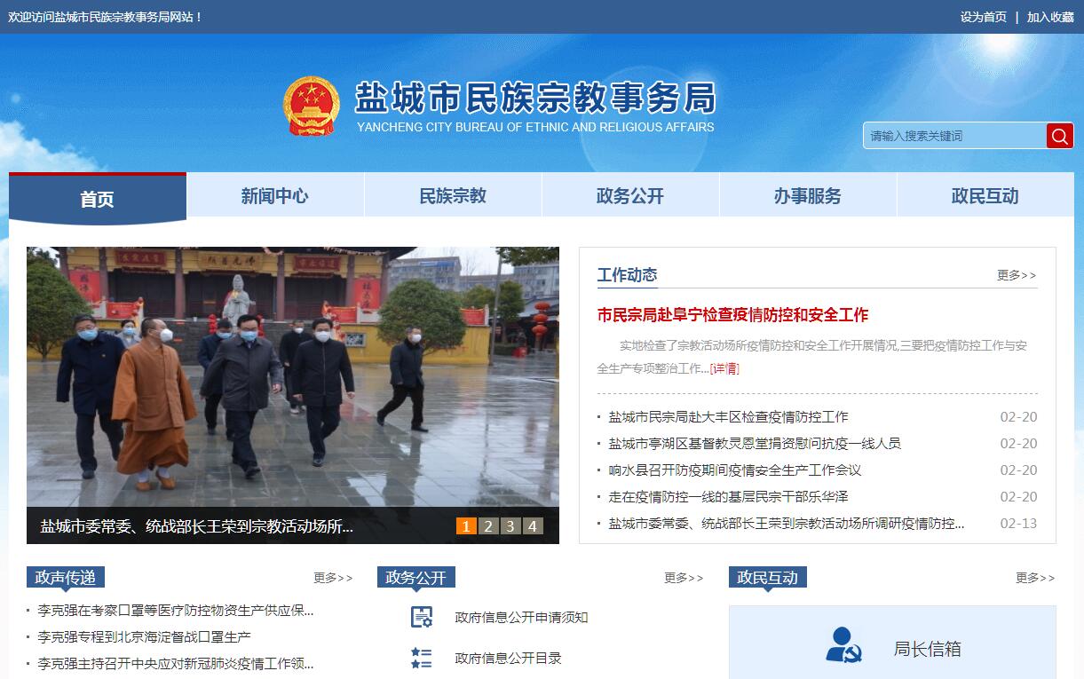 鹽城市民族宗教事務局主要職責:(一)貫徹執(zhí)行黨中央、國務院關(guān)于民族宗教工作的方針、政策和有關(guān)法律法規(guī)及規(guī)章制度,組織開展民族宗教理論、政策和工作重大問題的調(diào)查研究,提出有關(guān)政策建議。(二)擬訂我市民族宗教工作方面的政策規(guī)定和相關(guān)文件,并組織實施。承擔民族宗教事務行政審批、行政復議和行政訴訟工作。組織協(xié)調(diào)網(wǎng)絡宗教事務管理,規(guī)范網(wǎng)絡宗教信息服務。協(xié)調(diào)推動有關(guān)部門履行民族宗教工作相關(guān)職責。(三)貫徹落實中央、省、市少數(shù)民族事業(yè)等專項規(guī)劃,監(jiān)督檢查規(guī)劃實施情況,推進實施民族宗教事務服務體系和民族宗教事務管理信息化服務。(四)會同有關(guān)部門監(jiān)督少數(shù)民族專項資金使用,參與少數(shù)民族扶貧工作。協(xié)助有關(guān)部門發(fā)展少數(shù)民族聚居地經(jīng)濟、社會事業(yè)。(五)協(xié)助有關(guān)部門加強對生產(chǎn)銷售清真食品的扶持和管理,落實少數(shù)民族特需商品的生產(chǎn)和供應工作,參與邊疆民族地區(qū)的經(jīng)濟技術(shù)合作、對口支援工作。(六)依法保護全市少數(shù)民族公民的合法權(quán)益;組織和承辦民族團結(jié)進步表彰活動;協(xié)助有關(guān)部門培養(yǎng)選拔少數(shù)民族干部; (七)依法保護公民宗教信仰自由。(八)指導宗教團體依法依章開展活動,引導各宗教堅持中國化方向,支持宗教團體加強自身建設,推動宗教團體在宗教界開展愛國主義、社會主義、擁護祖國統(tǒng)一和民族團結(jié)的自我教育,辦理宗教團體需由政府解決和協(xié)調(diào)的有關(guān)事務。(九)依法履行宗教事務管理職責,依法處理民族宗教事務的重大事項。防范利用宗教進行的非法、違法活動,抵御境外利用宗教進行的滲透活動。(十)負責宗教方面的對外交流歸口管理工作,組織指導全市對外以及對港澳臺的宗教交往活動。(十一)指導縣(市、區(qū))相關(guān)民族宗教工作。(十二)完成上級民族宗教部門委托(授權(quán))和市委市政府、市委統(tǒng)戰(zhàn)部交辦的其他任務。