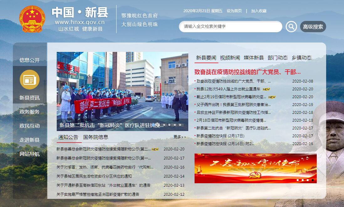 新縣伴隨中國新民主主義革命進(jìn)程而誕生,素有“紅色首府、將軍故里、詩畫江南”之美譽(yù)。新縣位于河南省信陽市東南部,被稱為“中原南門”。新縣位于河南省信陽市東南部、大別山腹地、鄂豫兩省交接地帶。地理坐標(biāo)東經(jīng)114°33′~115°12′,北緯31°28′~31°46′。東與商城縣接壤,南與湖北省麻城市、紅安縣毗鄰,西與羅山縣及湖北省大悟縣交界,北與光山縣相連。東西長61.6公里,南北寬40.7公里,全縣總面積1612平方公里(241.8萬畝)。新縣是中原通向江南的要沖,大別山雄踞其間,扼守中原南大門,俯瞰荊楚大地,自古為戰(zhàn)略要地。歷史上大別山區(qū)有13個著名關(guān)隘,新縣境內(nèi)就有墨斗、白沙、東黃土、木陵4個,另有虎頭、陰山、土門、修善4個重要關(guān)隘。省道寨(河)檀(樹崗)公路、南信(陽)葉(集)公路在境內(nèi)交會,國道106線、大(慶)廣(州)高速公路、京九鐵路穿境而過??h城北距省城鄭州市440公里、信陽市116公里,南距武漢170公里,東距合肥301公里。新縣是個古老而又年輕的縣份,劉伯承、鄧小平親自改縣名。新縣很早就有先民居住,境內(nèi)有南墩龍山文化遺址、天亮寺新石器遺址、艾洼商周文化遺址、大廟沖商周文化遺址。西周至春秋時期屬弦國,后屬黃國;戰(zhàn)國時屬秦弦地,后屬楚國;秦統(tǒng)一全國后,北部屬九江郡,南部屬南郡、衡山郡;兩漢時期,屬江夏郡;三國時為魏國邊關(guān),北部屬魏弋陽郡,南部先屬魏弋陽郡、后屬吳蘄春郡;晉代時,北部屬豫州弋陽郡,南部屬弋陽郡、西陽郡;南北朝時,北部屬豫州弋陽郡、廣陵郡等,南部屬豫州西陽郡、衡州等;隋唐時,北部為光州光山縣、仙居縣,南部屬黃州麻城縣、亭州麻城縣;宋代時,北部屬光州軍光山縣,南部屬黃州麻城縣;元朝時,北部屬汝寧府光山縣,南部屬黃州路麻城縣;明朝時,北部屬河南布政司汝寧府光山縣,南部屬湖廣布政司黃州府麻城縣,西南部屬黃州府黃安縣;清代時,北部屬河南布政司汝寧府光山縣,南部屬湖北布政司黃州府麻城縣,西南部屬黃州府黃安縣;民國初期,北部為河南省光山縣,南部屬湖北省武漢黃德道,后改為鄂東道、江漢道。1933年10月,國民黨政府為加強(qiáng)對鄂豫皖邊區(qū)的統(tǒng)治,析光山、黃安、麻城各一部,以國民黨河南省政府主席劉峙的字“經(jīng)扶”為縣名,以新集鎮(zhèn)為治所,設(shè)置經(jīng)扶縣,隸屬潢川專區(qū),后屬河南省第九行政督察區(qū)。1947年8月28日,劉鄧大軍六縱一部攻克新集后,設(shè)置經(jīng)扶縣愛國民主政府。12月,根據(jù)劉伯承、鄧小平提議,改“經(jīng)扶縣”為“新縣”,意即人民獲得新生,過上幸福生活。1949年10月,中華人民共和國成立后,屬河南省潢川專區(qū)。1952年12月,屬河南省信陽專區(qū)。1998年7月,撤銷信陽地區(qū),設(shè)置地級信陽市,新縣隨屬信陽市。2014年,全縣轄5個鎮(zhèn)、10個鄉(xiāng),1個管理區(qū),1個街道辦(正在籌建):新集鎮(zhèn)、沙窩鎮(zhèn)、吳陳河鎮(zhèn)、蘇河鎮(zhèn)、八里畈鎮(zhèn)、滸灣鄉(xiāng)、周河鄉(xiāng)、陡山河鄉(xiāng)、千斤鄉(xiāng)、卡房鄉(xiāng)、郭家河鄉(xiāng)、陳店鄉(xiāng)、箭廠河鄉(xiāng)、泗店鄉(xiāng)、田鋪鄉(xiāng),香山湖管理區(qū),金蘭山街道辦,縣人民政府駐新集鎮(zhèn)朝陽路169號。新縣是個以林業(yè)為主的山區(qū)縣,被形容為“七山一水一分田,一分道路和莊園”。新縣的大地構(gòu)造單元屬大別山系淮陽地盾的組成部分,古生代始逐漸由海洋隆起,褶皺成山系。縣境輪廓近似長方形,大別山主脈經(jīng)境內(nèi)中間橫貫東西,形似屋脊?fàn)睿贡持杏钟袞|、中、西三個高峰區(qū),構(gòu)成W形地勢。由大別山主脈形成江淮分水嶺,嶺南屬長江流域,嶺北屬淮河流域。境內(nèi)山巒起伏連綿,峰高谷深,溪河交叉。平均海拔350米。最高點(diǎn)是縣南部的黃毛尖,海拔1011米;最低處是潢河出境處,海拔60米;相對高差為951米。有6大水系,大、小河流92條,其中源于境內(nèi)的較大河流有潢河、白露河、寨河、竹竿河、倒水河和舉水河。全縣5公里以上河流總長度684公里,河網(wǎng)密度為每平方公里0.6公里。以海拔高度和相對高差劃分,屬深山區(qū)的面積為155.15萬畝,占山地總面積的66.2%;淺山區(qū)的面積79.2萬畝,占33.8%。相對高差在500米以上的鄉(xiāng)鎮(zhèn)有14個,500米以下的有3個。新縣農(nóng)業(yè)以林業(yè)為主。耕地面積19.8萬畝,占全縣總面積的8.2%;山場面積188萬畝,占77.8%;水域面積6.73萬畝,占2.78%。林業(yè)用地162萬畝,占67%,人均5.86畝。全縣有林地159萬畝,占林業(yè)用地的98%,其中用材林79萬畝,經(jīng)濟(jì)林45萬畝,薪炭林11萬畝,防護(hù)林21萬畝,活立木蓄積量181萬立方米。全縣有國營林場22個,村組辦林場700多個,戶或聯(lián)戶辦林場1000多個。新縣生態(tài)環(huán)境優(yōu)美,被譽(yù)為“北國的江南,江南的北國”。新縣地處北亞熱帶向暖溫帶過渡地帶,屬大陸性濕潤季風(fēng)氣候,四季分明,雨量充沛,光照充足。年平均降水量1313.8毫米,日照時數(shù)1742.3小時,相對濕度77%,無霜期243.7天。年平均地表徑流量9.73億立方米,地下水儲量3.6億立方米。新縣橫跨南北植物過渡帶,動植物資源豐富,匯集眾多珍稀物種。有植物2389種,其中有國家級珍稀、瀕危保護(hù)植物24種,國家重點(diǎn)保護(hù)植物23種,河南省重點(diǎn)保護(hù)植物22種。有