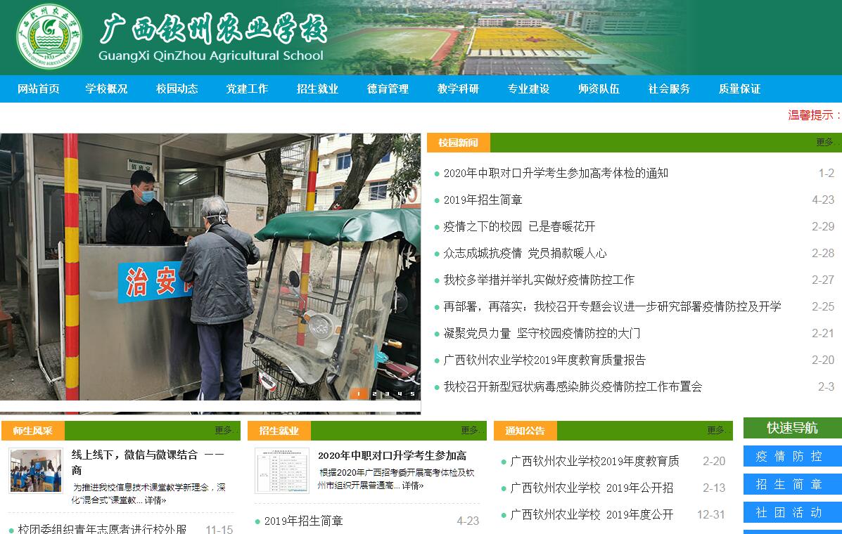 廣西欽州農(nóng)業(yè)學(xué)校創(chuàng)建于1933年10月,是廣西最具悠久歷史的一所普通中等職業(yè)學(xué)校。建校以來,為國家培養(yǎng)輸送各類技術(shù)人才3萬多人,為振興經(jīng)濟(jì)和推動(dòng)社會(huì)發(fā)展作出積極貢獻(xiàn)。廣西欽州農(nóng)業(yè)學(xué)校辦學(xué)條件完善、實(shí)力雄厚。學(xué)校占地面積25公頃,建筑面積6萬多平方米。擁有功能齊全、配套合理的教學(xué)、科研、實(shí)驗(yàn)實(shí)訓(xùn)、生活用房和現(xiàn)代化的教學(xué)實(shí)驗(yàn)設(shè)備;擁有一支水平高、素質(zhì)好的師資隊(duì)伍,其中具有高級(jí)技術(shù)職務(wù)者25人,中級(jí)技術(shù)職務(wù)者86人;擁有農(nóng)業(yè)技術(shù)服務(wù)公司、副食品生產(chǎn)基地、實(shí)習(xí)農(nóng)牧場(chǎng)、花卉苗木場(chǎng)、現(xiàn)代農(nóng)業(yè)實(shí)驗(yàn)示范園等校辦產(chǎn)業(yè)、教學(xué)生產(chǎn)實(shí)踐基地。實(shí)現(xiàn)了教學(xué)過程現(xiàn)代化、技能實(shí)踐基地化、師資結(jié)構(gòu)合理化、生產(chǎn)基地產(chǎn)業(yè)化、學(xué)生住宿公寓化。2003年被確定為第一批自治區(qū)級(jí)重點(diǎn)中等職業(yè)學(xué)校,2005年2月被教育部確定為國家級(jí)重點(diǎn)中等職業(yè)學(xué)校,2005年10月、2009年10月、2012年1月,先后三次被中央文明委授予“全國文明單位”稱號(hào)。廣西欽州農(nóng)業(yè)學(xué)校始終堅(jiān)持社會(huì)主義辦學(xué)方向,堅(jiān)持教育教學(xué)改革,堅(jiān)持為“三農(nóng)”服務(wù)。充分發(fā)揮學(xué)校特有的社會(huì)功能,根據(jù)經(jīng)濟(jì)社會(huì)發(fā)展的要求拓展辦學(xué)領(lǐng)域,在發(fā)展職業(yè)教育方面積極探索,大膽實(shí)踐,為社會(huì)培養(yǎng)高素質(zhì)的勞動(dòng)者和專業(yè)技術(shù)人才。形成了集農(nóng)、工、商、管理、服務(wù)相結(jié)合多學(xué)科的中等職業(yè)學(xué)校。學(xué)?,F(xiàn)開設(shè)專業(yè)25個(gè),在校學(xué)生3600多人,成為廣西沿海別具特色、富有競(jìng)爭力的一所中等職業(yè)學(xué)校。廣西欽州農(nóng)業(yè)學(xué)校貫徹和落實(shí)科學(xué)發(fā)展觀。堅(jiān)持“德育為首、全面發(fā)展”方針,堅(jiān)持物質(zhì)文明、精神文明、政治文明一起抓,全面推進(jìn)學(xué)校發(fā)展,永葆學(xué)校發(fā)展的強(qiáng)勁動(dòng)力。自1991年被國家有關(guān)部委授予“全國職業(yè)技術(shù)教育先進(jìn)單位”、“全國科教興農(nóng)先進(jìn)學(xué)校”以來,不驕不躁,奮力進(jìn)取。1998年12月,被自治區(qū)黨委、自治區(qū)人民政府授予“文明單位”稱號(hào),近年來更是成績斐然,先后被評(píng)為“全區(qū)科普工作先進(jìn)集體”、“自治區(qū)級(jí)交通安全先進(jìn)單位”、“廣西綠色學(xué)?!?、“廣西職業(yè)教育先進(jìn)單位”等稱號(hào)。有4名教師先后被評(píng)為“全國教育系統(tǒng)勞動(dòng)模范”、“全國中等農(nóng)業(yè)學(xué)校優(yōu)秀教師”、“自治區(qū)優(yōu)秀黨員”、“自治區(qū)優(yōu)秀教師”稱號(hào),一名學(xué)生被國家民政部授予“革命烈士”稱號(hào)。