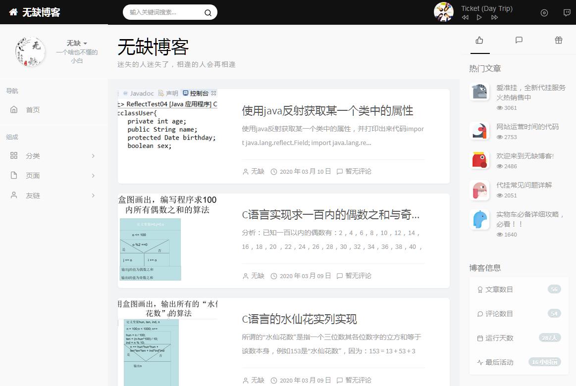 | 網(wǎng)站簡介: 無缺博客(wuquejs.cn)是無缺分享個人日常生活,編程技術(shù),信息資源的個人博客平臺。 |