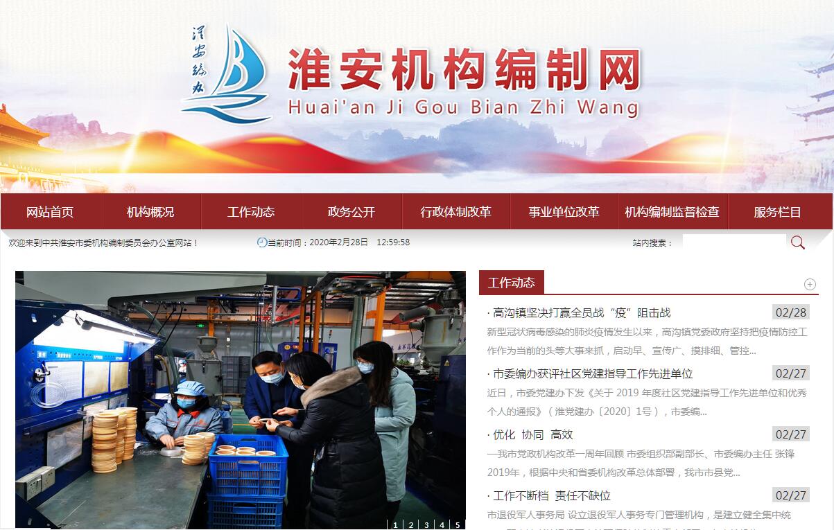 淮安機構(gòu)編制網(wǎng)由中共淮安市委機構(gòu)編制委員會辦公室主辦。中共淮安市委機構(gòu)編制委員會辦公室主要職能:(一)貫徹執(zhí)行黨和國家以及省委、省政府有關(guān)行政管理體制、機構(gòu)改革和機構(gòu)編制管理的政策法規(guī);研究擬訂全市行政管理體制、機構(gòu)改革和機構(gòu)編制管理的政策規(guī)定及實施細則。(二)研究擬訂全市行政管理體制和機構(gòu)改革總體方案并組織實施,指導(dǎo)、協(xié)調(diào)全市各級行政管理體制、機構(gòu)改革和機構(gòu)編制管理工作。(三)開展全市行政管理體制、機構(gòu)改革和機構(gòu)編制管理的調(diào)查及理論研究,提出相關(guān)政策建議和措施。(四)統(tǒng)一管理全市各級黨政機關(guān)、人大機關(guān)、政協(xié)機關(guān)、法院機關(guān)、檢察院機關(guān)、民主黨派機關(guān)、人民團體機關(guān)的機構(gòu)編制工作。(五)根據(jù)市委、市政府要求,協(xié)調(diào)市委各部門之間、市政府各部門之間、市委各部門與市政府各部門之間,以及市級各部門與縣(區(qū))之間的職責(zé)分工和調(diào)整。(六)審核市級機關(guān)各部門的職責(zé)配置、機構(gòu)設(shè)置、人員編制和領(lǐng)導(dǎo)職數(shù),并按規(guī)定程序辦理相關(guān)調(diào)整事宜。(七)按機構(gòu)編制審批權(quán)限,負責(zé)審核報批全市副處級及以上行政機構(gòu)的設(shè)置與調(diào)整;審核全市各級行政編制總額和審核報批全市行政編制跨層級調(diào)整方案;審核縣(區(qū))、鄉(xiāng)鎮(zhèn)(街道)機構(gòu)改革方案和副科級以上行政機構(gòu)的設(shè)置與調(diào)整。(八)研究擬訂全市事業(yè)單位管理體制和機構(gòu)改革總體方案及有關(guān)配套政策措施并組織實施;負責(zé)對市屬及各部門事業(yè)單位的職責(zé)配置、機構(gòu)設(shè)置、人員編制、領(lǐng)導(dǎo)職數(shù)及經(jīng)費來源等事項進行調(diào)整;按機構(gòu)編制審批權(quán)限,審核報批全市副處級及以上事業(yè)機構(gòu)的設(shè)置與調(diào)整;負責(zé)審核縣(區(qū))副科級以上事業(yè)機構(gòu)的設(shè)置與調(diào)整,指導(dǎo)、協(xié)調(diào)縣(區(qū))事業(yè)單位改革和機構(gòu)編制管理工作。(九)監(jiān)督檢查全市各級行政管理體制、機構(gòu)改革和機構(gòu)編制執(zhí)行情況,開展機構(gòu)編制管理考核評估和責(zé)任追究;參與對黨政領(lǐng)導(dǎo)干部“三責(zé)聯(lián)審”工作,負責(zé)機構(gòu)編制責(zé)任審核工作;負責(zé)12310投訴舉報電話的日常管理,根據(jù)機構(gòu)編制管理有關(guān)規(guī)定,按管理權(quán)限查處機構(gòu)編制違規(guī)違紀案件。(十)負責(zé)全市機關(guān)、事業(yè)單位機構(gòu)編制實名制管理工作,建立健全機構(gòu)編制與組織、人力資源、財政預(yù)算管理的配合制約機制。(十一)負責(zé)市級事業(yè)單位登記管理工作;負責(zé)管理市級事業(yè)單位統(tǒng)一代碼標識工作;指導(dǎo)縣(區(qū))事業(yè)單位登記管理工作。(十二)承辦市委、市政府和市機構(gòu)編制委員會交辦的其他事項。