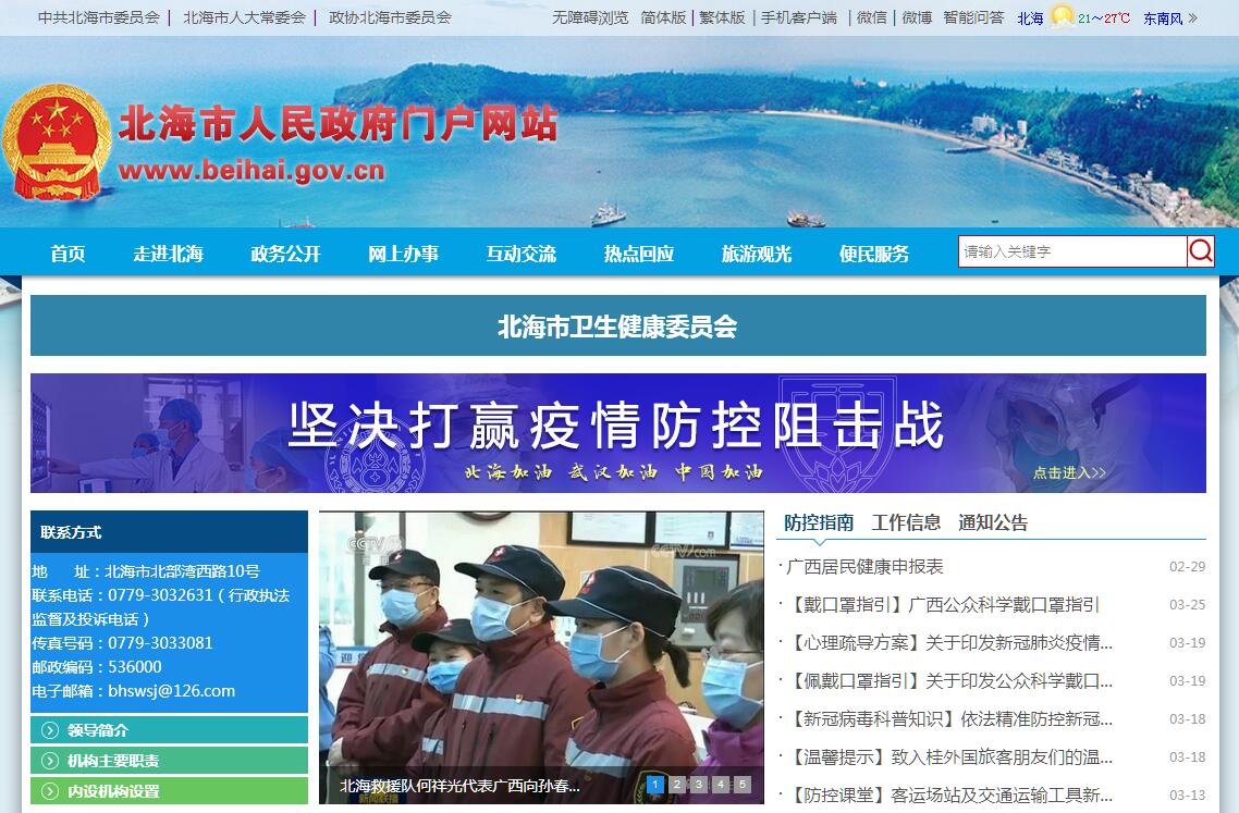 北海市衛(wèi)生健康委員會主要職責:(一)負責起草衛(wèi)生健康事業(yè)發(fā)展地方性規(guī)章草案,擬訂全市全民衛(wèi)生健康規(guī)劃、計劃,制定衛(wèi)生健康地方標準并組織實施。統(tǒng)籌規(guī)劃全市衛(wèi)生健康資源配置,指導區(qū)域衛(wèi)生健康規(guī)劃的編制和實施。制定并組織實施推進衛(wèi)生健康基本公共服務均等化、普惠化、便捷化和公共資源向基層延伸等政策措施。(二)協(xié)調(diào)推進深化醫(yī)藥衛(wèi)生體制改革,研究提出深化醫(yī)藥衛(wèi)生體制改革政策、措施的建議。組織深化公立醫(yī)院綜合改革,推進管辦分離,健全現(xiàn)代醫(yī)院管理制度,制定并組織實施推動衛(wèi)生健康公共服務提供主體多元化、提供方式多樣化的措施,提出醫(yī)療服務和藥品價格政策的建議。(三)制定并組織落實疾病預防控制規(guī)劃、免疫規(guī)劃以及嚴重危害人民健康公共衛(wèi)生問題的干預措施。負責衛(wèi)生應急工作,組織指導突發(fā)公共衛(wèi)生事件的預防控制和各類突發(fā)公共事件的醫(yī)療衛(wèi)生救援。(四)組織擬訂并協(xié)調(diào)落實應對人口老齡化對策措施,負責推進老年健康服務體系建設和醫(yī)養(yǎng)結合工作。(五)貫徹落實國家藥物政策和國家基本藥物制度,開展藥品使用監(jiān)測、臨床綜合評價和短缺藥品預警,提出基本藥物價格政策的建議。組織開展食品安全風險監(jiān)測評估,組織實施食品安全地方標準。(六)負責職責范圍內(nèi)的職業(yè)衛(wèi)生、放射衛(wèi)生、環(huán)境衛(wèi)生、學校衛(wèi)生、公共場所衛(wèi)生、飲用水衛(wèi)生等公共衛(wèi)生的監(jiān)督管理,負責傳染病防治監(jiān)督,健全衛(wèi)生健康綜合監(jiān)督體系。依法負責職業(yè)衛(wèi)生和放射衛(wèi)生安全監(jiān)督管理工作。(七)制定醫(yī)療機構、醫(yī)療服務行業(yè)管理辦法并監(jiān)督實施,建立醫(yī)療服務評價和監(jiān)督管理體系。會同有關部門組織實施衛(wèi)生健康專業(yè)技術人員資格準入。制定并組織實施醫(yī)療服務規(guī)范、標準和衛(wèi)生健康專業(yè)技術人員執(zhí)業(yè)規(guī)則、服務規(guī)范。(八)負責計劃生育管理和服務工作,開展人口監(jiān)測預警, 研究提出人口與家庭發(fā)展相關政策建議,組織實施計劃生育政策。(九)指導縣(區(qū))衛(wèi)生健康工作,指導基層醫(yī)療衛(wèi)生、婦 幼健康服務體系和全科醫(yī)生隊伍建設。推進衛(wèi)生健康科技創(chuàng)新發(fā) 展。組織開展衛(wèi)生健康領域對外交流合作與援外工作。 (十)負責市保健對象的醫(yī)療保健工作,負責市重要會議與 重大活動的醫(yī)療衛(wèi)生保障工作。(十一)協(xié)調(diào)有關部門對全市艾滋病實施防控和干預,控制艾滋病的發(fā)生和蔓延。(十二)負責中醫(yī)藥管理工作,負責擬訂中醫(yī)藥發(fā)展規(guī)劃和計劃,承擔中醫(yī)醫(yī)療、預防、保健、康復及臨床用藥等的監(jiān)督管理責任。監(jiān)督中醫(yī)醫(yī)療、保健等機構管理規(guī)范和技術標準的執(zhí)行,指導和協(xié)調(diào)中醫(yī)醫(yī)療、科研機構的結構布局及其運行機制改革。(十三)指導市計劃生育協(xié)會的業(yè)務工作。(十四)承擔市愛國衛(wèi)生運動委員會、市防治艾滋病工作委員會、市干部醫(yī)療保健委員會、市老齡工作委員會的日常工作。(十五)完成市委、市人民政府交辦的其他任務。