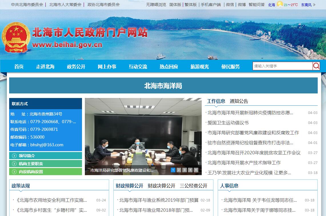 北海市海洋局貫徹落實(shí)黨中央、自治區(qū)黨委和市委關(guān)于海洋工作的方針政策和決策部署,在履行職責(zé)過(guò)程中堅(jiān)持和加強(qiáng)黨對(duì)海洋工作的集中統(tǒng)一領(lǐng)導(dǎo)。其主要職責(zé)是:(一)負(fù)責(zé)監(jiān)督實(shí)施海洋戰(zhàn)略規(guī)劃,推動(dòng)海洋經(jīng)濟(jì)發(fā)展。會(huì)同有關(guān)部門擬訂全市海洋經(jīng)濟(jì)發(fā)展、海洋事業(yè)發(fā)展、海岸帶綜合保護(hù)利用等規(guī)劃和計(jì)劃并組織實(shí)施。參與擬訂海洋主體功能區(qū)規(guī)劃并組織實(shí)施。負(fù)責(zé)對(duì)海洋事務(wù)的綜合協(xié)調(diào)管理,協(xié)調(diào)各涉海部門、行業(yè)的海洋開(kāi)發(fā)活動(dòng)。(二)推動(dòng)海洋綜合管理領(lǐng)域科技發(fā)展。制訂并實(shí)施海洋綜合管理領(lǐng)域科技創(chuàng)新發(fā)展和人才培養(yǎng)規(guī)劃和計(jì)劃。配合有關(guān)部門制訂涉海技術(shù)標(biāo)準(zhǔn)、規(guī)程規(guī)范并監(jiān)督實(shí)施。組織實(shí)施科技工程及創(chuàng)新能力建設(shè),參與海洋綜合管理信息化和信息資料的公共服務(wù)。開(kāi)展海洋綜合管理對(duì)外交流合作。參與處理涉外海洋事務(wù)。(三)負(fù)責(zé)起草市海洋管理工作的規(guī)范性文件草案。監(jiān)督查處海洋違法案件。(四)承擔(dān)海洋經(jīng)濟(jì)運(yùn)行監(jiān)測(cè)、評(píng)估及信息發(fā)布的職責(zé)。組織實(shí)施全市海洋經(jīng)濟(jì)和社會(huì)發(fā)展的統(tǒng)計(jì)、核算工作。會(huì)同有關(guān)部門提出優(yōu)化全市海洋經(jīng)濟(jì)結(jié)構(gòu)、調(diào)整產(chǎn)業(yè)布局的建議。(五)負(fù)責(zé)海域使用和海島保護(hù)利用管理,優(yōu)化海域海島開(kāi)發(fā)利用秩序。負(fù)責(zé)實(shí)施用海用島相關(guān)制度、海域和無(wú)居民海島有償使用制度。負(fù)責(zé)監(jiān)督管理海域和無(wú)居民海島使用。協(xié)助開(kāi)展海域勘界工作。負(fù)責(zé)實(shí)施全市海域海島使用論證、評(píng)估和動(dòng)態(tài)監(jiān)視監(jiān)測(cè)工作。(六)參與實(shí)施海洋生態(tài)、海域海岸帶、海島修復(fù)政策、制度、規(guī)劃、標(biāo)準(zhǔn)和海洋生態(tài)紅線制度、海洋生態(tài)修復(fù)有關(guān)重大工程。指導(dǎo)縣(區(qū))海洋生態(tài)修復(fù)工作。(七)負(fù)責(zé)海洋觀測(cè)預(yù)報(bào)、生態(tài)預(yù)警監(jiān)測(cè)和防災(zāi)減災(zāi)體系建設(shè),擬訂海洋觀測(cè)預(yù)報(bào)政策和制度并監(jiān)督實(shí)施。組織開(kāi)展海洋災(zāi)害預(yù)警報(bào)和海洋自然災(zāi)害影響評(píng)估。參與重大海洋災(zāi)害應(yīng)急處置。擬訂海域、海岸帶和海島用途管制的制度規(guī)范。(八)負(fù)責(zé)依法維護(hù)國(guó)家海洋權(quán)益,會(huì)同有關(guān)部門組織研究維護(hù)海洋權(quán)益的政策的措施并組織實(shí)施,協(xié)助在管轄海域?qū)嵤┒ㄆ诰S權(quán)巡航執(zhí)法制度。(九)完成市委、市人民政府交辦的其他任務(wù)。