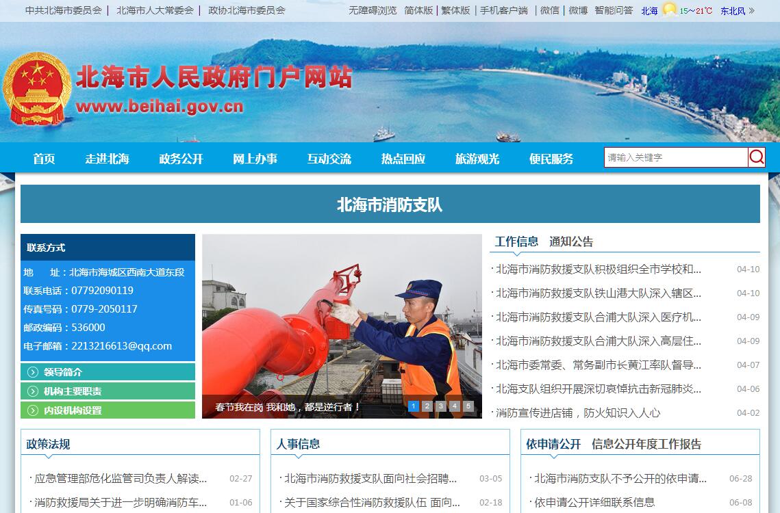 北海市消防支隊(duì)主要職責(zé):(一)對(duì)有關(guān)單位和公民遵守執(zhí)行消防法律、法規(guī)、規(guī)章、技術(shù)規(guī)范和標(biāo)準(zhǔn)的情況進(jìn)行監(jiān)督檢查;(二)參與編制城市消防規(guī)劃,按照規(guī)劃確定的方案監(jiān)督公共消防設(shè)施的建設(shè)、改善和維護(hù);(三)開展消防宣傳教育;(四)監(jiān)督易燃易爆危險(xiǎn)物品的生產(chǎn)、儲(chǔ)存、運(yùn)輸、銷售、使用和銷毀;(五)監(jiān)督火災(zāi)隱患的整改;(六)監(jiān)督消防產(chǎn)品的質(zhì)量;(七)指導(dǎo)專職消防隊(duì)和義務(wù)消防隊(duì)的建設(shè)和訓(xùn)練;(八)承擔(dān)重大災(zāi)害事故和其他以搶救人員生命為主的應(yīng)急救援工作;(九)調(diào)查、認(rèn)定火災(zāi)原因,統(tǒng)計(jì)火災(zāi)損失,處理火災(zāi)事故和消防違法行為;(十)法律、法規(guī)和規(guī)章規(guī)定的其他職責(zé)。