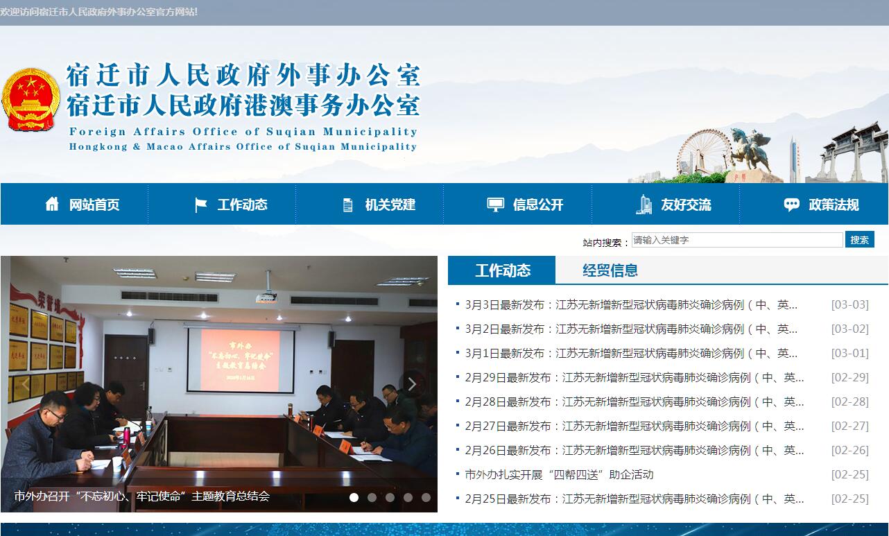 宿遷市人民政府外事辦公室主要職責(zé):(一)貫徹執(zhí)行我國對(duì)外和僑務(wù)工作的方針政策和法律法規(guī),落實(shí)市委、市政府關(guān)于外事、僑務(wù)工作的指示和決定;依照授權(quán),統(tǒng)籌協(xié)調(diào)和歸口管理我市與香港、澳門特別行政區(qū)往來工作;負(fù)責(zé)市委外事工作領(lǐng)導(dǎo)小組日常工作;研究擬訂全市外事僑務(wù)工作制度和規(guī)劃;協(xié)調(diào)我市重大外事僑務(wù)工作和涉外涉僑活動(dòng);負(fù)責(zé)或會(huì)同有關(guān)部門處理本地區(qū)重大涉外僑事(案)件;負(fù)責(zé)管理本市外事服務(wù)工作。(二)圍繞我市經(jīng)濟(jì)建設(shè)、社會(huì)發(fā)展和對(duì)外開放的總體要求進(jìn)行調(diào)查研究,為市委、市政府的對(duì)外工作決策提供意見和建議;利用外事僑務(wù)工作渠道,積極牽線搭橋,引資引智,為全市經(jīng)濟(jì)建設(shè)和社會(huì)發(fā)展服務(wù)。(三)負(fù)責(zé)制定市級(jí)團(tuán)組年度出訪計(jì)劃,審核各縣區(qū)、各部門年度出訪計(jì)劃;承辦市委、市人大、市政府、市政協(xié)領(lǐng)導(dǎo)人出訪的具體報(bào)批事宜和護(hù)照簽證辦理工作;在授權(quán)范圍內(nèi),審核全市相關(guān)人員因公出國(境)事項(xiàng),承辦我市因公出國(境)人員的護(hù)照、簽證、通行證申辦業(yè)務(wù)。會(huì)同有關(guān)部門落實(shí)外事紀(jì)律及保密制度。(四)指導(dǎo)和檢查監(jiān)督各部門、各單位因公出國任務(wù)報(bào)批和管理工作等涉外事務(wù),了解、檢查我市因公出國團(tuán)組和人員在國外活動(dòng)情況;定期綜合我市因公出國和邀請(qǐng)外國人來訪的情況,并向市委、市政府和省外辦提出書面匯報(bào)。(五)負(fù)責(zé)組織或配合接待來本市訪問的國賓、黨賓及其他重要外賓,統(tǒng)籌安排市委、市人大、市政府、市政協(xié)領(lǐng)導(dǎo)人的外事活動(dòng),指導(dǎo)本市各部門、各單位的禮賓接待工作。(六)負(fù)責(zé)我市與外國有關(guān)領(lǐng)事機(jī)構(gòu)、國際組織的業(yè)務(wù)聯(lián)系和交涉工作;協(xié)調(diào)境外非政府組織的有關(guān)事宜;接待和協(xié)調(diào)來本市進(jìn)行采訪活動(dòng)的外國記者,指導(dǎo)本市有關(guān)部門或單位做好外國記者采訪活動(dòng)的安排和接待工作;負(fù)責(zé)協(xié)調(diào)舉辦國際會(huì)議的申報(bào)工作。(七)按規(guī)定審核邀請(qǐng)與我國建交國家或港澳地區(qū)的非官方人員自費(fèi)來本市進(jìn)行友好交流等非經(jīng)貿(mào)活動(dòng)的事項(xiàng);審核邀請(qǐng)公費(fèi)接待外國官方人士或來自非建交國家的外國人來本市進(jìn)行非經(jīng)貿(mào)活動(dòng)的事項(xiàng);按規(guī)定辦理同意邀請(qǐng)外國人來華簽證函電的具體業(yè)務(wù)。(八)管理本市與外國開展友好城市以及其他結(jié)好單位的交往活動(dòng),辦理結(jié)好報(bào)批手續(xù);指導(dǎo)本市民間對(duì)外交往工作,負(fù)責(zé)市對(duì)外友好協(xié)會(huì)日常工作,管理本市對(duì)外友好協(xié)會(huì)等民間友好團(tuán)體及其地方性對(duì)外友好交往活動(dòng)。(九)協(xié)助市政府領(lǐng)導(dǎo)辦理僑務(wù)事項(xiàng),統(tǒng)籌協(xié)調(diào)有關(guān)部門和社會(huì)團(tuán)體開展涉僑工作,指導(dǎo)市、縣(區(qū))有關(guān)部門僑務(wù)工作,指導(dǎo)開展社區(qū)僑務(wù)工作。(十)指導(dǎo)、推動(dòng)涉僑經(jīng)濟(jì)、科技合作與交流;開展對(duì)華僑、華人及其社團(tuán)的聯(lián)誼和服務(wù)工作;開展香港、澳門特別行政區(qū)僑界的聯(lián)誼工作;在中央對(duì)臺(tái)工作方針政策指導(dǎo)下,通過僑務(wù)渠道開展對(duì)臺(tái)工作;承擔(dān)以開展華僑、華人、港澳同胞工作為主要任務(wù)的出訪審核報(bào)批工作;承辦需請(qǐng)市領(lǐng)導(dǎo)會(huì)見華僑、華人和港澳知名人士的審核報(bào)批工作。(十一)指導(dǎo)全市歸僑僑眷工作,依法組織協(xié)調(diào)歸僑僑眷和華僑華人在國內(nèi)的合法權(quán)益維護(hù)工作;協(xié)調(diào)涉僑經(jīng)濟(jì)投訴工作;協(xié)助有關(guān)部門做好歸僑僑眷代表人物的人事安排工作。(十二)負(fù)責(zé)對(duì)歸僑僑眷和華僑華人、港澳同胞的身份認(rèn)定,初審華僑來宿遷定居工作;負(fù)責(zé)僑務(wù)信訪、扶貧工作;對(duì)華僑、華人、港澳同胞捐贈(zèng)事項(xiàng)進(jìn)行指導(dǎo)、協(xié)調(diào)和服務(wù),并依法進(jìn)行監(jiān)督。(十三)配合和協(xié)助本市黨委宣傳部門做好對(duì)外宣傳和群眾性外事教育工作,根據(jù)上級(jí)有關(guān)部門文件和材料,向本市各部門提供國際形勢(shì)、對(duì)外政策和重大國際問題的宣傳材料和對(duì)外表態(tài)口徑;會(huì)同有關(guān)部門開展對(duì)華僑、華人、港澳同胞的宣傳工作;協(xié)同審核本市重要涉外涉僑報(bào)道和宣傳制品;聯(lián)系華僑、華人、港澳同胞傳播媒體、文化社團(tuán)及華文學(xué)校并開展合作交流。(十四)辦理市委、市政府交辦的其他事項(xiàng)。