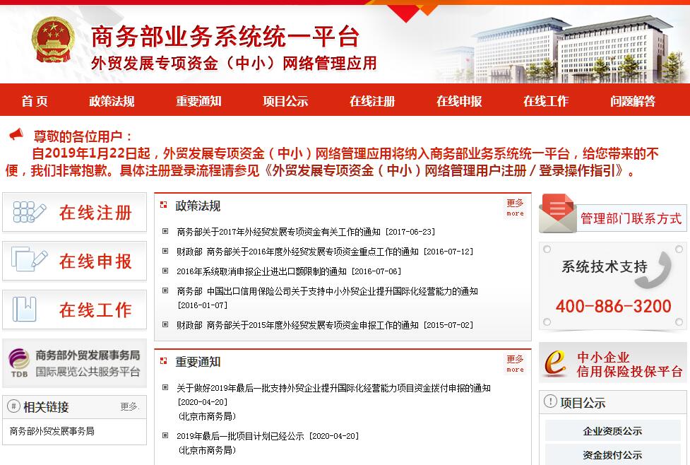 | 網(wǎng)站名稱: | 外經(jīng)貿(mào)專項資金網(wǎng)絡(luò)管理系統(tǒng) | ||
