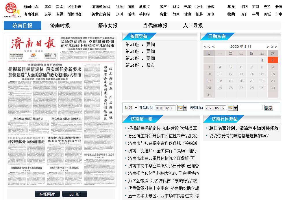 濟(jì)南日報(bào)電子版,濟(jì)南日報(bào)多媒體數(shù)字報(bào)?!稘?jì)南日報(bào)》(Jinan Daily)是“泉城”山東省省會濟(jì)南市(副省級)的機(jī)關(guān)報(bào),是山東省發(fā)行量大、覆蓋面廣、權(quán)威性強(qiáng)、信譽(yù)度高的大型綜合日報(bào)之一。創(chuàng)辦于1948年10月1日的《濟(jì)南日報(bào)》有著50多年歷史?,F(xiàn)為對開12版彩色印刷。 《濟(jì)南日報(bào)》擁有一批踏實(shí)的高端讀者群。在濟(jì)南地區(qū),上至中央駐濟(jì)、省市機(jī)關(guān)、企事業(yè)單位,下至個人訂戶,最早看到的報(bào)紙就是《濟(jì)南日報(bào)》,《濟(jì)南日報(bào)》已輻射山東17個地市。發(fā)行量達(dá)25萬份,在濟(jì)南地區(qū)發(fā)行的同類報(bào)紙中位居首位。濟(jì)南市路街各大報(bào)欄均有張貼,并在市區(qū)1000余個報(bào)紙零售點(diǎn)上銷售。 《濟(jì)南日報(bào)》始終如一的堅(jiān)持正確的輿論導(dǎo)向,服務(wù)大局,關(guān)注社會民生。經(jīng)過幾代人的努力,已是市委、市政府部署和推動全局工作強(qiáng)有力的輿論工具,也是廣大讀者信賴的媒體?!稘?jì)南日報(bào)》多次榮獲中國新聞獎、山東省優(yōu)秀報(bào)紙、山東省新聞獎、全省“十佳報(bào)紙”稱號,并在全國省會城市和計(jì)劃單列城市市委機(jī)關(guān)報(bào)編校質(zhì)量抽查評比中榮獲優(yōu)勝獎。