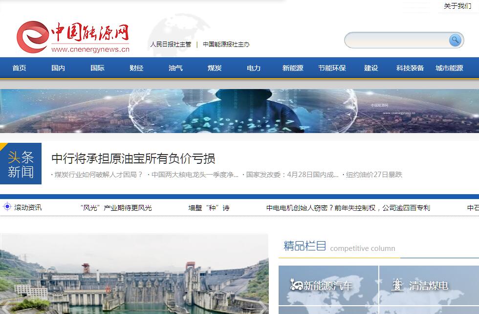 | 網(wǎng)站簡介: 中國能源網(wǎng),是國內(nèi)能源行業(yè)最權威的專業(yè)新聞網(wǎng)站。中國能源網(wǎng)依托中國能源報強大的報道力量,全力開創(chuàng)跨媒體的聯(lián)動傳播模式,實現(xiàn)報網(wǎng)聯(lián)動的立體服務,以文字、圖像、視頻、音頻相結合的方式提供多元化的能源資訊,致力于為能源高端客戶、政府機關、能源企事業(yè)單位、科研院所、行業(yè)協(xié)會提供最新、最快、最全面的國內(nèi)及國際能源信息?!吨袊茉磮蟆肥恰度嗣袢請蟆飞缰鞴苤鬓k的能源產(chǎn)業(yè)經(jīng)濟報,是服務國家能源戰(zhàn)略、能源政策與宏觀管理的信息發(fā)布平臺,也是我國第一張針對能源全產(chǎn)業(yè)鏈并為其服務的綜合性能源產(chǎn)業(yè)經(jīng)濟報。 |