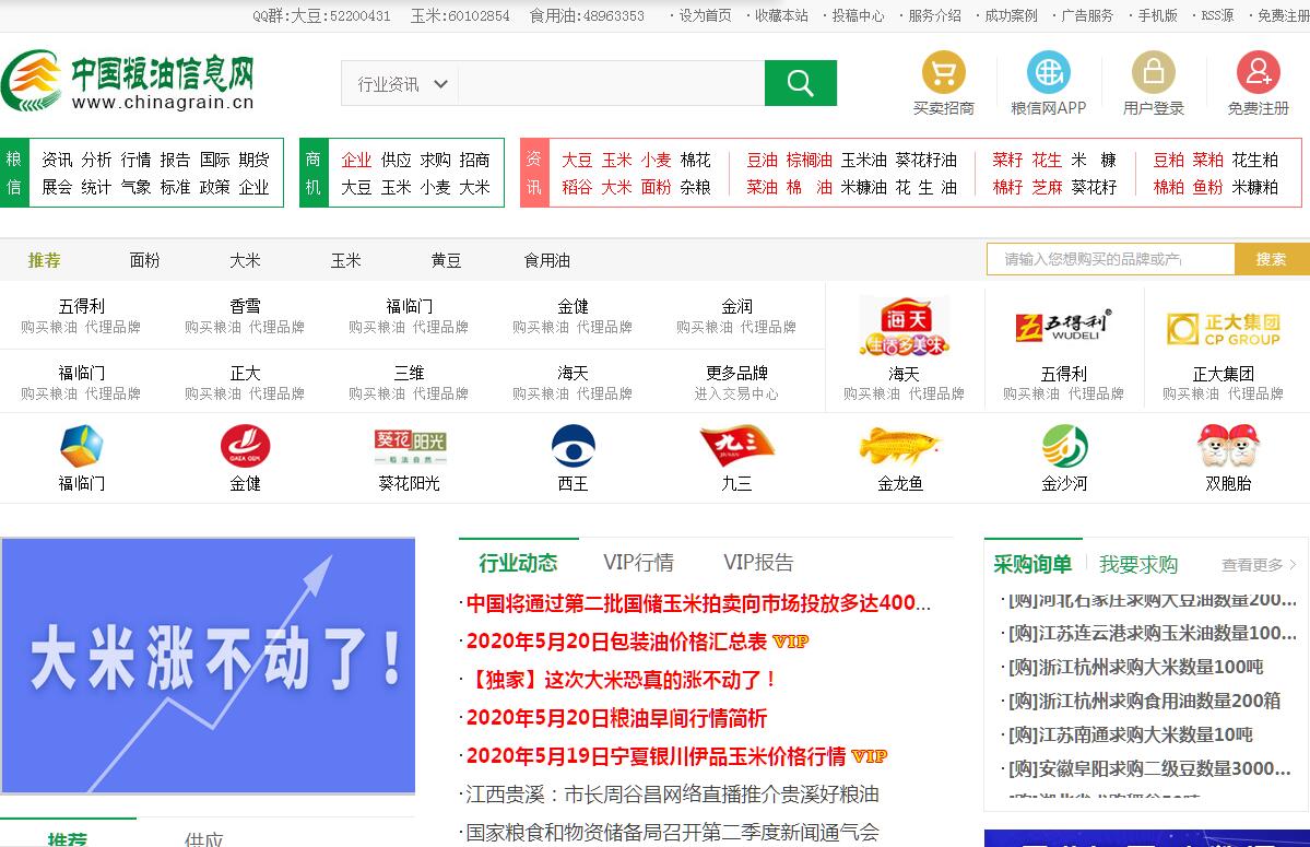 中國糧油信息網(wǎng) (www.chinagrain.cn,簡稱糧信網(wǎng)) 是國內(nèi)領(lǐng)先的糧油行業(yè)門戶網(wǎng)站之一,利用業(yè)內(nèi)領(lǐng)先的大數(shù)據(jù)、云計(jì)算、智能訂單、交易撮合等信息化技術(shù),糧信網(wǎng)目前可通過門戶網(wǎng)站中國糧油信息網(wǎng)(www.chinagrain.cn)、手機(jī)門戶中國糧油信息網(wǎng)(m.chinagrain.cn)、手機(jī)APP(中國糧油信息網(wǎng))、微信公眾號糧油信息網(wǎng)(graininfo)提供跨平臺和多端口服務(wù),現(xiàn)已成為集行情數(shù)據(jù)分析、電商交易、營銷策劃及活動(dòng)舉辦于一體的大型“互聯(lián)網(wǎng)+糧油”平臺。糧信網(wǎng)擁有國內(nèi)領(lǐng)先的服務(wù)團(tuán)隊(duì),專業(yè)、專注為糧油相關(guān)企業(yè)和商戶提供全國各地糧油市場行情及后市分析預(yù)測及電商交易服務(wù),為廣大客戶迅速把握和應(yīng)對糧油市場提供源動(dòng)力。糧信網(wǎng)信息服務(wù)涵蓋大豆、玉米、稻谷、小麥、油脂、油料等主要糧油品種,全年信息10萬條以上,開設(shè)行業(yè)資訊、行業(yè)報(bào)告、價(jià)格行情、港口數(shù)據(jù)、國際動(dòng)態(tài)、產(chǎn)量報(bào)告、進(jìn)出口數(shù)據(jù)、農(nóng)業(yè)氣象、行業(yè)標(biāo)準(zhǔn)、政策法規(guī)、行業(yè)展會(huì)、企業(yè)動(dòng)態(tài)、企業(yè)數(shù)據(jù)庫、產(chǎn)品數(shù)據(jù)庫、供求信息、招商合作等十六個(gè)欄目;涉及資訊、統(tǒng)計(jì)、分析、預(yù)測、標(biāo)準(zhǔn)、商務(wù)等相關(guān)領(lǐng)域。糧信網(wǎng)訪問量居于糧油行業(yè)網(wǎng)站前列,月活躍用戶逾30萬,用戶遍布全國各地,部分重點(diǎn)產(chǎn)區(qū)和銷區(qū)的單省月活躍用戶突破2萬人,糧信網(wǎng)用戶均為糧油行業(yè)相關(guān)人士,與傳統(tǒng)的電視、報(bào)刊、戶外、搜索引擎等廣告媒介相比,在網(wǎng)絡(luò)推廣上性價(jià)比高,針對性強(qiáng),使客戶以小投入獲得大收獲。糧信網(wǎng)也可接受客戶委托,利用糧信網(wǎng)龐大的會(huì)員群體進(jìn)行產(chǎn)品的企業(yè)廣告宣傳,如舉辦區(qū)域產(chǎn)品推介會(huì)、宣傳彩頁郵局投遞、手機(jī)短信群發(fā)、網(wǎng)絡(luò)廣告等,歡迎您選擇中國糧油信息網(wǎng)糧信通服務(wù)。