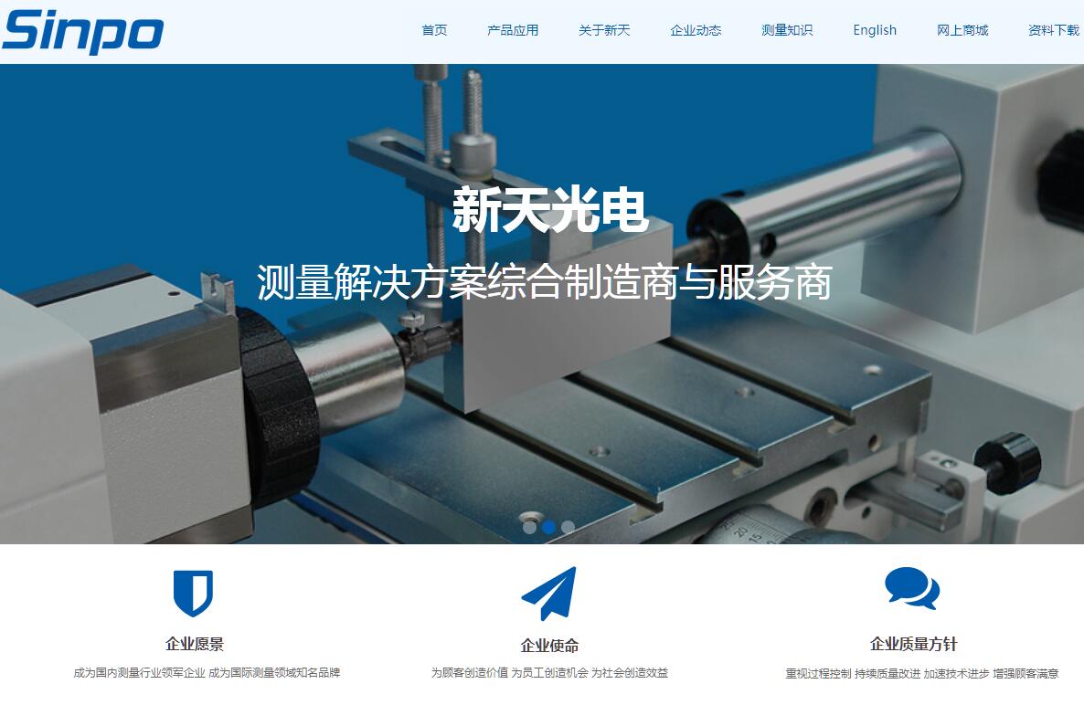 貴陽新天光電科技有限公司(原新天精密光學儀器公司,1966年由上海內(nèi)遷貴陽組建),位于貴陽國家高新技術(shù)開發(fā)區(qū)內(nèi),屬國家機電行業(yè)大型高新技術(shù)企業(yè),一直被列為貴陽市、貴州省及國家重點發(fā)展的裝備制造企業(yè)。公司已通過ISO9001質(zhì)量管理體系認證及ISO10012測量管理體系認證。歷經(jīng)50年的發(fā)展,在世界產(chǎn)業(yè)不斷升級的過程中,新天光電積極融入世界經(jīng)濟產(chǎn)業(yè)鏈,實施“民族品牌”戰(zhàn)略,同時在與跨國公司合作、合資交流中發(fā)展和壯大新天產(chǎn)業(yè),成為了世界經(jīng)濟產(chǎn)業(yè)鏈中重要一環(huán)。新天光電不斷通過技術(shù)進步,已形成了具有自身特色的光學及機械精密加工生產(chǎn)體系。公司在國家和省市政府的支持下建立了省級技術(shù)中心、光學測量工程技術(shù)研究中心、院士工作站、博士后科研工作站等研發(fā)平臺,通過自身探索與開展廣泛合作與交流,增強發(fā)展動力。50年來,新天光電不斷改革創(chuàng)新,為國家諸多重點工程項目提供了檢測裝備。新天光電營銷網(wǎng)絡輻射海內(nèi)外,在國內(nèi)各大中城市建立了分公司及辦事處,其全資子公司——貴陽新天光電科技進出口有限公司的業(yè)務范圍輻射至世界五十多個國家和地區(qū)。公司產(chǎn)品及服務廣泛用于制造業(yè)、計量測試院所、科研教學等領(lǐng)域的精密測量、計量測試及量值傳遞等。新天光電傾力內(nèi)抓管理,外拓市場,奉行“以人為本”的管理理念和“明星服務”的營銷理念,將產(chǎn)品與服務融為一體,不僅為客戶提供優(yōu)質(zhì)產(chǎn)品,還著力為用戶提供檢測解決方案。公司秉承“高標準、零缺陷”的質(zhì)量目標,致力實現(xiàn)“創(chuàng)國內(nèi)一流企業(yè),樹國際知名品牌”的發(fā)展目標 。