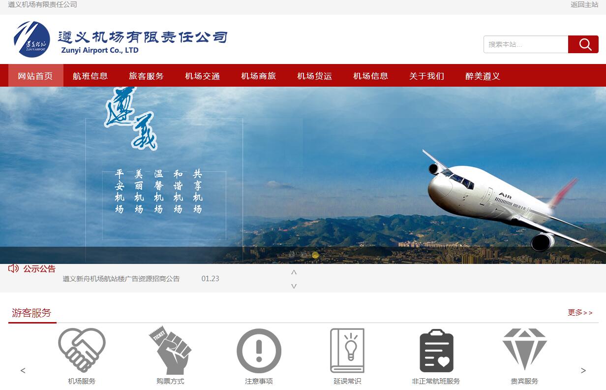 遵義機(jī)場位于遵義市新蒲新區(qū)新舟鎮(zhèn)境內(nèi),距離遵義市中心城區(qū)東部35公里。于2009年1月29日經(jīng)國務(wù)院、中央軍委批準(zhǔn)同意,遵義機(jī)場改擴(kuò)建工程正式立項(xiàng),并明確為軍民合用機(jī)場。2010年7月12日,國家發(fā)改委、總參謀部批準(zhǔn)遵義機(jī)場改擴(kuò)建工程可行性研究報(bào)告。2010年9月10日正式動(dòng)工建設(shè),2012年8月28日正式建成通航。建成后的遵義機(jī)場飛行區(qū)等級指標(biāo)為4C,共有5個(gè)C類停機(jī)坪,跑道長約2800米,可滿足B737-800、空客A319、A320系列等機(jī)型飛機(jī)全載起降?,F(xiàn)有航站樓面積10600平方米,其中國內(nèi)區(qū)域總建筑面積6800平方米,國際區(qū)域總建筑面積3800平方米。遵義機(jī)場有限責(zé)任公司成立于2009年6月。機(jī)場建成后,于2013年1月正式獨(dú)立運(yùn)行,為市屬國有獨(dú)資公益類企業(yè)。公司本部下設(shè)15個(gè)職能及業(yè)務(wù)部門,以及一個(gè)全資子公司。在冊職工300余人。2017年11月,按照遵義市人民政府“產(chǎn)業(yè)相近、主業(yè)相同、全產(chǎn)業(yè)鏈協(xié)同發(fā)展”的整合思路,遵義機(jī)場成為新組建的遵義交旅投資(集團(tuán))有限公司下屬子集團(tuán),正式開啟集團(tuán)化協(xié)同發(fā)展新模式。2012年8月28日,遵義機(jī)場正式通航。當(dāng)年開通4個(gè)城市航線,起降航班478架次,旅客吞吐量46512人次。2014年,通航城市增加至19個(gè),起降航班7509架次,旅客吞吐量669726人次,提前26年實(shí)現(xiàn)年旅客吞吐量65萬人次的遠(yuǎn)景目標(biāo)。2017年,遵義機(jī)場航班起降15310架次,完成旅客吞吐量1561066萬人次,貨郵吞吐量1628.1噸。通航5年來,運(yùn)行有北京、上海、廣州、深圳等34條國內(nèi)航線。計(jì)劃2018年開通泰國、越南、新加坡、芭提雅等國際包機(jī)航線。通航以來,遵義機(jī)場圓滿完成了習(xí)近平總書記等多位黨和國家領(lǐng)導(dǎo)人進(jìn)出遵義機(jī)場的重要保障任務(wù)以及春運(yùn)、暑運(yùn)、國家法定節(jié)假日、各類大型重要會(huì)議的重要保障任務(wù),通航至今未發(fā)生一起本場原因?qū)е碌陌踩鹿屎褪鹿收骱颉?015年,遵義機(jī)場榮獲全國50-200萬級別民用機(jī)場服務(wù)質(zhì)量優(yōu)秀獎(jiǎng)。目前,遵義新舟機(jī)場正在穩(wěn)步推進(jìn)遵義新舟機(jī)場二期改擴(kuò)建工程,預(yù)計(jì)投資20億元。主要建設(shè)內(nèi)容為:新建航站樓42500㎡及航站區(qū)配套工程,新建平行滑行道一條2800米,新建停機(jī)坪18個(gè)等飛行區(qū)工程,新建航食中心、駐場單位業(yè)務(wù)用房、機(jī)場賓館、職工宿舍等。改擴(kuò)建預(yù)計(jì)2020年下半年完成,T2航站樓建成投入使用后,將原候機(jī)樓改為通用航空使用。到2025年,計(jì)劃實(shí)現(xiàn)年旅客吞吐量220萬,建成功能齊備、舒適美觀的支線旅游機(jī)場;到2045年,實(shí)現(xiàn)年旅客吞吐量450萬,建成中型旅游國際機(jī)場。近年來,遵義機(jī)場牢牢把握發(fā)展和安全兩條底線,以“五個(gè)機(jī)場”建設(shè)為載體,以安全生產(chǎn)、真情服務(wù)、黨的建設(shè)、軍民融合為抓手,主動(dòng)適應(yīng)新常態(tài),搶抓發(fā)展新機(jī)遇,力求創(chuàng)業(yè)新作為,建設(shè)、運(yùn)行和發(fā)展均取得了顯著成效,為遵義市加速發(fā)展、跨越發(fā)展構(gòu)建了重要的對外窗口和開放平臺(tái)。