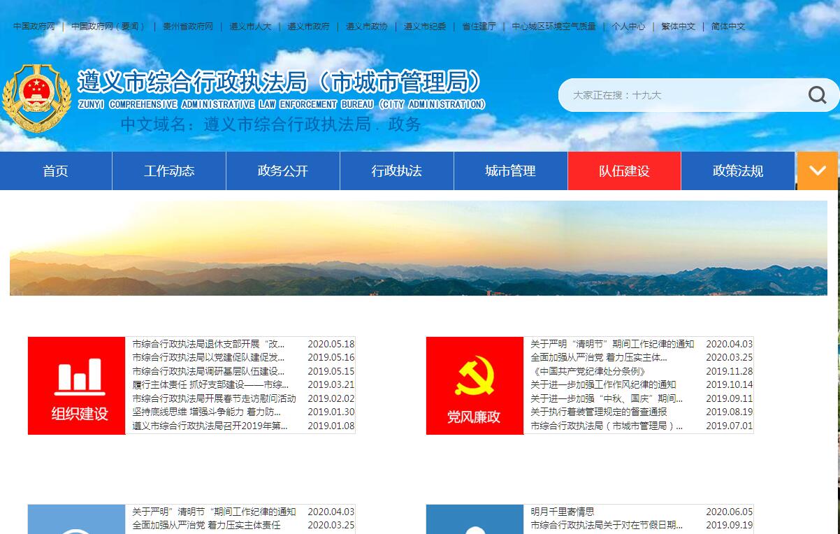 遵義市綜合行政執(zhí)法局(市城市管理局) 主要職責(zé):(一)貫徹執(zhí)行國家、省、市有關(guān)綜合行政執(zhí)法方面的法律法規(guī)規(guī)章和政策,并實施監(jiān)督檢查;負(fù)責(zé)擬訂全市綜合行政執(zhí)法方面的工作計劃、年度工作計劃、階段性工作安排并組織實施或督促落實。(二)負(fù)責(zé)跨區(qū)域、重大復(fù)雜案件以及上級交辦案件的查處工作;負(fù)責(zé)全市綜合行政執(zhí)法工作的業(yè)務(wù)指導(dǎo)、統(tǒng)籌協(xié)調(diào)、聯(lián)動執(zhí)法和異地執(zhí)法的指揮調(diào)度、監(jiān)督檢查和考核;負(fù)責(zé)組織全市綜合行政執(zhí)法專項活動和重大執(zhí)法活動。(三)依法集中行使住房城鄉(xiāng)建設(shè)領(lǐng)域(含燃?xì)夤芾恚l(fā)展改革(含價格)、工業(yè)和能源(含經(jīng)濟和信息化)、國土資源、農(nóng)業(yè)、林業(yè)(不含森林公安)、水務(wù)、商務(wù)、體育、旅游發(fā)展、糧食、人民防空、民政、防震減災(zāi)、文化(含廣電、新聞、出版、版權(quán))、衛(wèi)生健康、交通運輸、市場監(jiān)管(包括工商、質(zhì)量技術(shù)監(jiān)督、食品藥品管理等)、科技(含專利)、安全生產(chǎn)、勞動保障、統(tǒng)計、生態(tài)環(huán)境保護等方面的全部,以及道路交通管理關(guān)于侵占人行道、停車場通道、公共廣場等違法停放車輛方面法律法規(guī)規(guī)章規(guī)定的行政處罰權(quán)及與行政處罰相關(guān)的行政檢察權(quán)、行政強制權(quán)。(四)負(fù)責(zé)建立健全監(jiān)管與執(zhí)法協(xié)作配合制度,厘清職責(zé)邊界,分領(lǐng)域分部門細(xì)化工作銜接機制;負(fù)責(zé)完善監(jiān)管、執(zhí)法、司法機關(guān)間的銜接機制,健全完善執(zhí)法預(yù)警體系,推進綜合行政執(zhí)法規(guī)范化建設(shè)。(五)開展政策法規(guī)研究,制定完善相關(guān)配套制度和綜合行政執(zhí)法相關(guān)實施辦法并組織實施,推進全市綜合行政執(zhí)法和城市管理事權(quán)制度化、規(guī)范化;負(fù)責(zé)受理城市管理和綜合行政執(zhí)法方面的投訴和舉報;負(fù)責(zé)有關(guān)行政復(fù)議案件答復(fù)、行政應(yīng)訴、組織聽證等工作。(六)負(fù)責(zé)執(zhí)法隊伍建設(shè)、管理和培訓(xùn),制定綜合行政執(zhí)法內(nèi)部考核和監(jiān)督辦法;負(fù)責(zé)建立行政執(zhí)法責(zé)任制和執(zhí)法過錯責(zé)任追究制度;負(fù)責(zé)開展執(zhí)法評議考核和執(zhí)法案卷評查工作。(七)貫徹執(zhí)行國家、省、市有關(guān)容環(huán)境衛(wèi)生管理、市政設(shè)施管理、城市燃?xì)獾瘸鞘泄芾矸矫娴姆煞ㄒ?guī)規(guī)章和政策,并實施監(jiān)督檢查。(八)負(fù)責(zé)擬訂市容環(huán)境衛(wèi)生管理、市政設(shè)施管理、城市燃?xì)夤芾?、農(nóng)村生活垃圾收集處置等方面的發(fā)展規(guī)劃、實施計劃、階段性工作安排并組織實施或督促落實;負(fù)責(zé)協(xié)調(diào)指導(dǎo)、監(jiān)督檢查縣(市、區(qū))城市管理工作。(九)負(fù)責(zé)全市生活垃圾強制分類、無害化處理和綜合利用的監(jiān)督工作;負(fù)責(zé)擬訂中心城區(qū)城市容貌和環(huán)境衛(wèi)生管理、市政道路、城市照明、戶外廣告、垃圾處理、城市燃?xì)狻⑼\噲龅瘸鞘泄芾砉ぷ鳂?biāo)準(zhǔn),監(jiān)督和考核中心城區(qū)城市管理業(yè)務(wù)工作;負(fù)責(zé)城市城市管理領(lǐng)域有關(guān)市容環(huán)境衛(wèi)生、市政公用方面的行政審批事項及行業(yè)監(jiān)管。(十)負(fù)責(zé)城市道路、人行天橋、城市隧道、路燈以及依附于城市道路建設(shè)的燃?xì)庠O(shè)施、排水設(shè)施、井蓋等的管理維護;負(fù)責(zé)環(huán)衛(wèi)保潔,垃圾收集處置(含生活垃圾、建筑垃圾、餐廚垃圾)、公廁管理以及相關(guān)環(huán)衛(wèi)設(shè)施運行管理維護。(十一)負(fù)責(zé)對占道經(jīng)營、占道施工、戶外廣告、戶外設(shè)施設(shè)置等公共空間秩序的監(jiān)督管理;負(fù)責(zé)轄區(qū)停車場管理的統(tǒng)籌協(xié)調(diào),對侵占城市人行道、停車場通道、公共廣場等違法停放車輛的管理;負(fù)責(zé)對生活噪音污染,揚塵、油煙、燒烤和焚燒瀝青塑料垃圾、焚燒秸稈落葉等產(chǎn)生煙塵和惡臭污染行為的管理。(十二)結(jié)合部門職責(zé),加大科技投入,提高科技創(chuàng)新能力,為推進創(chuàng)新驅(qū)動發(fā)展提供保障;負(fù)責(zé)本部門、本行業(yè)領(lǐng)域的安全生產(chǎn)和消防安全工作;按規(guī)定做好大數(shù)據(jù)發(fā)展應(yīng)用和政務(wù)數(shù)據(jù)資源管理相關(guān)工作,依法促進部門政務(wù)數(shù)據(jù)管理、共享和開放。(十三)承辦市委、市人民政府和上級交辦的其他事項。