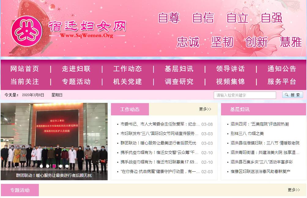 宿遷婦女網(wǎng)由宿遷市婦女聯(lián)合會(huì)主辦。1997年3月8日,宿遷市婦女第一次代表大會(huì)召開,地級(jí)宿遷市婦聯(lián)成立。目前全市婦女組織網(wǎng)絡(luò)健全,全市有縣、區(qū)婦聯(lián)5個(gè),開發(fā)區(qū)婦聯(lián)2個(gè),鄉(xiāng)鎮(zhèn)婦聯(lián)組織104個(gè),村(居)婦代會(huì)1414個(gè)。在機(jī)關(guān)、教育、衛(wèi)生、建設(shè)、公安、供電、交通等單位設(shè)立婦女工作委員會(huì)。團(tuán)體會(huì)員有工會(huì)女職工委員會(huì)和以行業(yè)、界別成立的女領(lǐng)導(dǎo)干部聯(lián)誼會(huì)、女企業(yè)家協(xié)會(huì)、婦女商會(huì)。2002年,市委辦編制印發(fā)了宿辦發(fā)〔2002〕75號(hào)《<宿遷市婦女聯(lián)合會(huì)機(jī)關(guān)職能配置內(nèi)設(shè)機(jī)構(gòu)和人員編制規(guī)定>的通知》文件,對(duì)市婦聯(lián)的職能配置、內(nèi)設(shè)機(jī)構(gòu)和人員編制,進(jìn)行了明確規(guī)定。市婦聯(lián)現(xiàn)設(shè)辦公室、宣傳部、權(quán)益部、事業(yè)發(fā)展部、組織部、兒童工作部等6個(gè)職能部門,市政府婦女兒童工作委員會(huì)辦公室也設(shè)在市婦聯(lián)。根據(jù)《中華全國婦女聯(lián)合會(huì)章程》的規(guī)定,婦聯(lián)的基本職能是代表和維護(hù)婦女權(quán)益,促進(jìn)男女平等,發(fā)展婦女兒童事業(yè)。(即:團(tuán)結(jié)、教育、代表、服務(wù)、聯(lián)誼職能)幾年來,市婦聯(lián)領(lǐng)導(dǎo)班子在市委市政府的正確領(lǐng)導(dǎo)和省婦聯(lián)的關(guān)心支持下,認(rèn)真履行職能,緊緊抓住發(fā)展與維權(quán)兩大主線,圍繞中心、服務(wù)大局,團(tuán)結(jié)帶領(lǐng)全市婦女積極參與社會(huì)主義現(xiàn)代化建設(shè),從打基礎(chǔ)、上臺(tái)階到創(chuàng)特色,一步一個(gè)腳印,扎實(shí)開展工作,取得了顯著成效。招商引資、扶貧及婦女勞動(dòng)力轉(zhuǎn)移工作多次受到市委、市政府和省婦聯(lián)的表彰;組隊(duì)參加各類省級(jí)比賽,多次獲特等獎(jiǎng);“春蕾計(jì)劃”實(shí)施工作為全省樹立了標(biāo)桿,已成為我市婦女兒童工作的品牌;“九五”期末,我市婦女兒童工作還獲得了最高榮譽(yù):受到國務(wù)院的表彰; 市婦聯(lián)也先后于2002年、2006年被授予省、全國“三八紅旗集體”榮譽(yù)稱號(hào)。