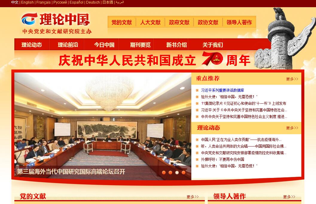 理論中國(guó)網(wǎng)是由中共中央編譯局主辦的多語(yǔ)種理論宣傳網(wǎng)站,包括中文、英文、法文、德文、日文、俄文、西班牙文、阿拉伯文8個(gè)語(yǔ)種,主要是對(duì)外宣傳馬克思主義中國(guó)化的理論成果、中國(guó)特色社會(huì)主義理論以及中國(guó)道路等方面的最新理論成果。