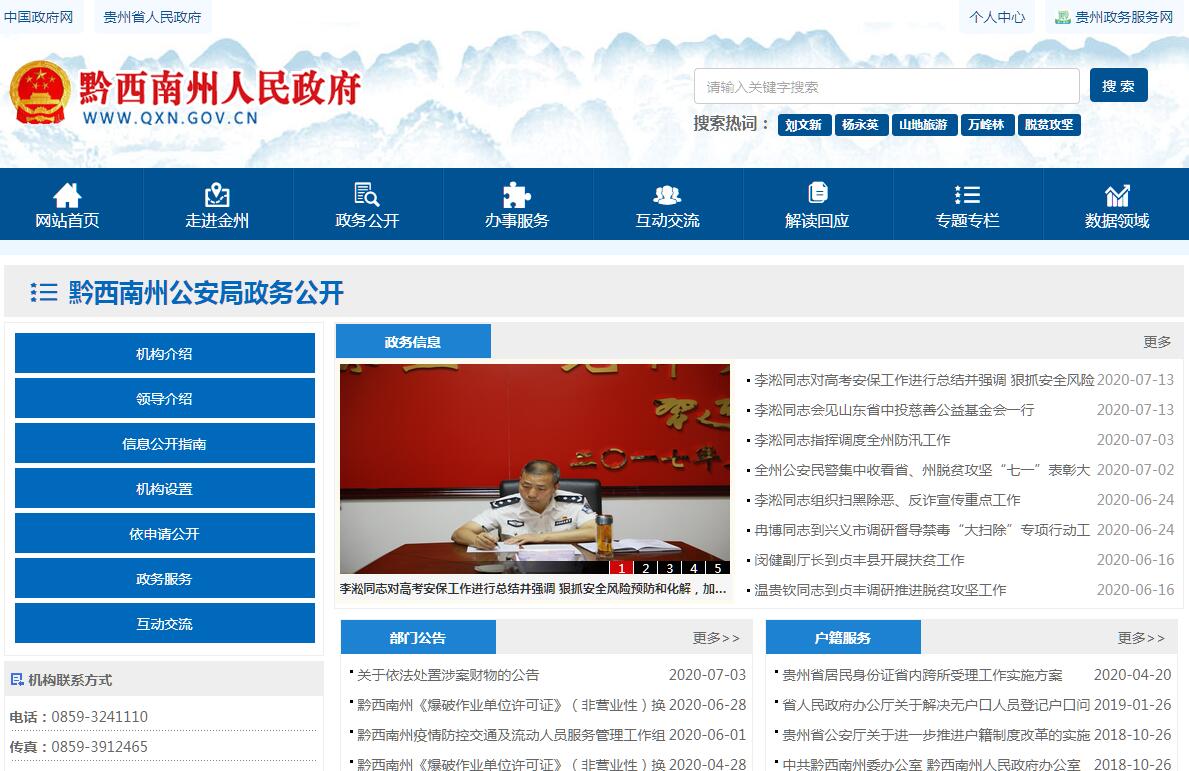 黔西南州公安局主要職責(zé):預(yù)防、制止和偵查違法犯罪活動(dòng);維護(hù)社會(huì)治安秩序,制止危害社會(huì)治安秩序的行為;維護(hù)交通安全和交通秩序,處理交通事故;組織、實(shí)施消防工作,實(shí)行消防監(jiān)督;管理危險(xiǎn)物品;對(duì)法律、法規(guī)規(guī)定的特種行業(yè)進(jìn)行管理;警衛(wèi)國(guó)家規(guī)定的特定人員,守衛(wèi)重要的場(chǎng)所和設(shè)施; 管理集會(huì)、游行、示威活動(dòng);管理戶政、國(guó)籍、入境出境事務(wù)和外國(guó)人在中國(guó)境內(nèi)居留、旅行的有關(guān)事務(wù); 維護(hù)國(guó)(邊)境地區(qū)的治安秩序;對(duì)被判處管制、拘役、剝奪政治權(quán)利的罪犯和監(jiān)外執(zhí)行的罪犯執(zhí)行刑罰,對(duì)被宣告緩刑、假釋的罪犯實(shí)行監(jiān)督、考察;監(jiān)督管理計(jì)算機(jī)信息系統(tǒng)的安全保護(hù)工作;指導(dǎo)和監(jiān)督國(guó)家機(jī)關(guān)、社會(huì)團(tuán)體、企業(yè)事業(yè)組織和重點(diǎn)建設(shè)工程的治安保衛(wèi)工作,指導(dǎo)治安保衛(wèi)委員會(huì)等群眾性組織的治安防范工作等。