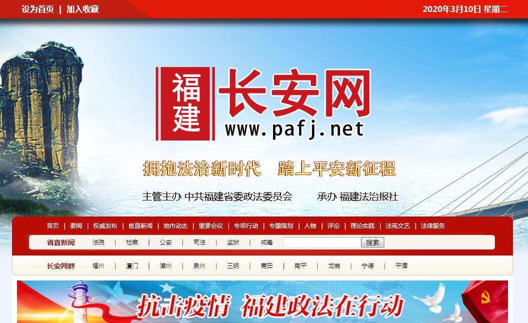 | 網(wǎng)站簡(jiǎn)介: 福建長(zhǎng)安網(wǎng)是福建省委政法委員會(huì)、福建省社會(huì)治安綜合治理委員會(huì)的官方網(wǎng)站,由福建法制報(bào)社承辦。福建長(zhǎng)安網(wǎng)是福建政法綜治系統(tǒng)重要網(wǎng)絡(luò)宣傳陣地、信息發(fā)布渠道和輿論引導(dǎo)平臺(tái)。 |