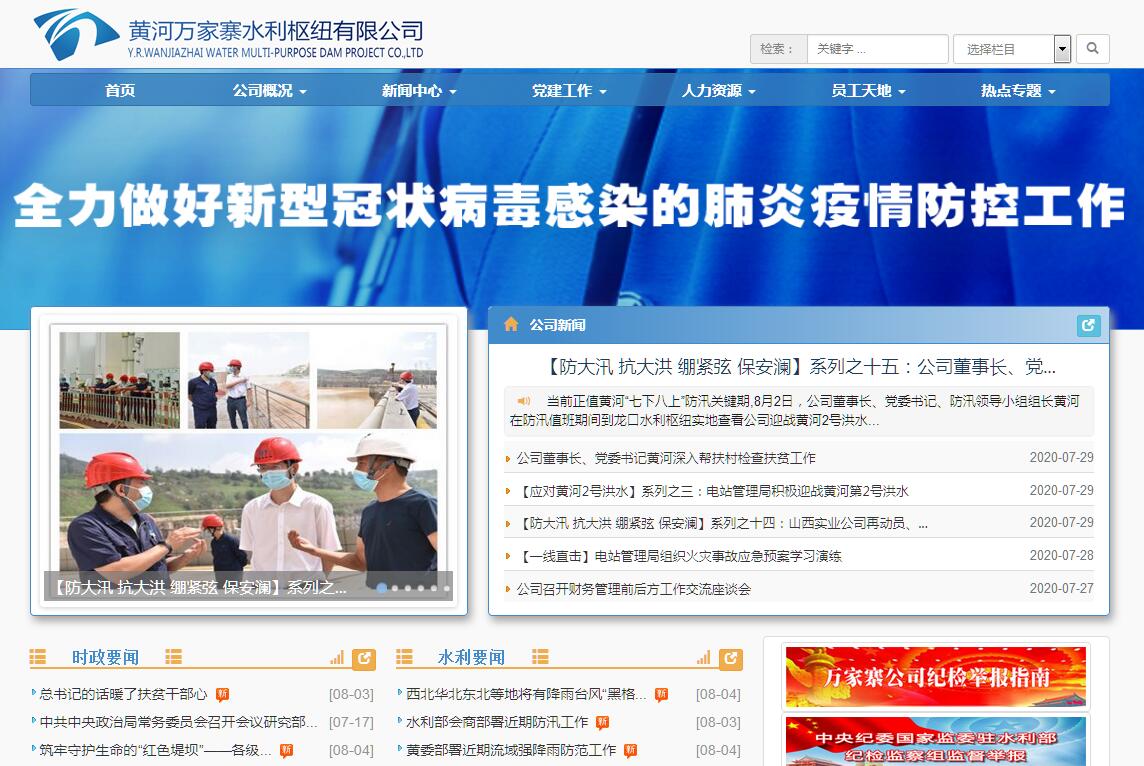 黃河萬家寨水利樞紐有限公司是隨著國家“九五”重點工程——萬家寨水利樞紐的建設(shè)而組建的,其前身是1993年成立的“水利部萬家寨工程建設(shè)管理局”,1997年按現(xiàn)代企業(yè)制度改制為“黃河萬家寨水利樞紐有限公司”。公司由水利部、山西省、內(nèi)蒙古自治區(qū)三方出資組建,目前出資方委派的股東單位分別為新華水利控股集團公司、山西省黃河萬家寨水務(wù)集團有限公司、內(nèi)蒙古能源發(fā)電投資集團公司。公司主要經(jīng)營范圍為供水、發(fā)電、水利水電工程開發(fā)與運營管理、代建管理技術(shù)服務(wù)、建設(shè)咨詢等。截至2015年底,公司資產(chǎn)總額為48億元,在冊員工357名。公司先后投資興建了萬家寨和龍口兩座大型水利樞紐工程。萬家寨水利樞紐1994年11月開工建設(shè),1998年11月首臺機組并網(wǎng)發(fā)電,2000年底全部機組建成投產(chǎn),2002年通過竣工驗收。萬家寨水電站安裝有6臺單機容量180MW的水輪發(fā)電機組,總裝機容量1080MW,設(shè)計多年平均發(fā)電量27.5億kW?h。龍口水利樞紐是萬家寨水利樞紐工程的反調(diào)節(jié)配套工程,2006年6月開工建設(shè),2009年9月首臺機組投產(chǎn)發(fā)電,2010年6月全部機組建成投產(chǎn),2014年12月通過竣工驗收。龍口水電站安裝有4臺單機容量100MW,1臺單機容量為20MW的水輪發(fā)電機組,總裝機容量420MW,設(shè)計多年平均發(fā)電量13.02億kW?h。兩座水利樞紐發(fā)電后,在山西電網(wǎng)、蒙西電網(wǎng)中發(fā)揮了調(diào)峰、調(diào)潮流及事故備用等重要作用,對優(yōu)化電網(wǎng)能源結(jié)構(gòu)具有十分重要的意義。萬家寨水利樞紐作為山西省萬家寨引黃工程的龍頭,設(shè)計每年向山西供水12億立方米,向內(nèi)蒙古供水2億立方米,有效緩解了制約地方經(jīng)濟可持續(xù)發(fā)展的水資源緊缺問題。公司堅持民生優(yōu)先理念,認真貫徹水、沙、電一體化運行調(diào)度原則,堅決執(zhí)行“興利服從防洪、區(qū)域服從流域、電調(diào)服從水調(diào)”要求,強化萬家寨、龍口兩座水利樞紐聯(lián)合調(diào)度,創(chuàng)造了良好的經(jīng)濟效益、社會效益和生態(tài)效益。萬家寨水利樞紐工程是黃河中游治理開發(fā)的關(guān)鍵性控制工程,在防洪、防凌、調(diào)水調(diào)沙、供水、發(fā)電以及改善下游生態(tài)環(huán)境等方面發(fā)揮了重要作用,為黃河治理開發(fā)、流域經(jīng)濟社會發(fā)展和沿黃兩岸人民群眾生活水平提高做出了積極貢獻。除董事會辦公室外,公司下設(shè)辦公室、黨群工作部、紀檢監(jiān)察部、計劃經(jīng)營部、財務(wù)部、人力資源部、安全技術(shù)部、企業(yè)管理部、電力生產(chǎn)(防汛)辦公室等九個職能部門及電站管理局、庫區(qū)管理中心兩個直屬單位。公司還組建了五個全資子公司——山西黃河萬家寨實業(yè)發(fā)展有限公司、內(nèi)蒙古黃河萬家寨實業(yè)有限公司、北京河源水利水電工程咨詢有限公司、山西黃河萬家寨工程咨詢有限公司和內(nèi)蒙古禹順酒店管理有限公司。各子公司圍繞主業(yè)做好生產(chǎn)和后勤服務(wù),積極拓展水利水電建設(shè)管理咨詢、水保治理、酒店管理等業(yè)務(wù)。經(jīng)過20多年的奮斗,黃河萬家寨水利樞紐有限公司的資產(chǎn)規(guī)模不斷擴大,盈利水平不斷提高,水電項目開發(fā)能力和融資能力不斷加強,培養(yǎng)了一大批優(yōu)秀的水電建設(shè)和管理人才。公司先后榮獲“國家一級水利工程管理單位”、“全國水利系統(tǒng)卓越績效模式先進單位”、“全國水利建設(shè)與管理先進集體”、“全國水利系統(tǒng)文明單位”、“山西電力行業(yè)優(yōu)秀企業(yè)”等榮譽稱號。面對新形勢新任務(wù)新要求,公司在新一屆領(lǐng)導(dǎo)班子的帶領(lǐng)下,牢記使命,開拓進取,堅持社會公益職責(zé)與企業(yè)經(jīng)營職能相統(tǒng)一,充分發(fā)揮工程綜合效益,積極拓寬業(yè)務(wù)領(lǐng)域,努力朝著更高更遠的目標邁進!