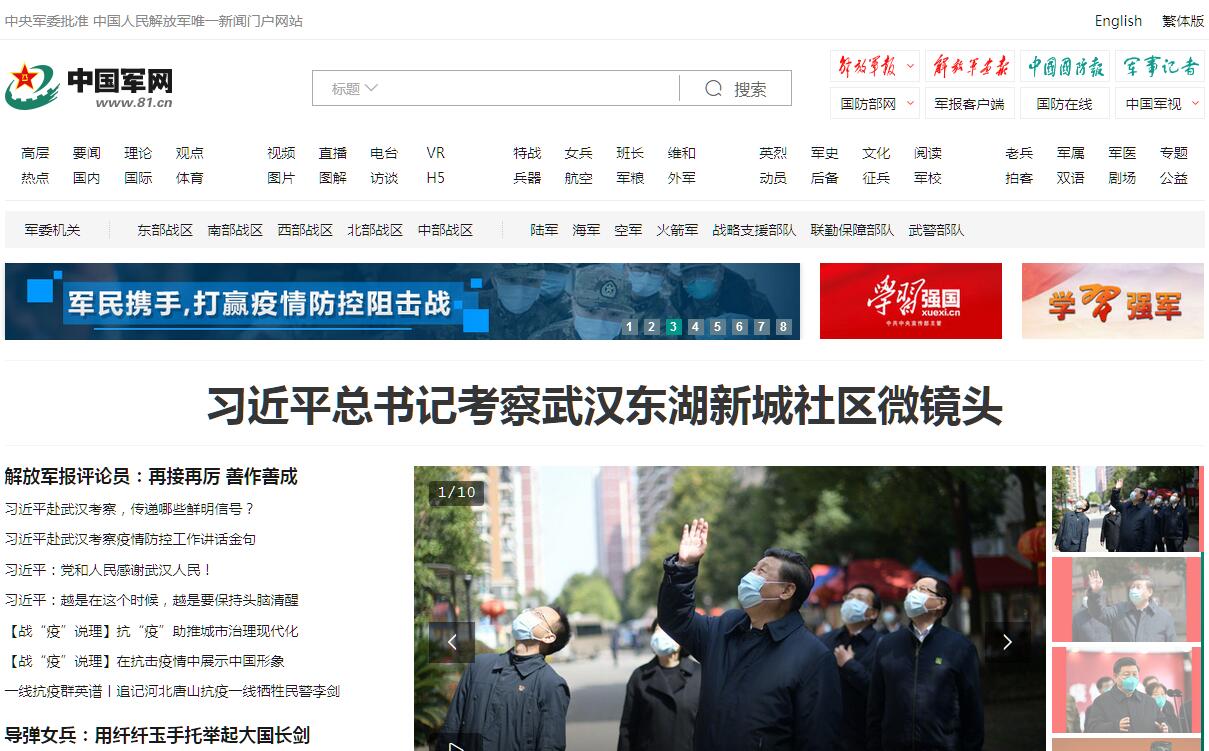 | 網(wǎng)站簡介: 中國軍網(wǎng)是經(jīng)中央軍委批準(zhǔn)的中國人民解放軍唯一新聞門戶網(wǎng)站,第一時間向全球網(wǎng)民發(fā)布權(quán)威軍事資訊,追蹤軍事熱點,反映軍事動態(tài),介紹國內(nèi)外最新武器發(fā)展動態(tài),擁有中國最大的軍事圖片庫,提供獨家發(fā)布的軍事視頻。 |