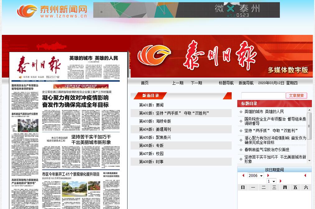 | 網(wǎng)站名稱: | 泰州日?qǐng)?bào)電子版 | ||