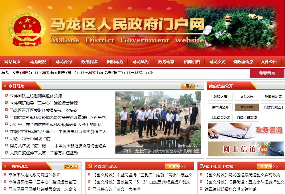 馬龍區(qū),隸屬于云南省曲靖市,東及東北部與麒麟?yún)^(qū)、沾益區(qū)接壤,南與陸良縣、宜良縣毗鄰,西及西北與嵩明、尋甸兩縣交界,位于東經(jīng)103°16′~103°45′、北緯25°08′~25°37′之間,面積1751平方千米。2010年,第六次全國人口普查馬龍區(qū)常住人口有184989人,有彝族、白族、回族、瑤族、布依族等民族。2016年,馬龍區(qū)下轄5個街道、2個鎮(zhèn)、3個鄉(xiāng),政府駐通泉街道。馬龍區(qū)位于牛頭山古隆起的北側,烏蒙山脈南部,屬云貴高原的滇東北丘陵區(qū),地處金沙江水系與南盤江水系的分水嶺地帶,四面環(huán)山。氣候屬低緯高原季風型氣候,冬春干旱,夏秋濕潤,季節(jié)干濕分明,年平均日照1985小時以上,年平均降雨量1032毫米。2017年,馬龍區(qū)被命名為國家園林縣城、第一批國家農(nóng)業(yè)可持續(xù)發(fā)展試驗示范區(qū)。2019年1月25日,入選2018年度全國“平安農(nóng)機”示范縣。2019年2月2日,被國家中醫(yī)藥管理局評為縣級全國基層中醫(yī)藥工作先進單位。2019年,完成地區(qū)生產(chǎn)總值78億元,同比增11%;規(guī)模以上固定資產(chǎn)投資84億元,同比增12%;規(guī)模以上工業(yè)增加值29億元,同比增18%;一般公共預算收入6.09億元,同比增8.22%;社會消費品零售總額15.9億元,同比增13%;城鎮(zhèn)常住居民人均可支配收入35960元,同比增8.5%;農(nóng)村常住居民人均可支配收入12375元,同比增9.5%。城鎮(zhèn)登記失業(yè)率1.92%;單位生產(chǎn)總值能耗下降3.3%。