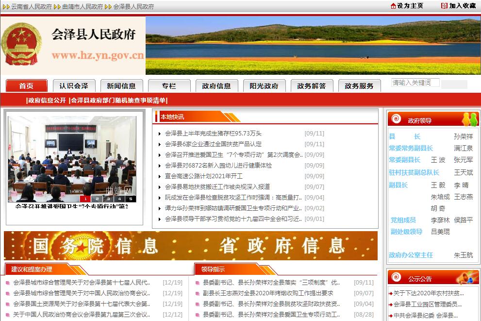 會澤縣,隸屬于云南省曲靖市,位于云南省東北部、金沙江東岸、曲靖市西北部,地處東經(jīng)103°03′~103°55′、北緯25°48′~27°04′之間。東鄰宣威市、貴州省威寧縣,南與沾益區(qū)、昆明市尋甸縣毗鄰,西接昆明市東川區(qū)、昭通市巧家縣,北與魯?shù)榭h接壤。會澤縣境東西最大橫距84公里,南北最大縱距138公里,國土面積5886平方公里??h城鐘屏鎮(zhèn),海拔2120米,距曲靖市區(qū)245公里,距省會昆明210公里。2006年,會澤八大會館被評為國家重點文物保護單位;2009年會澤被《國家人文地理》推薦為中國108個絕美地標之一;2013年5月22日,國務院批復同意會澤縣列為國家歷史文化名城。2018年,會澤縣完成生產(chǎn)總值190億元,地方一般公共預算收入13.1億元,地方一般公共預算支出73.6億元,社會消費品零售總額46.3億元,“1+4”經(jīng)濟指標及綜合考核全市排名第二,三次產(chǎn)業(yè)比為22.7:38.9: 38.4。2018年9月25日,獲得商務部“2018年電子商務進農(nóng)村綜合示范縣”榮譽稱號。2020中國夏季休閑百佳縣市。