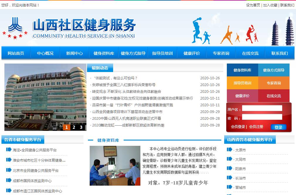 | 網(wǎng)站名稱: | 山西省社區(qū)健身網(wǎng)絡(luò)服務(wù)平臺 | ||